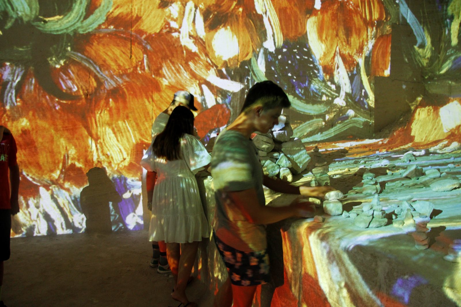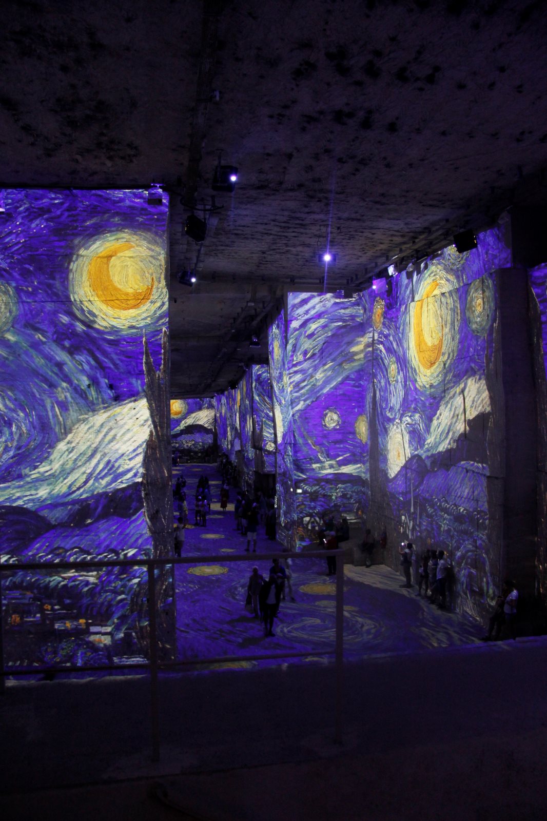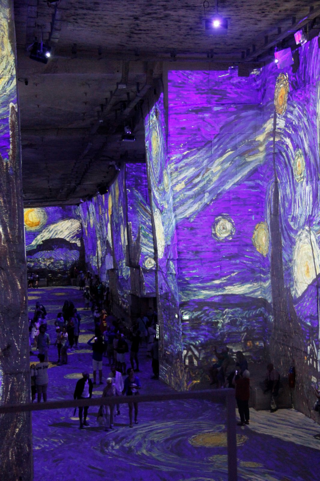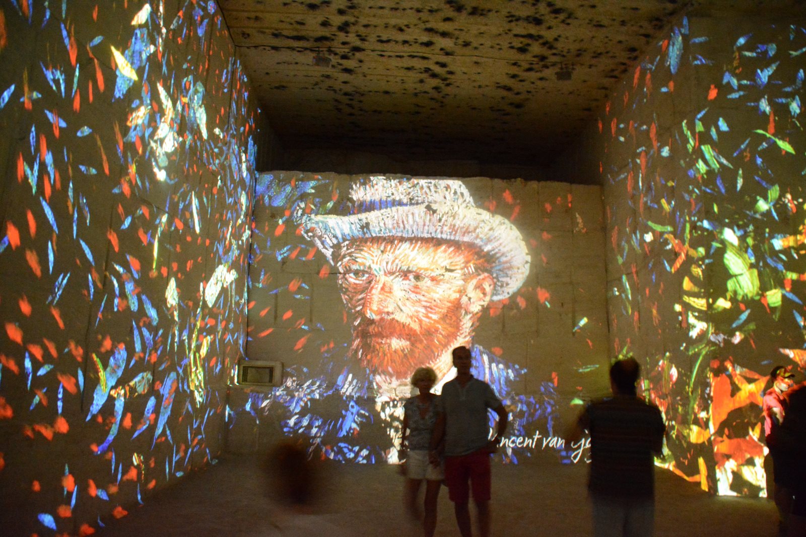 Als wir dort ankamen, bekamen wir einen prächtigen Parkplatz zugewiesen. Um 11.00 Uhr begann die Vorstellung der holländischen Meister. Zwei weitere Vorführungen gab es im Anschluss von Piet Mondrin. Die dritte Vorstellung ging an mir leider vorbei, weil ich etwas zu organisieren hatte. Es war sehr beeindruckend ein bewegtes Rubensbild zu sehen oder durch den Nachthimmel von Van Goch zu laufen. Vorteil war auch die Temperatur in den Grotten.