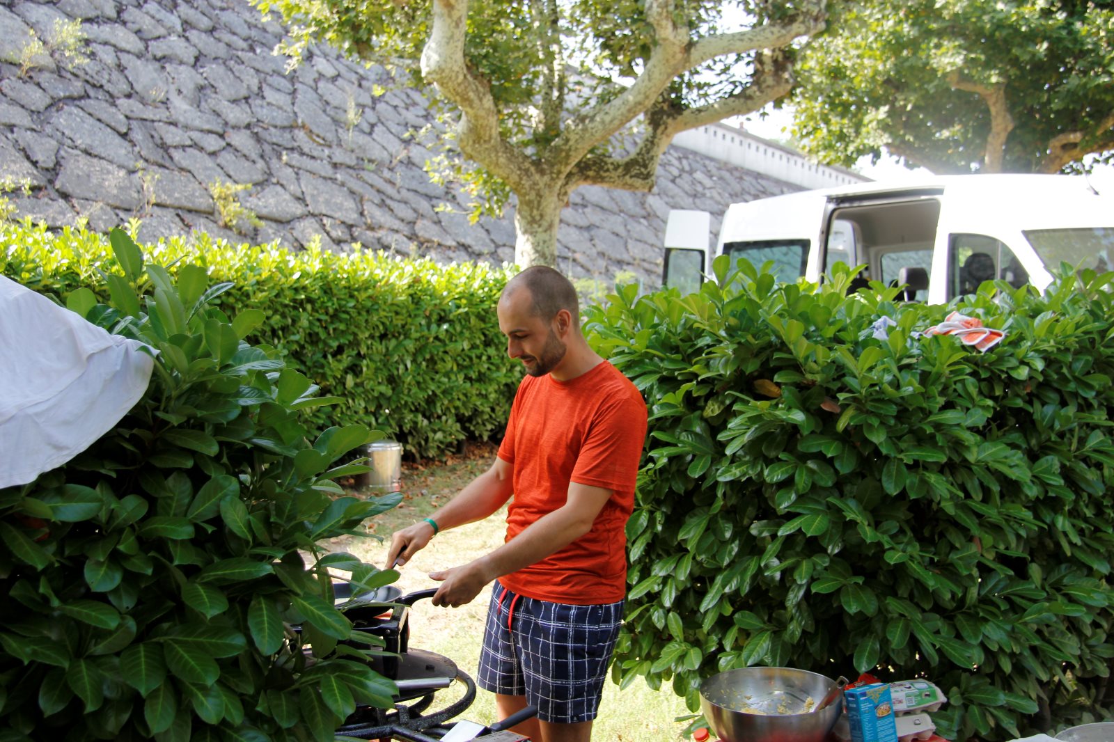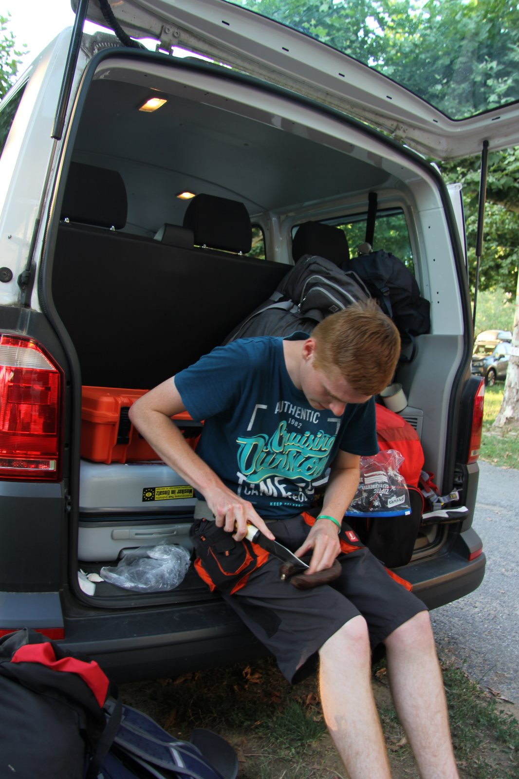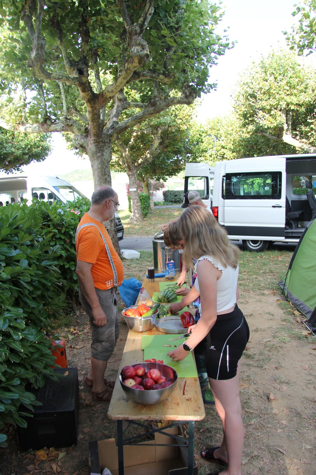 Hunger und die Lust auf Süßes konnte auf dem Rückweg gestillt werden. Über eine malerische Strecke kamen wir wieder auf dem Campingplatz an. Leider touchierte ich mit meinem Bus den von René und verursachte damit einen Schaden am Bremslicht. Mein Bus hat eine „Kaltverformung“ an der Seite erlitten. Fahrtüchtig sind, Gott sei Dank, noch beide. (1000€ Selbstbeteiligung werden wir noch stemmen müssen.)