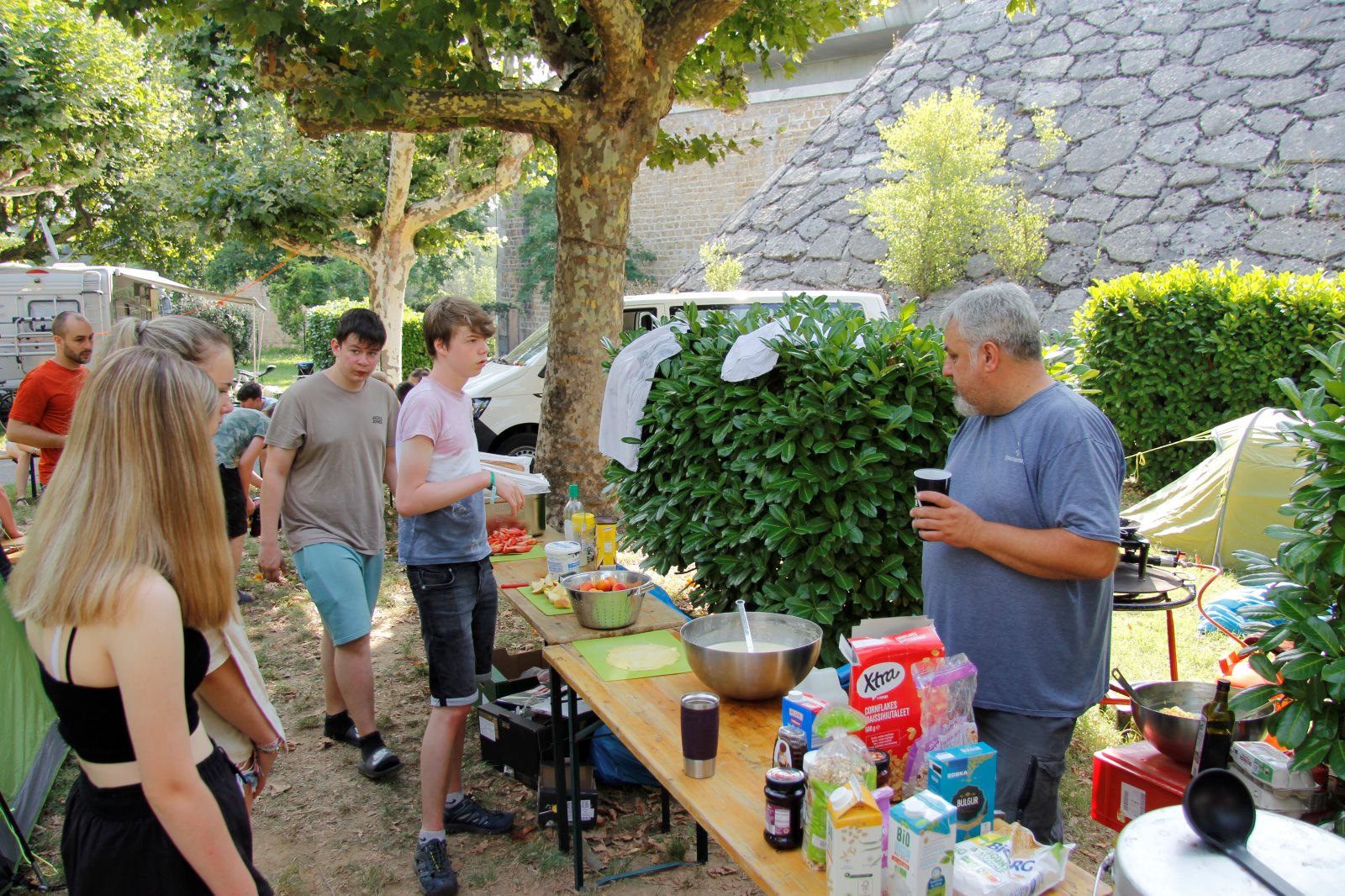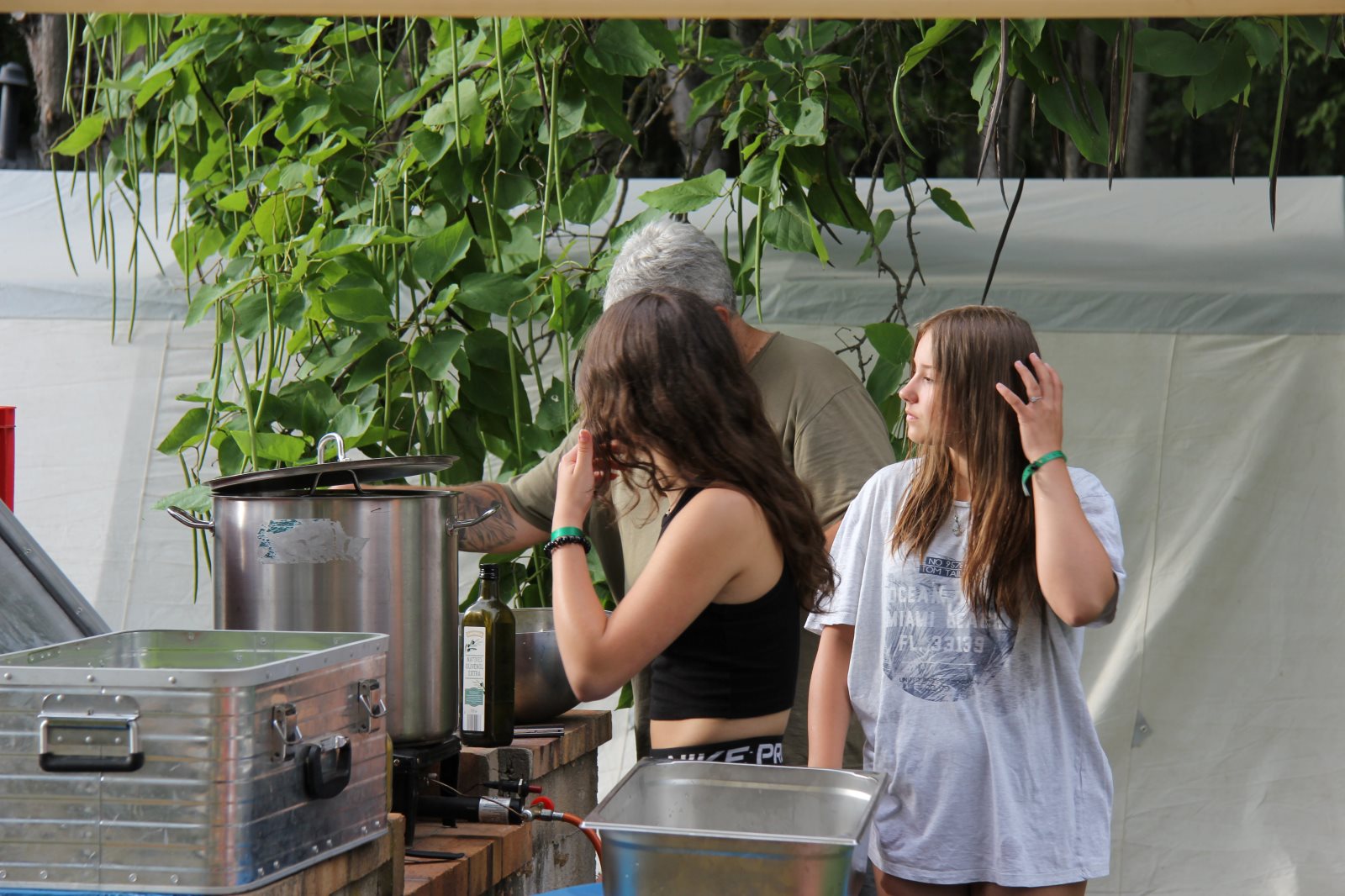 Unter der Anleitung von Aaron und Johann wurde das Abendessen vorbereitet und gekocht. Nudeln mit Tomatensoße, von der, obwohl in reichlicher Menge gekocht, nur wenig übrig blieb.