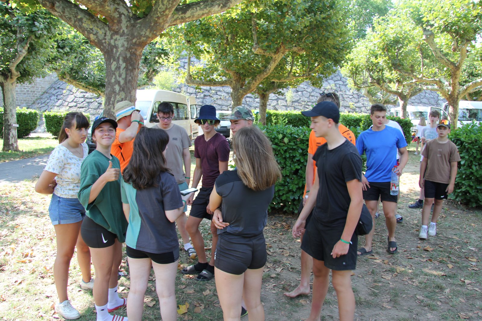 Es war für die meisten recht früh in diesem Urlaub. Man musste schon nachhelfen, dass die Jungs und Mädels auf die Beine kamen. So war auch noch recht wenig los als Frank mit den backfrischen Baguettes und Croissants vom Bäcker kam. Bis alle versammelt waren hatten das Brot Esstemperatur. 9.30 Uhr sollte die Abfahrt sein. Um 9.48 Uhr setzte sich der Tross in Bewegung in Richtung Les Baux. Dort hatten wir in den Carriéres des Lumières Karten bestellt.