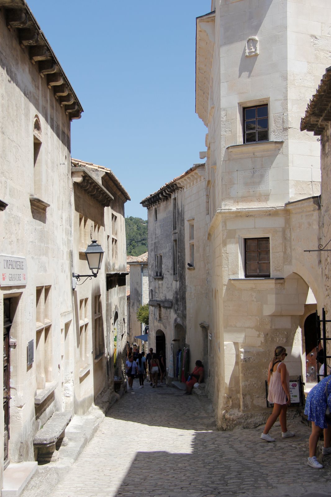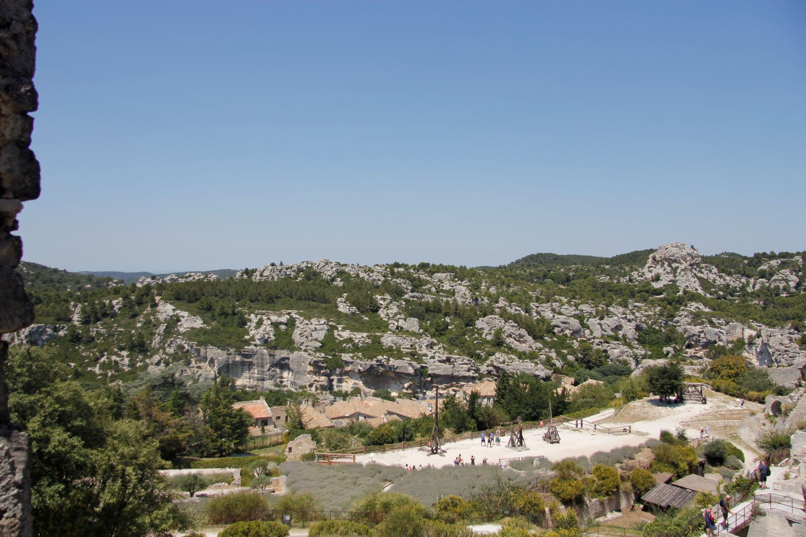 Das merken wir, als wir uns auf den Weg nach Les Baux machten. Dieses mittelalterliche Dörfchen liegt unterhalb des alten Burgareals. Nachdem wir den Anstieg gemeistert hatten, gingen einige auf die höchsten der Turmreste und genossen die Ausblicke in das umliegende Land.