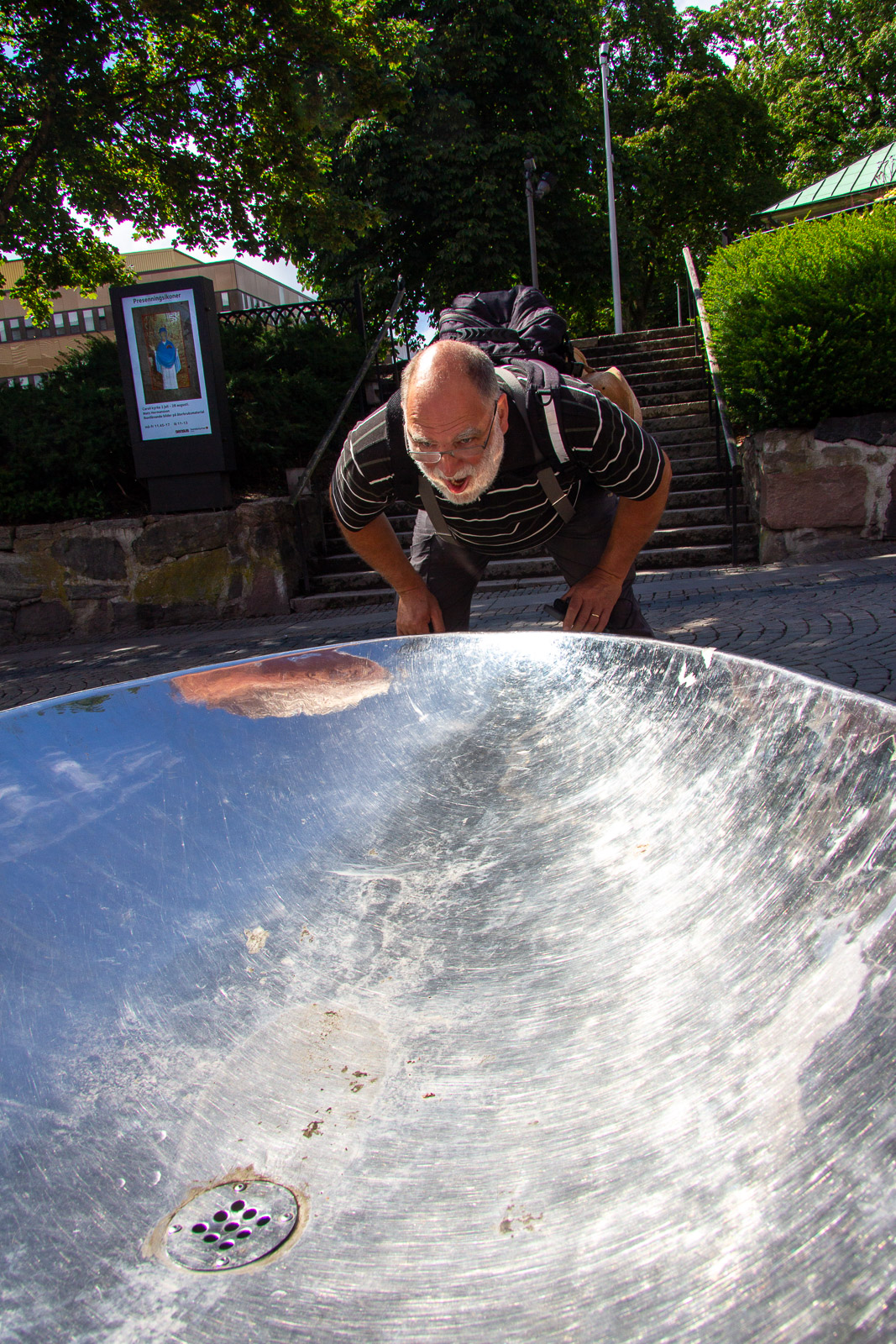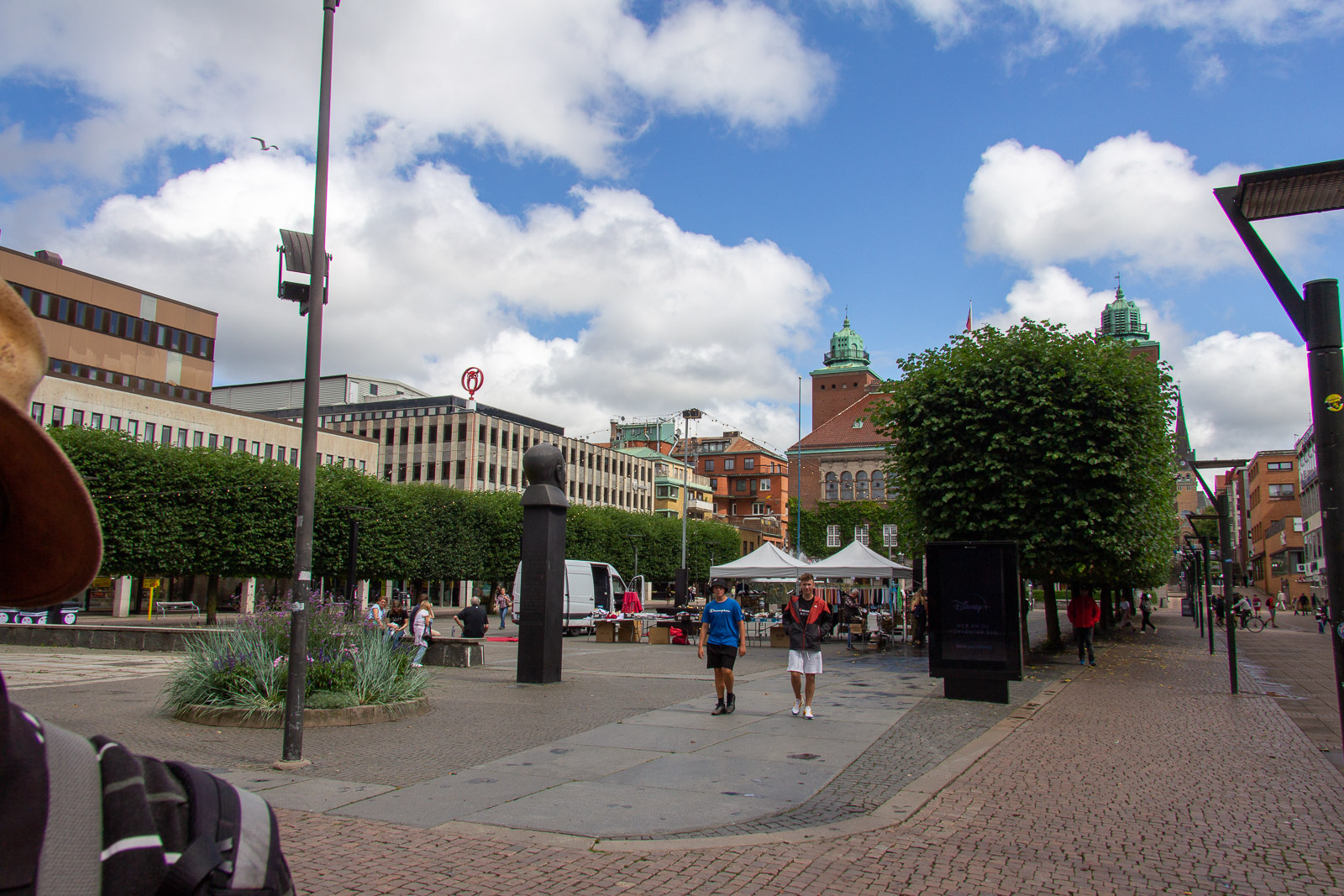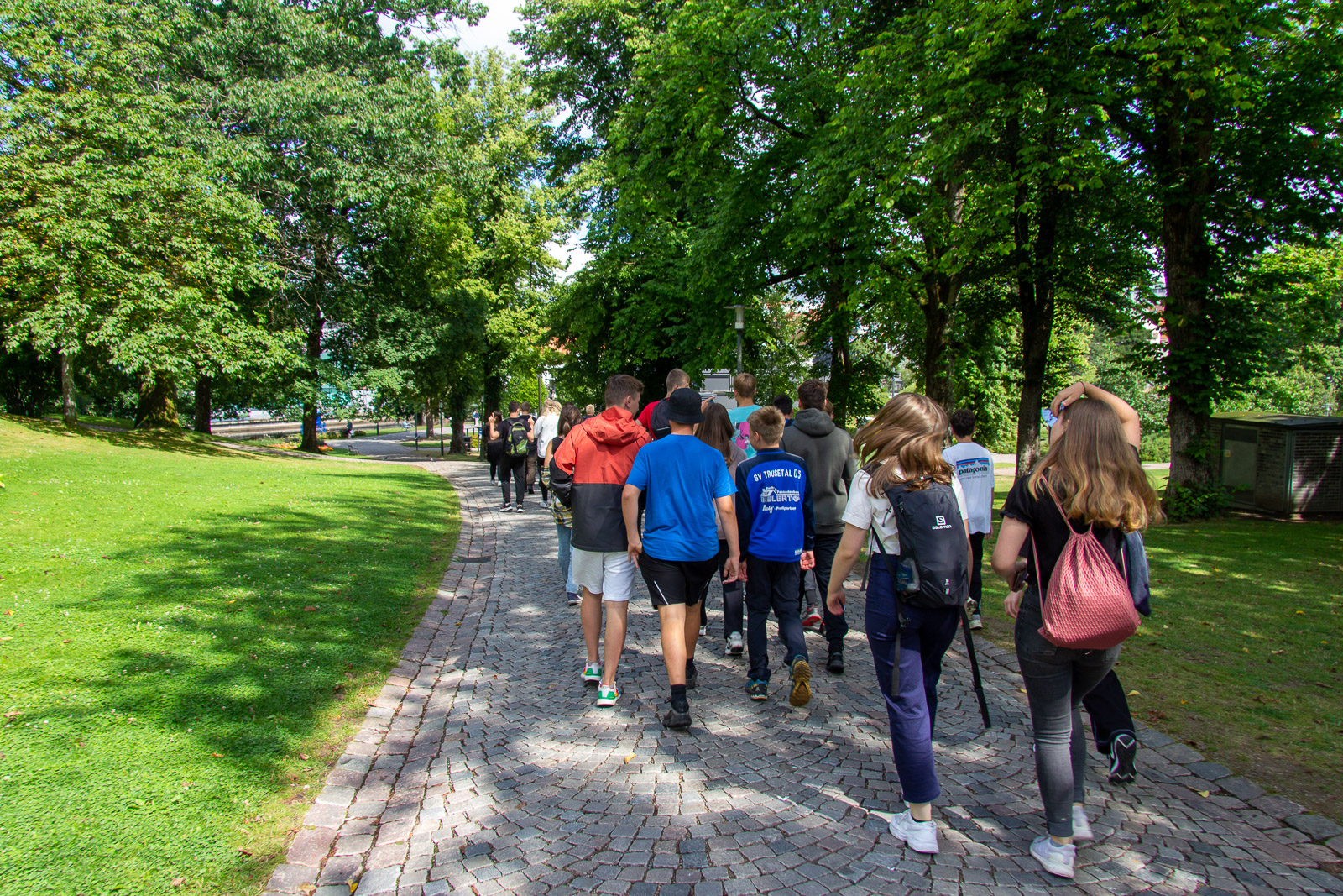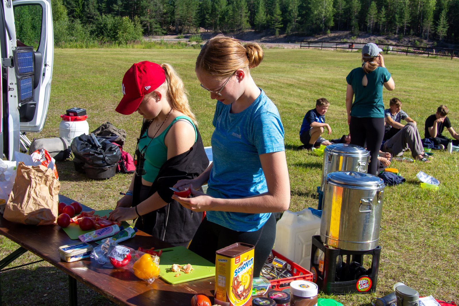 Der Montagmorgen war tatsächlich ruhig. Wahrscheinlich war der Rasen fertig gemäht. 😊 Um zwölf Uhr Mittag ging es los nach Borås. Zunächst in die Innenstadt. Dort konnten wir die Wandgemälde bestaunen und die Geschäfte erkunden. In der Karlskirche gibt es sogar für jeden Besucher in der Bank eine eigene Steckdose. Das wäre vielleicht etwas für unsere Konfis. Es war schon Unterschied zu dem Leben im Zelt und Boot. Dann ging es in den Konsumtempelbereich nach Knalleland. Frank, Johann und ich kauften ein: 10 kg Hackfleisch, 75 Portionen Kartoffelpüree, 4 l Preiselbeeren, 2 l Sahne und acht Packungen Champions daraus entstand das Abendessen Köttbullar. 800 entstanden und alle wurden satt. Und wir haben sogar das erste Mal etwas übriggehabt. (Die Mengen , die von dieser Gruppe gegessen werden, sind im Übrigen ein weiterer Rekord) Ok, es wurde dann noch Stockbrot gebacken. Nach dem Essen gab es eine Yogagruppe und andere versuchten sich mit Angeln und faulenzen. Morgen geht es ans Meer zu den Schären.