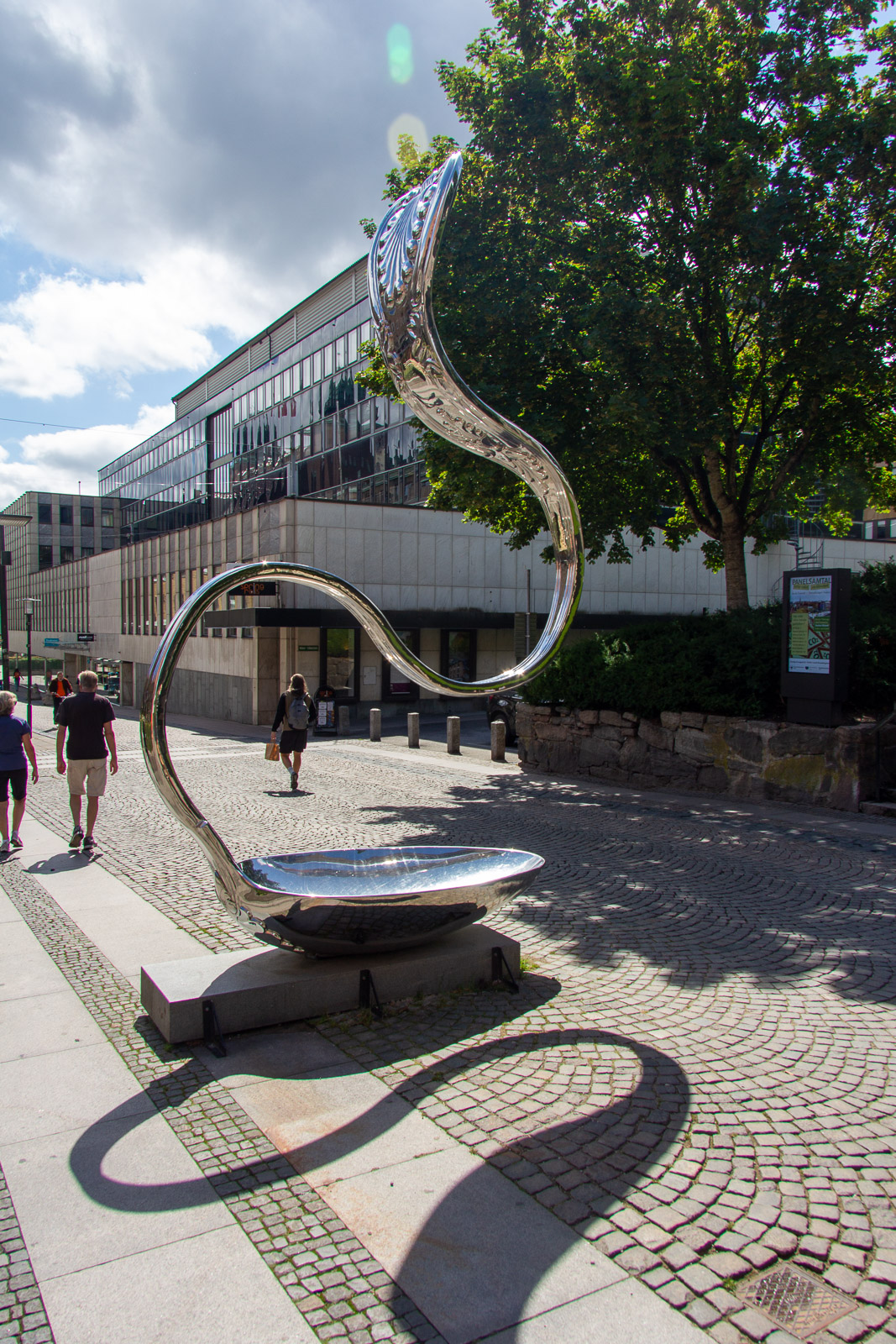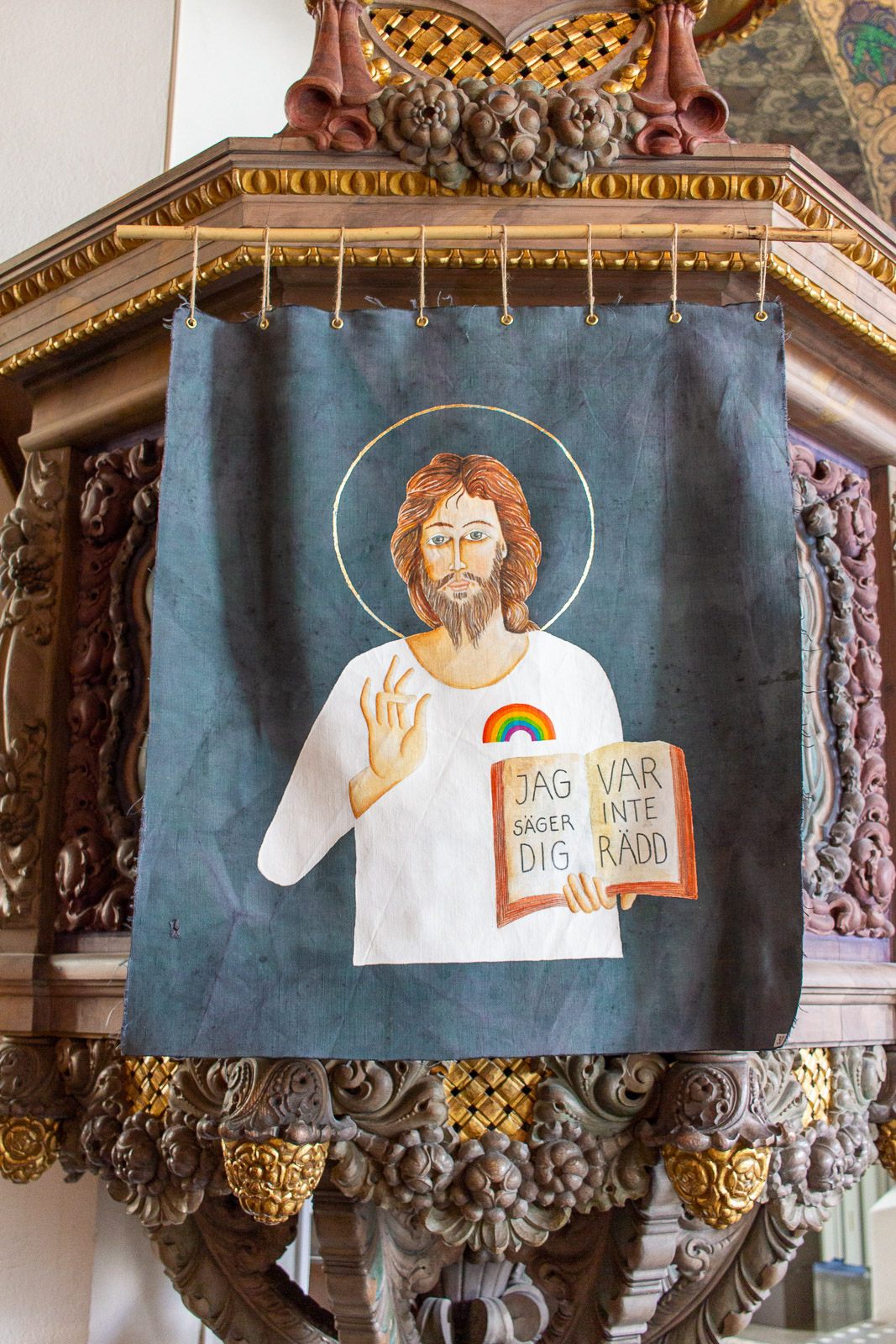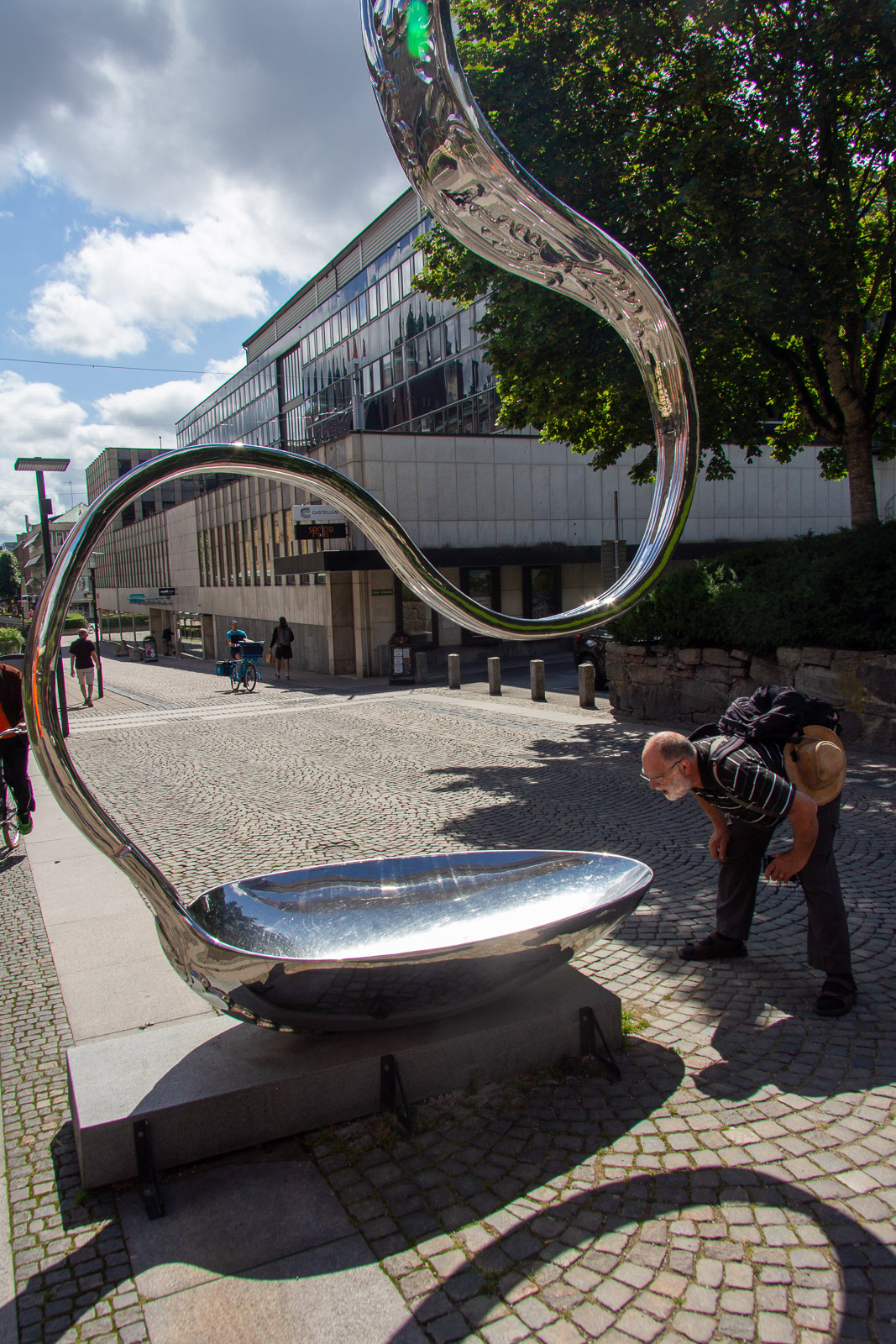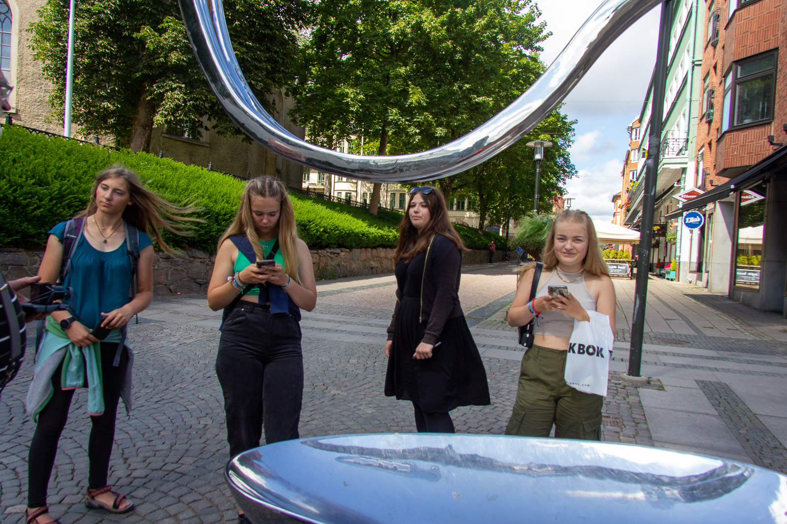 Der Montagmorgen war tatsächlich ruhig. Wahrscheinlich war der Rasen fertig gemäht. 😊 Um zwölf Uhr Mittag ging es los nach Borås. Zunächst in die Innenstadt. Dort konnten wir die Wandgemälde bestaunen und die Geschäfte erkunden. In der Karlskirche gibt es sogar für jeden Besucher in der Bank eine eigene Steckdose. Das wäre vielleicht etwas für unsere Konfis. Es war schon Unterschied zu dem Leben im Zelt und Boot. Dann ging es in den Konsumtempelbereich nach Knalleland. Frank, Johann und ich kauften ein: 10 kg Hackfleisch, 75 Portionen Kartoffelpüree, 4 l Preiselbeeren, 2 l Sahne und acht Packungen Champions daraus entstand das Abendessen Köttbullar. 800 entstanden und alle wurden satt. Und wir haben sogar das erste Mal etwas übriggehabt. (Die Mengen , die von dieser Gruppe gegessen werden, sind im Übrigen ein weiterer Rekord) Ok, es wurde dann noch Stockbrot gebacken. Nach dem Essen gab es eine Yogagruppe und andere versuchten sich mit Angeln und faulenzen. Morgen geht es ans Meer zu den Schären.
