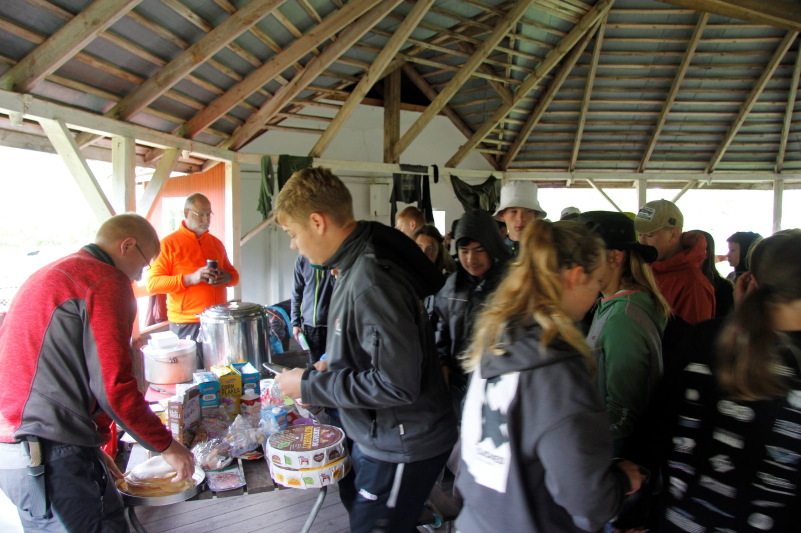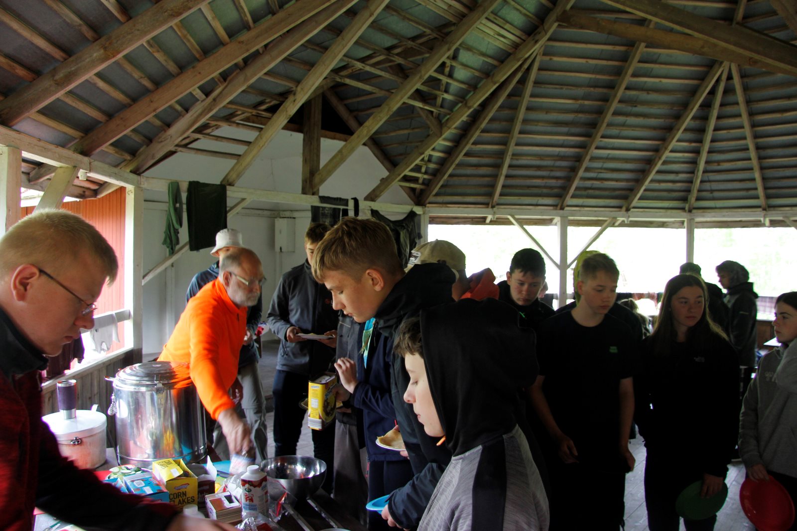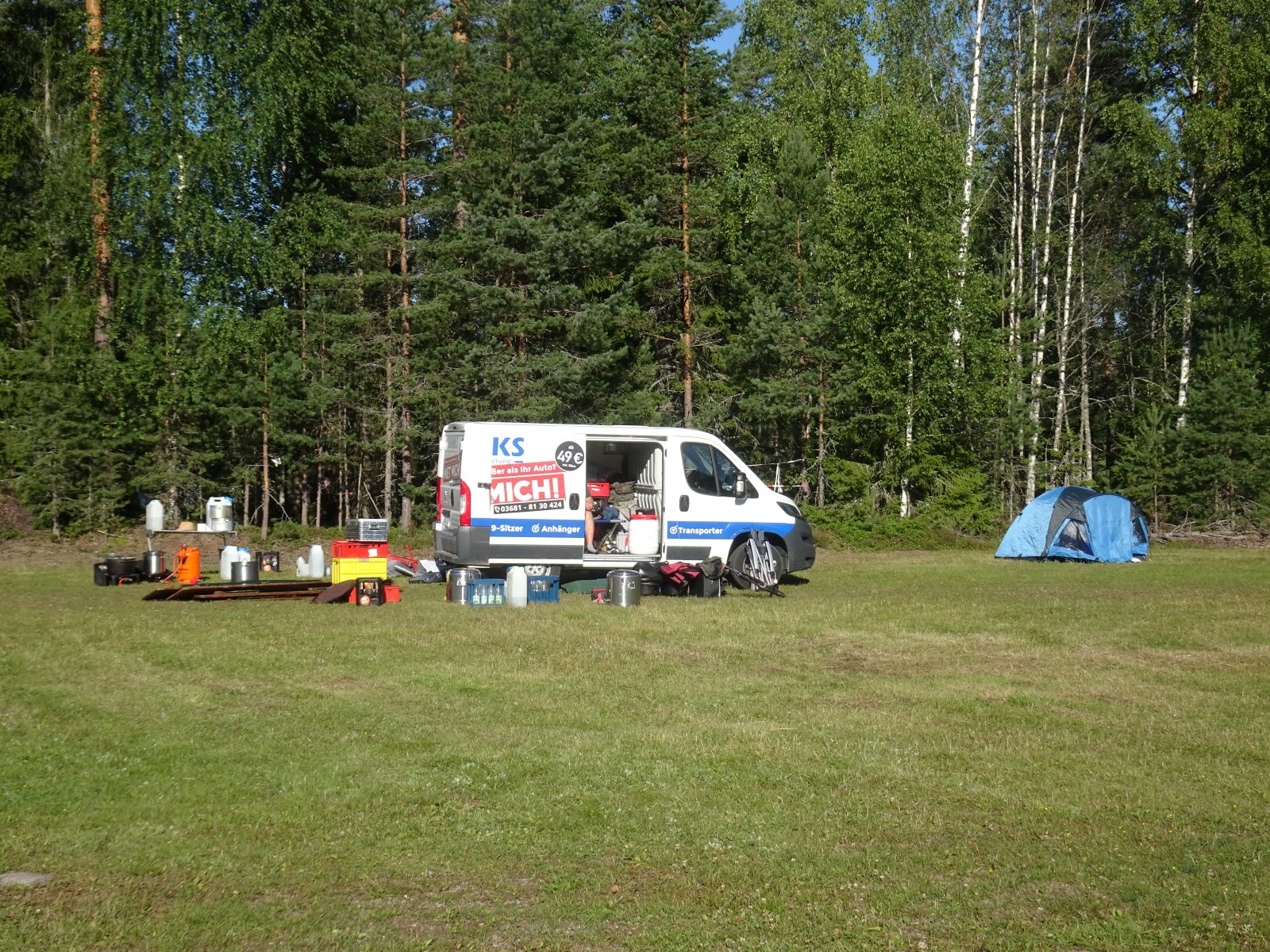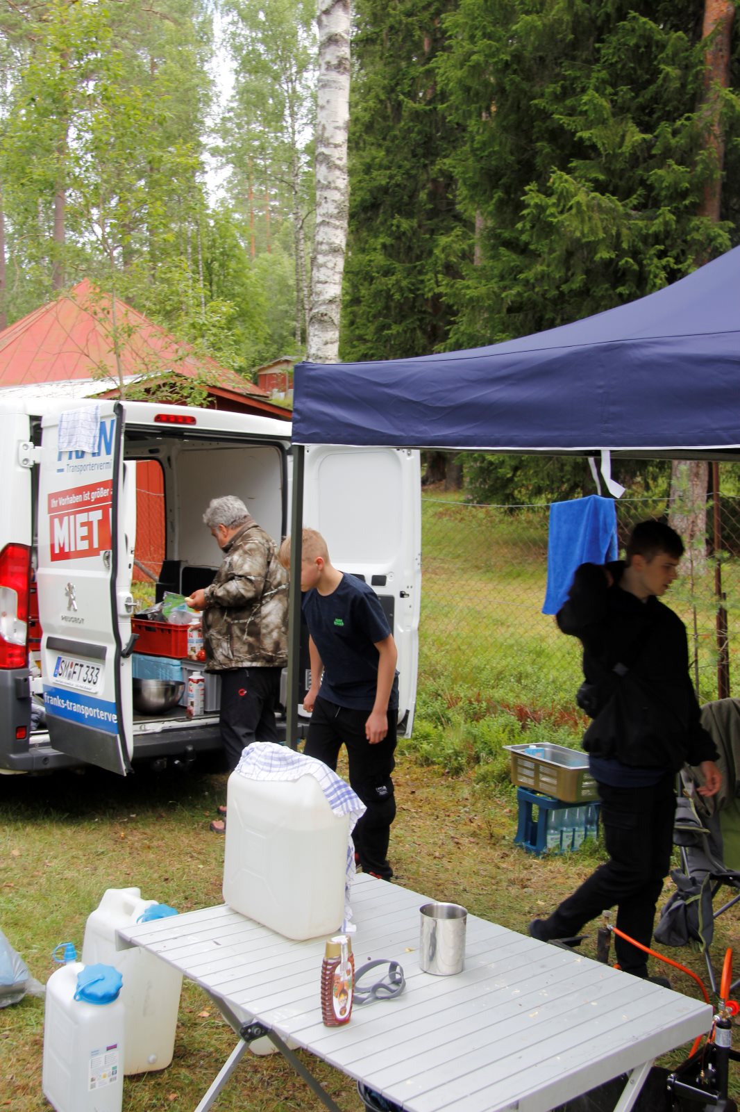 Am Morgen sind wir als Karawane zum Frühstück gezogen. Dabei ging es über die Crossstrecke zum Versorgungsauto. Nach einem kräftigenden Essen ging es zurück, um das Gepäck zu holen und die Zelte abzubauen. Dann ging es auf die letzte Etappe. An der Kanustation waren die 42 km lange Kanutour zu ende. Die Boote mussten noch gereinigt werden. Dann wurde aufgesessen und es ging los nach Bovik. Der Autocorso machte sich auf. Tim fühlte sich so weit gut, dass er das Versorgungsauto fahren konnte. Bei der Rast gab es Brot und Wurst und als Zugabe einen schwedischen Hotdog. Die Verkäuferin in der Raststätte war erstaunt über die Bestellung von 34 Hotdogs. Nun sie sah ja auch nur Frank und mich 😉. Wenn die Dame von Franks Navi uns nicht den kürzesten Weg hätte führen wollen, dann wären wir sicher schneller im Quartier gewesen. So gab es erst kurz vor halb zwölf Nudeln mit Tomatensoße. Erst nach zwölf waren alle mit Essen fertig und bereit für ein paar Ansagen. Danach ging es in die Betten. Die Bilder dauern immer eine ganze Weile, bis sie hochgeladen sind. Daher bitte ich um Geduld bis morgen, wenn ich das WLAN Passwort habe.