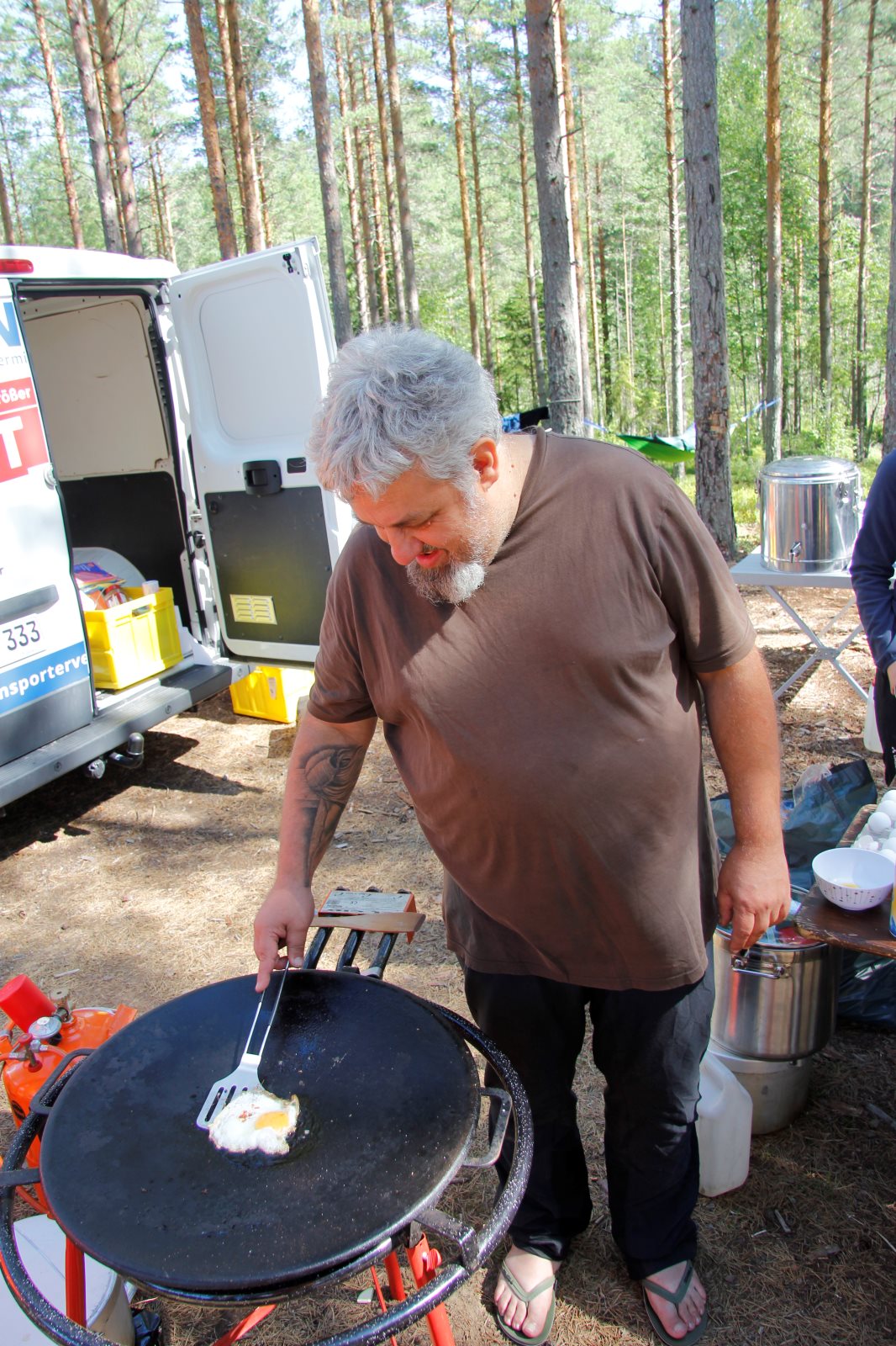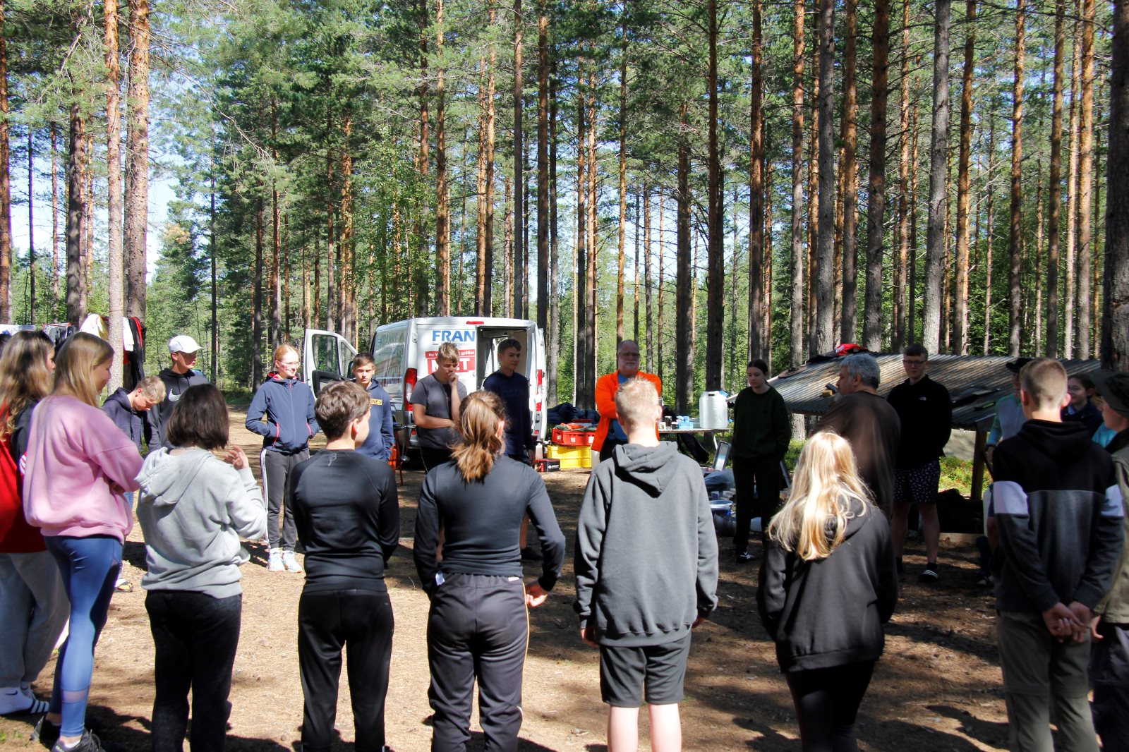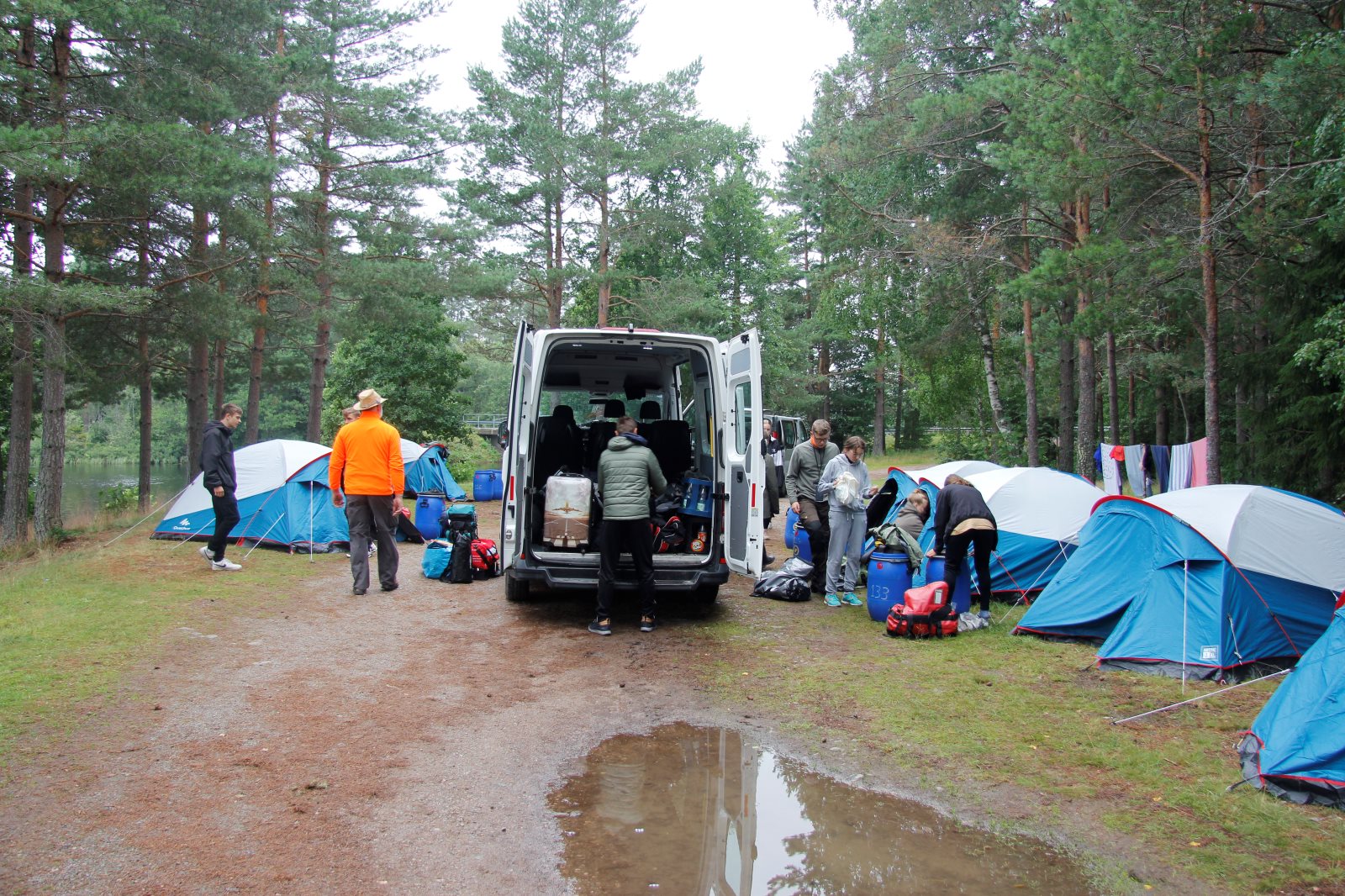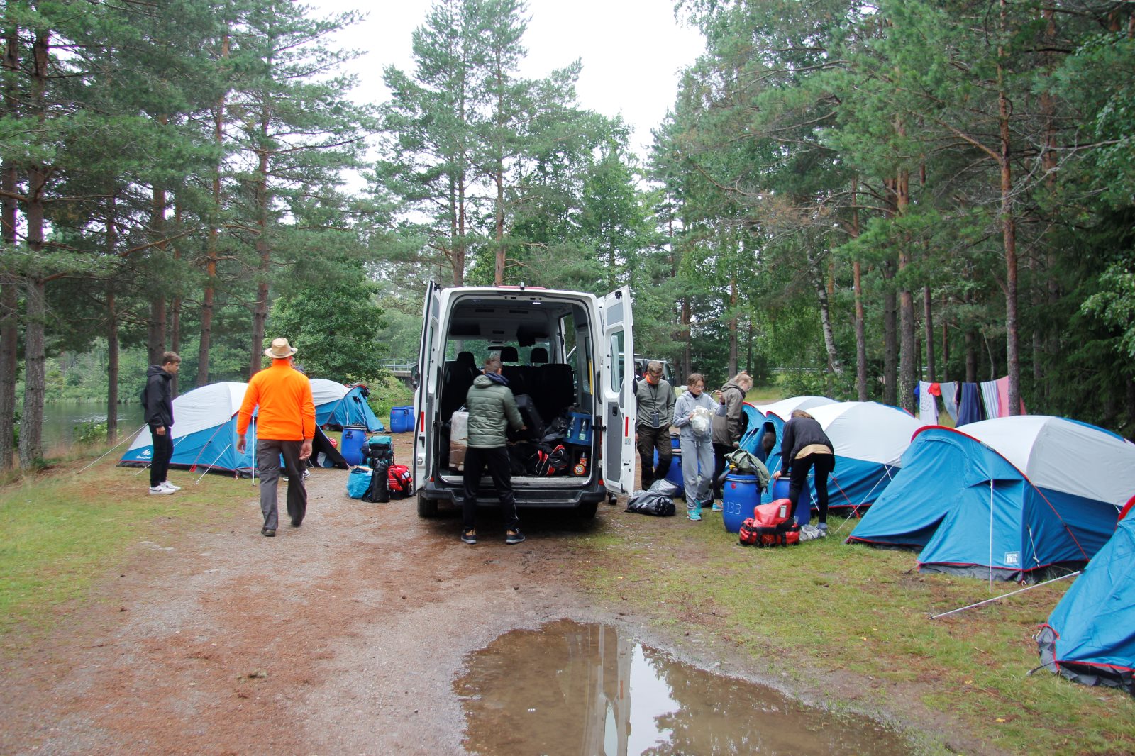 Am Morgen sind wir als Karawane zum Frühstück gezogen. Dabei ging es über die Crossstrecke zum Versorgungsauto. Nach einem kräftigenden Essen ging es zurück, um das Gepäck zu holen und die Zelte abzubauen. Dann ging es auf die letzte Etappe. An der Kanustation waren die 42 km lange Kanutour zu ende. Die Boote mussten noch gereinigt werden. Dann wurde aufgesessen und es ging los nach Bovik. Der Autocorso machte sich auf. Tim fühlte sich so weit gut, dass er das Versorgungsauto fahren konnte. Bei der Rast gab es Brot und Wurst und als Zugabe einen schwedischen Hotdog. Die Verkäuferin in der Raststätte war erstaunt über die Bestellung von 34 Hotdogs. Nun sie sah ja auch nur Frank und mich 😉. Wenn die Dame von Franks Navi uns nicht den kürzesten Weg hätte führen wollen, dann wären wir sicher schneller im Quartier gewesen. So gab es erst kurz vor halb zwölf Nudeln mit Tomatensoße. Erst nach zwölf waren alle mit Essen fertig und bereit für ein paar Ansagen. Danach ging es in die Betten. Die Bilder dauern immer eine ganze Weile, bis sie hochgeladen sind. Daher bitte ich um Geduld bis morgen, wenn ich das WLAN Passwort habe.