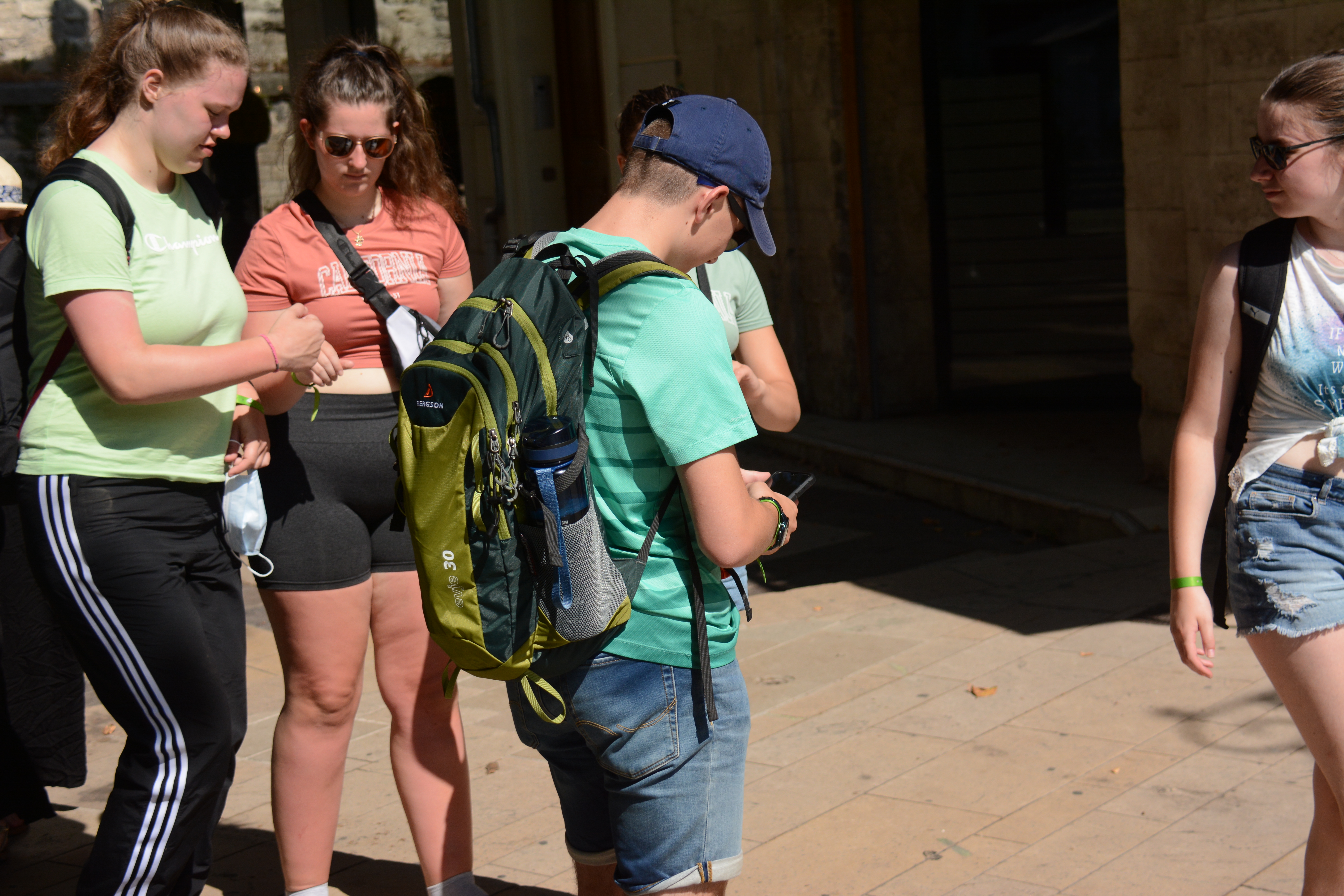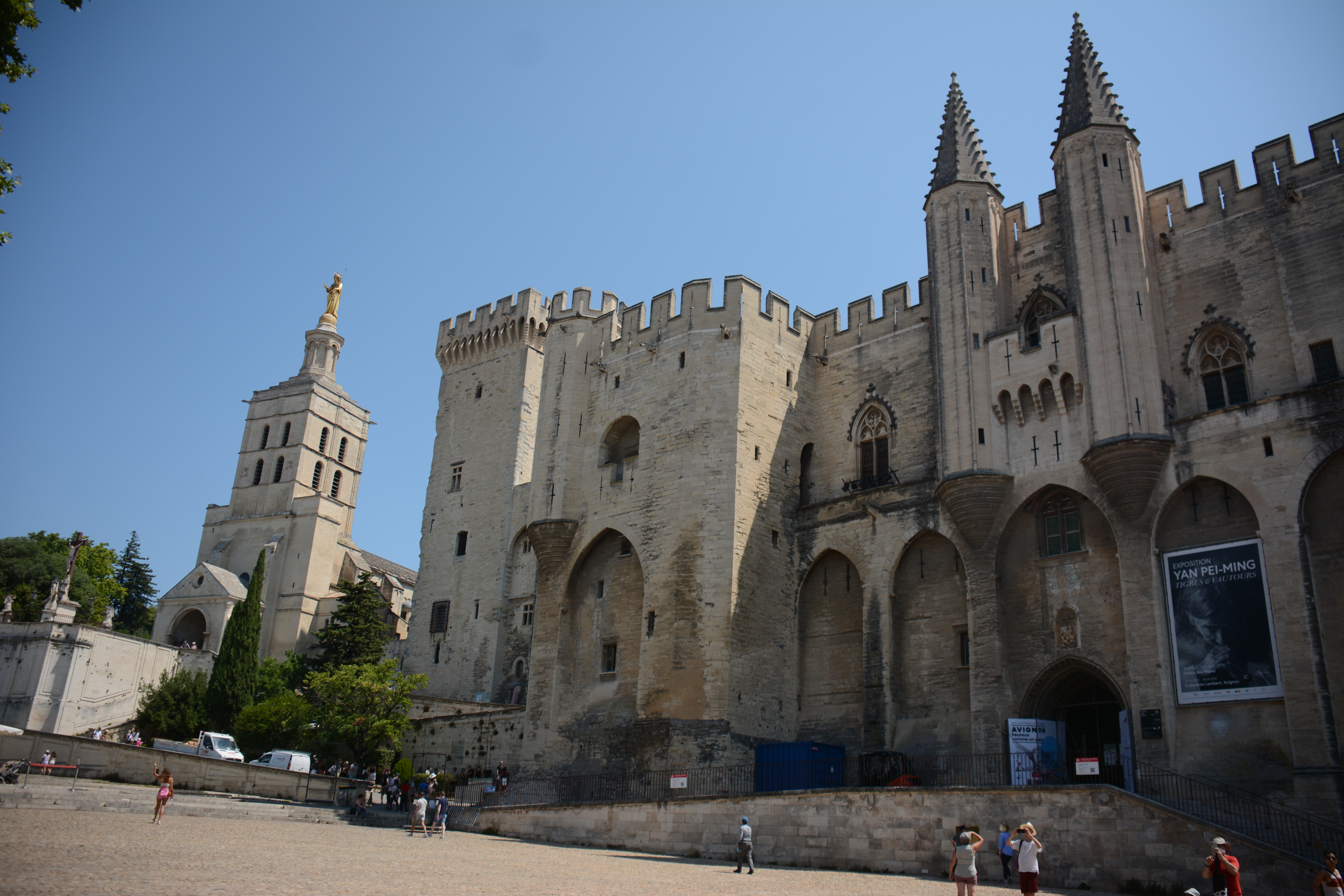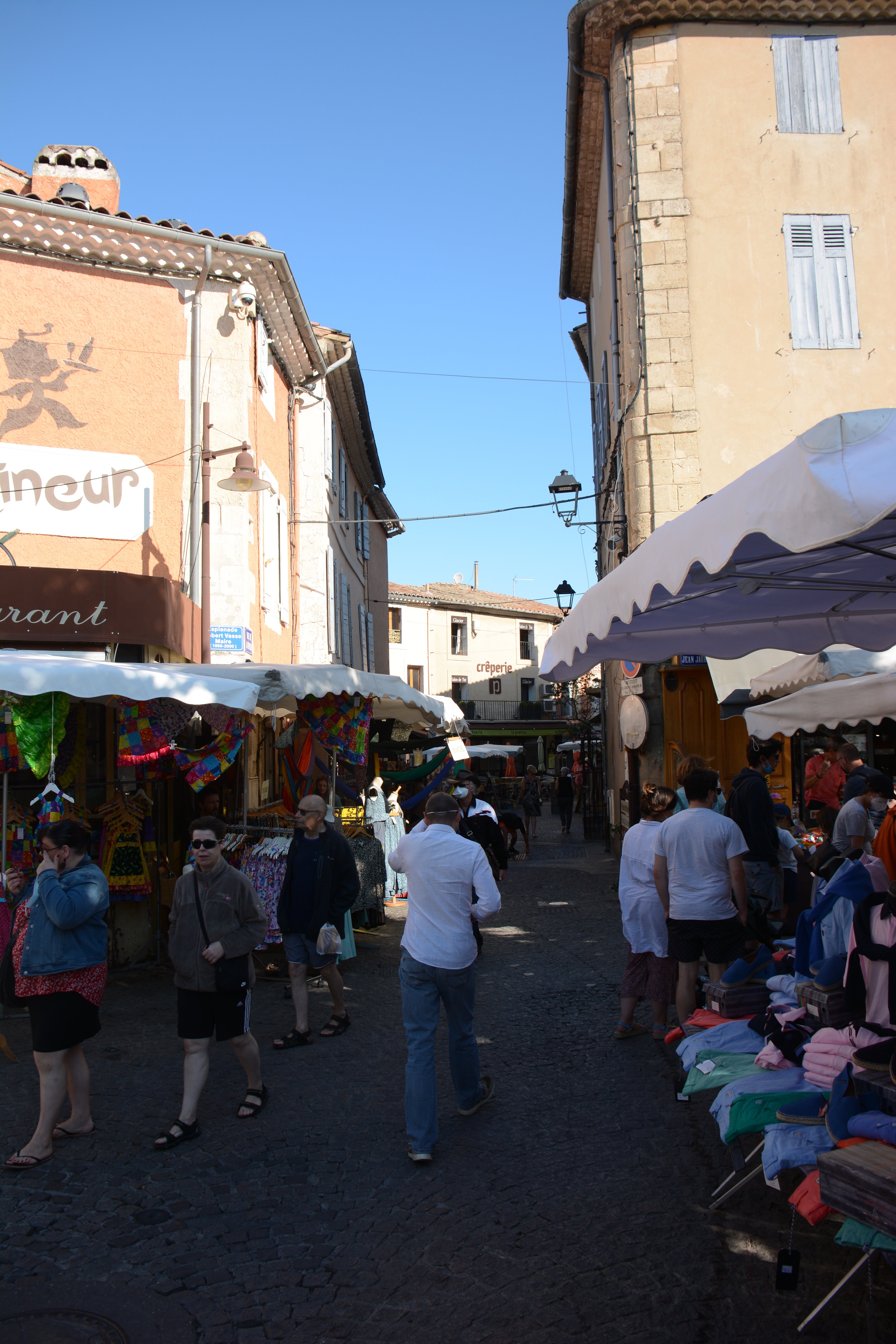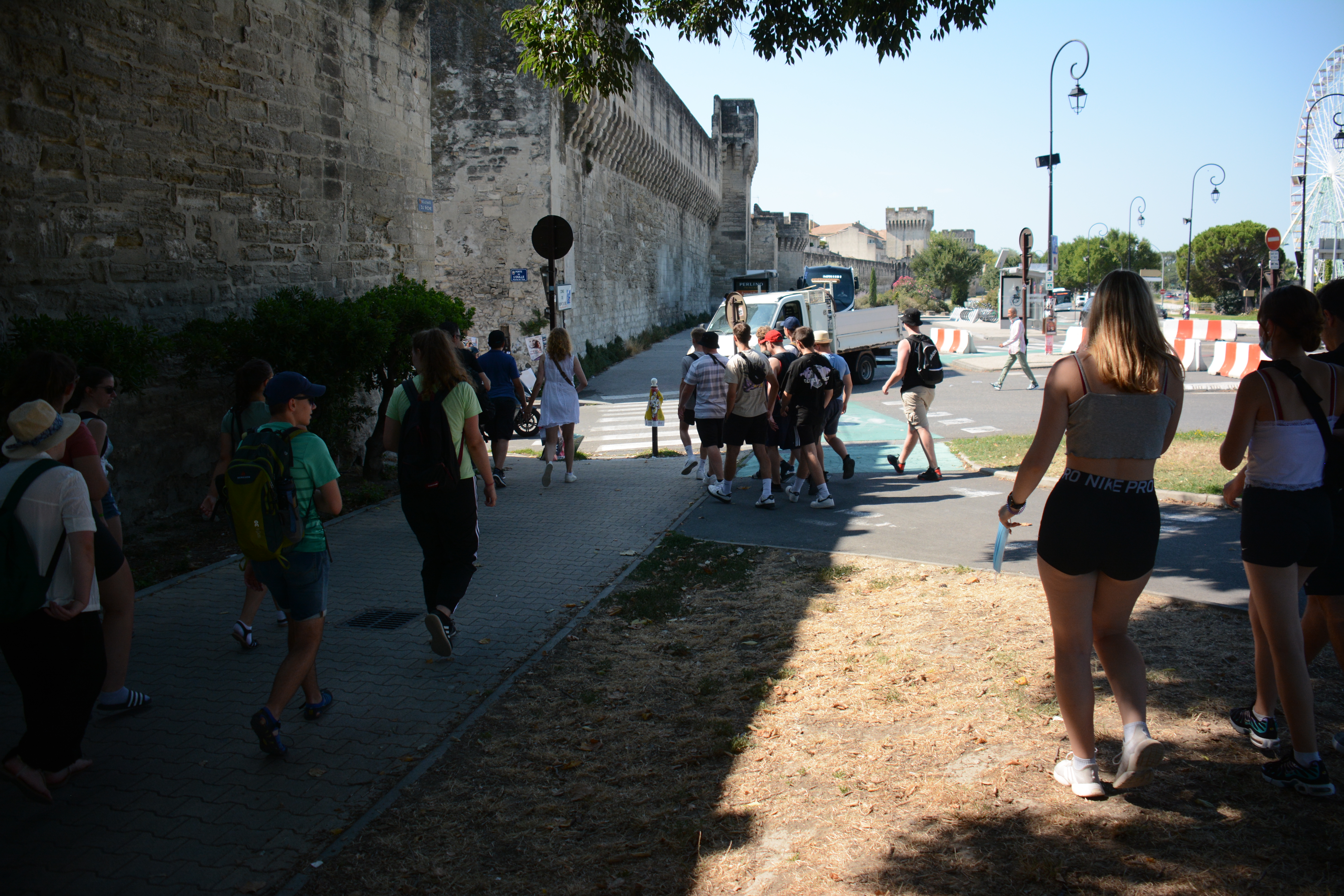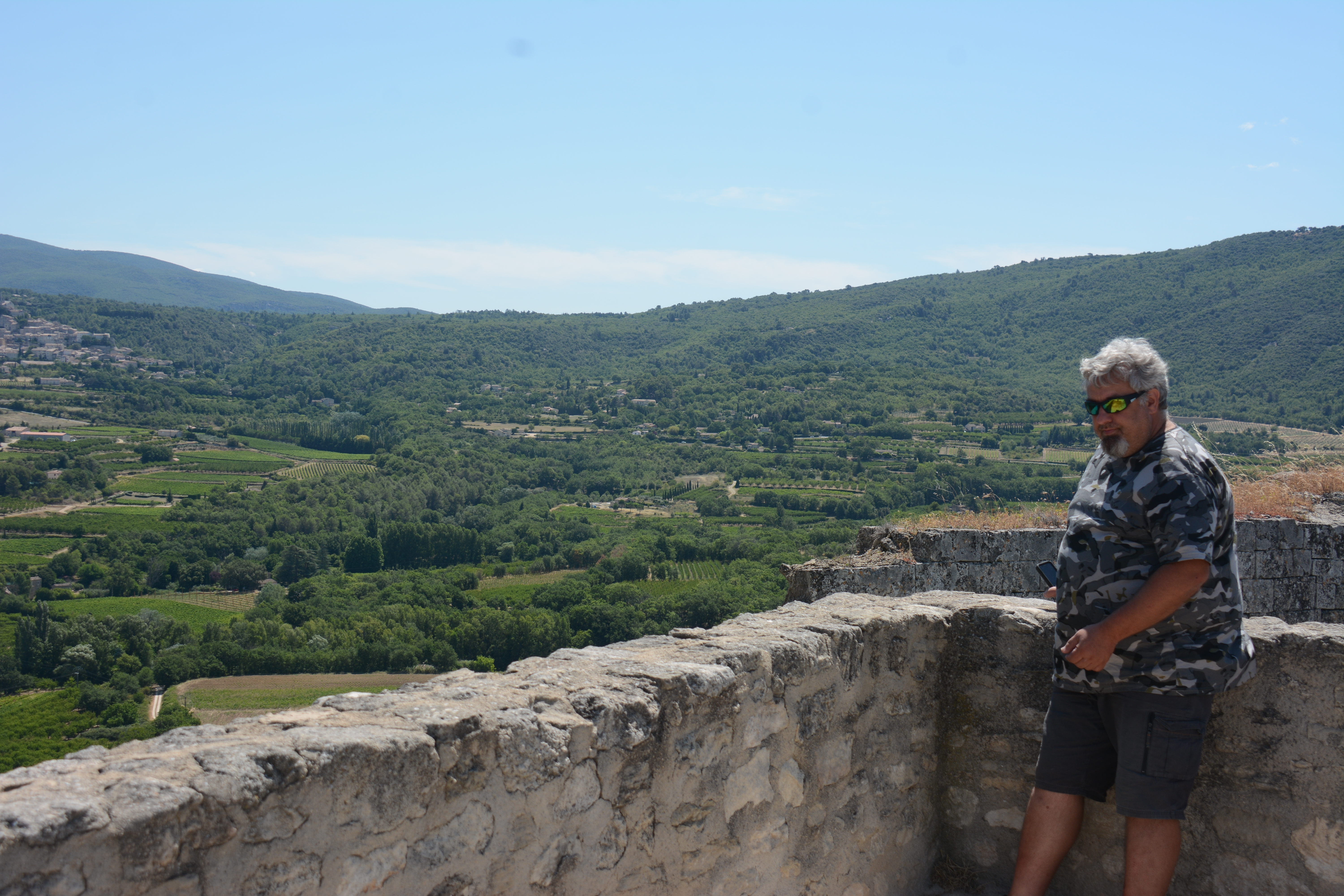 Heute Morgen konnten die Jugendlichen entscheiden, ob es zu dem Ort Les Baux geht, übrigens der Namensgeber für Bauxit, und dort einzutauchen in die Geschichte auch der Hugenotten, oder ob wir lieber einen Einblick in die Dörfchen der Provence nehmen wollen. Das Ergebnis war, dass wir nach Lacoste fuhren dem Stammsitz von Marquis de Sade. Dieser Marquis ist, wie von Frank zu erfahren war, der mehr seiner 74 Jahren in Gefängnissen und Irrenanstalten verbrachte als draußen. Nach ihm wurde auch der Sadismus benannt. In Lacoste kann man deutlich sehen, wie der Herrscher über dem „Gesinde“ residierte. Das Interesse an dem Örtchen war in der Gruppe unterschiedlich stark 😉
