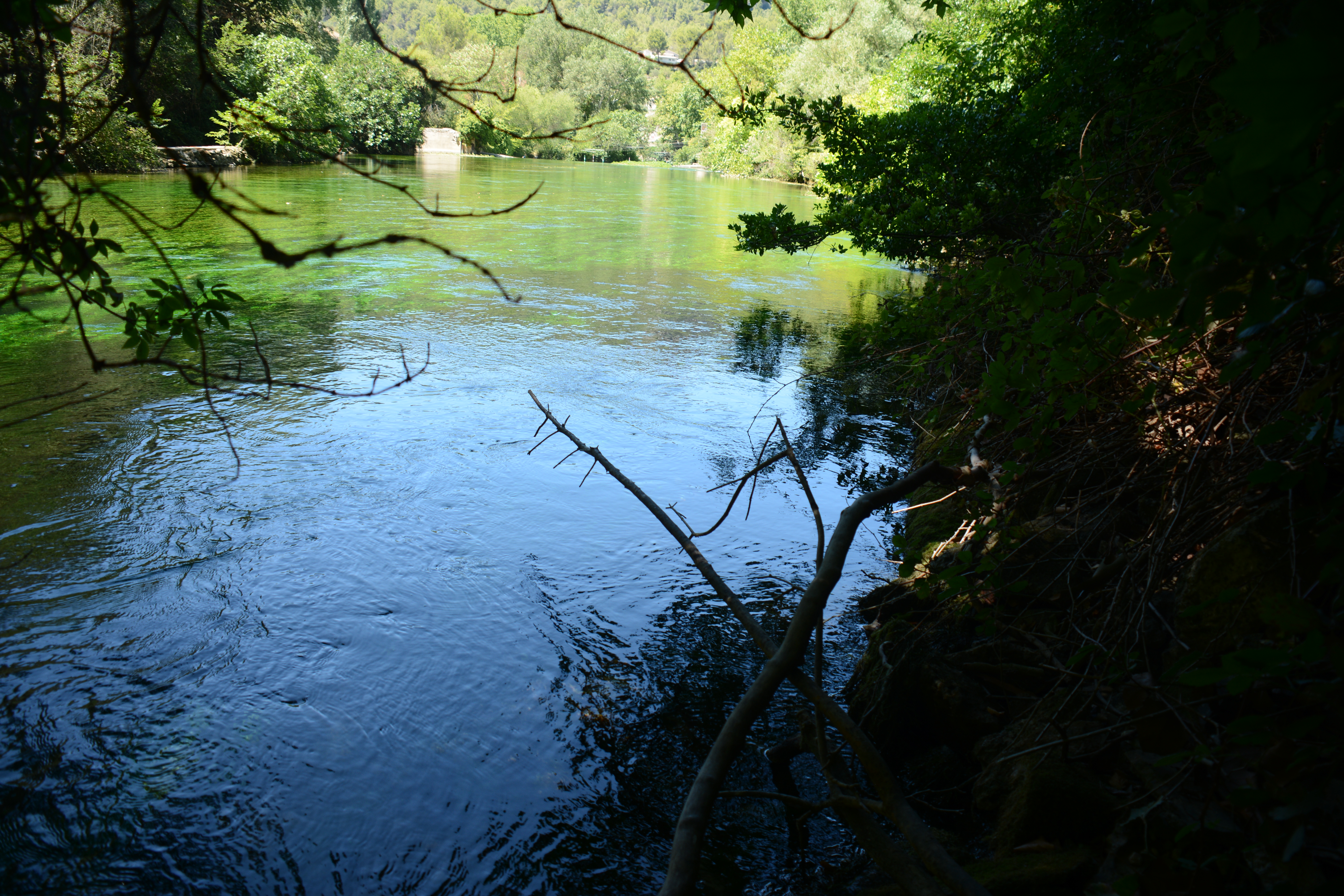 Danach ging es über eine „Déviation“ also Umleitung zur Quelle der Sourge, von der wir gestern schon hörten. In Valcluse entspringt der Fluss. Und zwar mit einer Wassermenge von ca. 200 qm pro Stunde. Wenn man an die Quellen der Werra denkt, dann ist das ein absolutes Naturschauspiel. Von einem Meter auf den Anderen ist der Fluss da. Auf dem Weg zu diesem Punkt besichtigten wir noch eine Papiermühle, in der immer noch zu Vorführzwecken gearbeitet wird. Ebenfalls auf dem Weg begegnete mir ein Schild, das deutlich zeigt, dass Google Übersetzungen mit Vorsicht zu genießen sind.