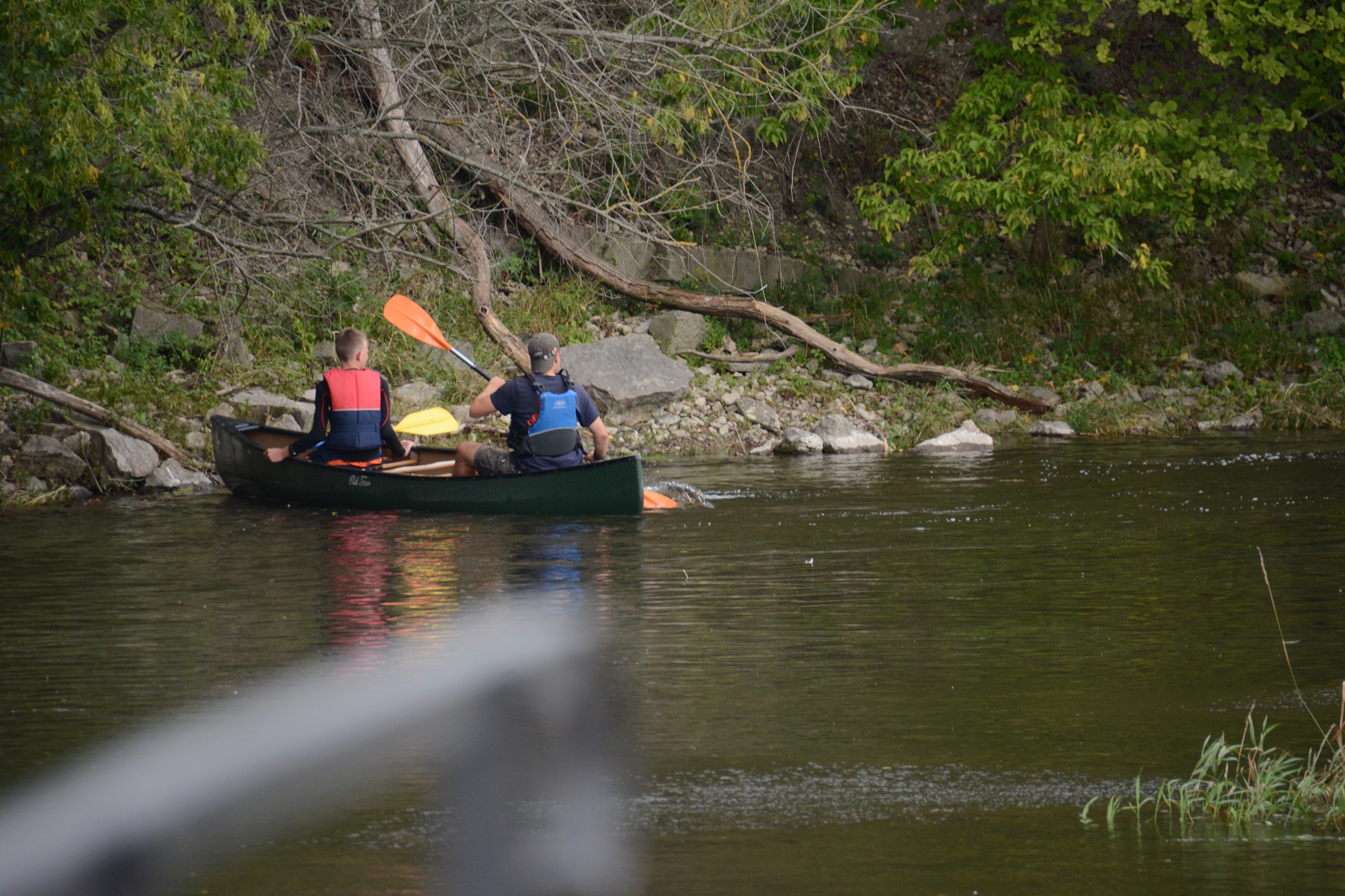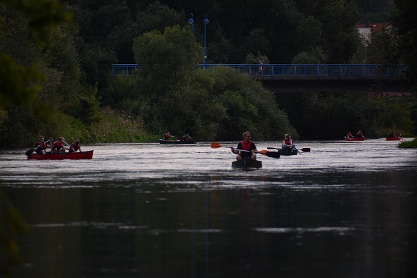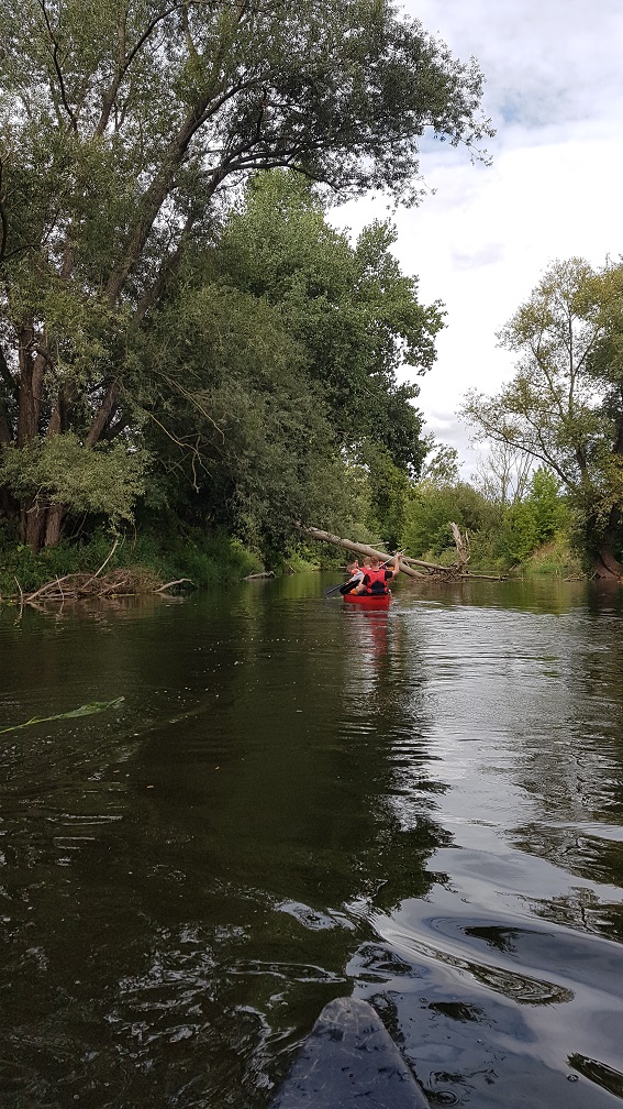Da wir noch einige Flusskilometer vor uns hatten, verstauten wir alles wieder in den Kleinbussen, die auf paralleler Landroute zu unserem eigentlichen Ziel, dem Campingplatz nach Jena, fuhren. Wir selber machten uns bereit und paddelten eifrig, wie eh und je an einigen der Naturschutzgebiete vorbei. Der Blickwinkel vom Wasserweg aus ermöglichte uns auch eine kleine Ansammlung von Eisvögeln ungestört an ihren Brutplätzen, zu betrachten. Eine absolute Seltenheit auf jene Vogelart zu treffen!