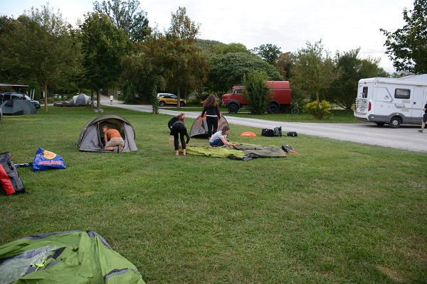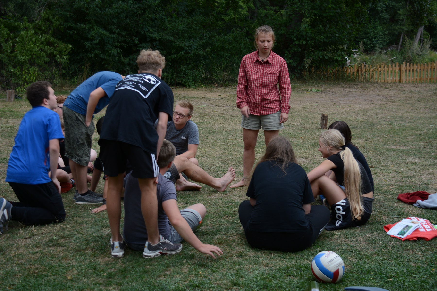 Hungrig von der Fahrt war die Arbeitsaufteilung schnell klar: Gemeinsam Zelte aufbauen und Sitzecken für das Abendessen anrichten. Den Rest des Abends ließen wir harmonisch ausklingen, während die Teamer über den morgigen Tag beraten sollten.