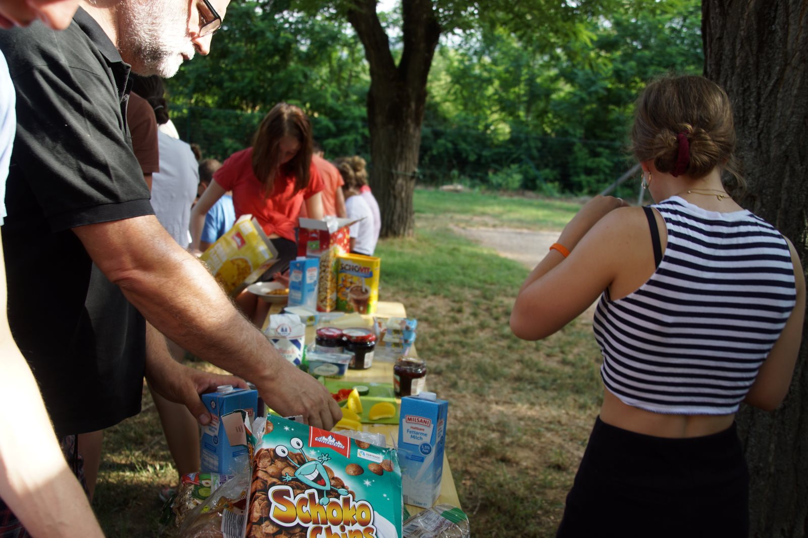 Crêpes von Frank und Joni gebacken, sowie die Baguettes haben so gut geschmeckt, dass alle kräftig  zugeschlagen haben.
