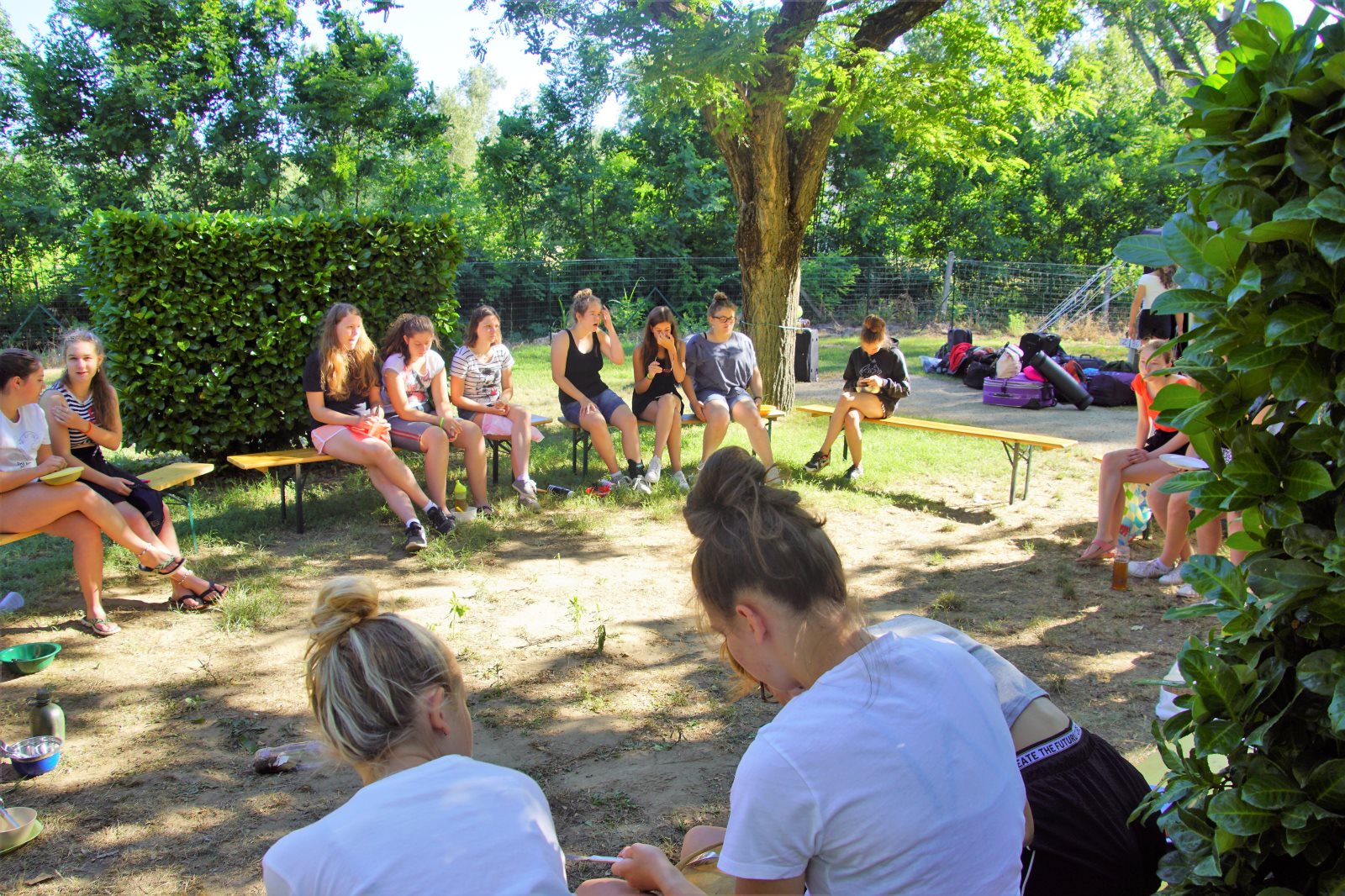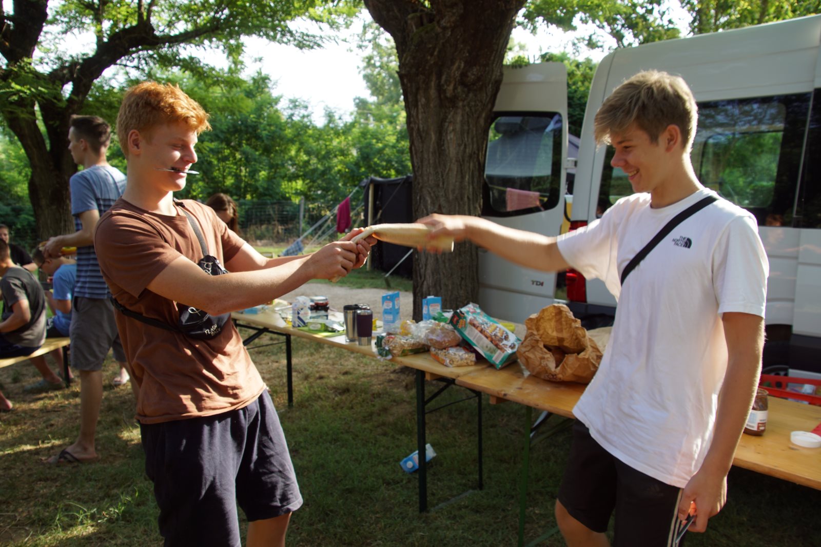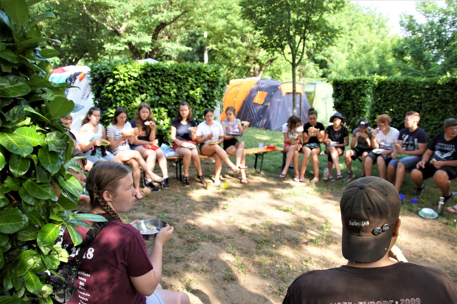 Einige unserer Leute sind gleich auf andere zugegangen und hatten gar keine Probleme, sich daran zu gewöhnen, dass wir auf einmal unter 3000 jungen Leute sind. In jeder Ecke wird eine andere Sprache gesprochen und beim Anstehen beim Essen wurde es schon eng. Einige mussten sich daran gewöhnen, dass dann auch noch laut gesungen wurde und der eine oder andere Spaß gemacht wurde.