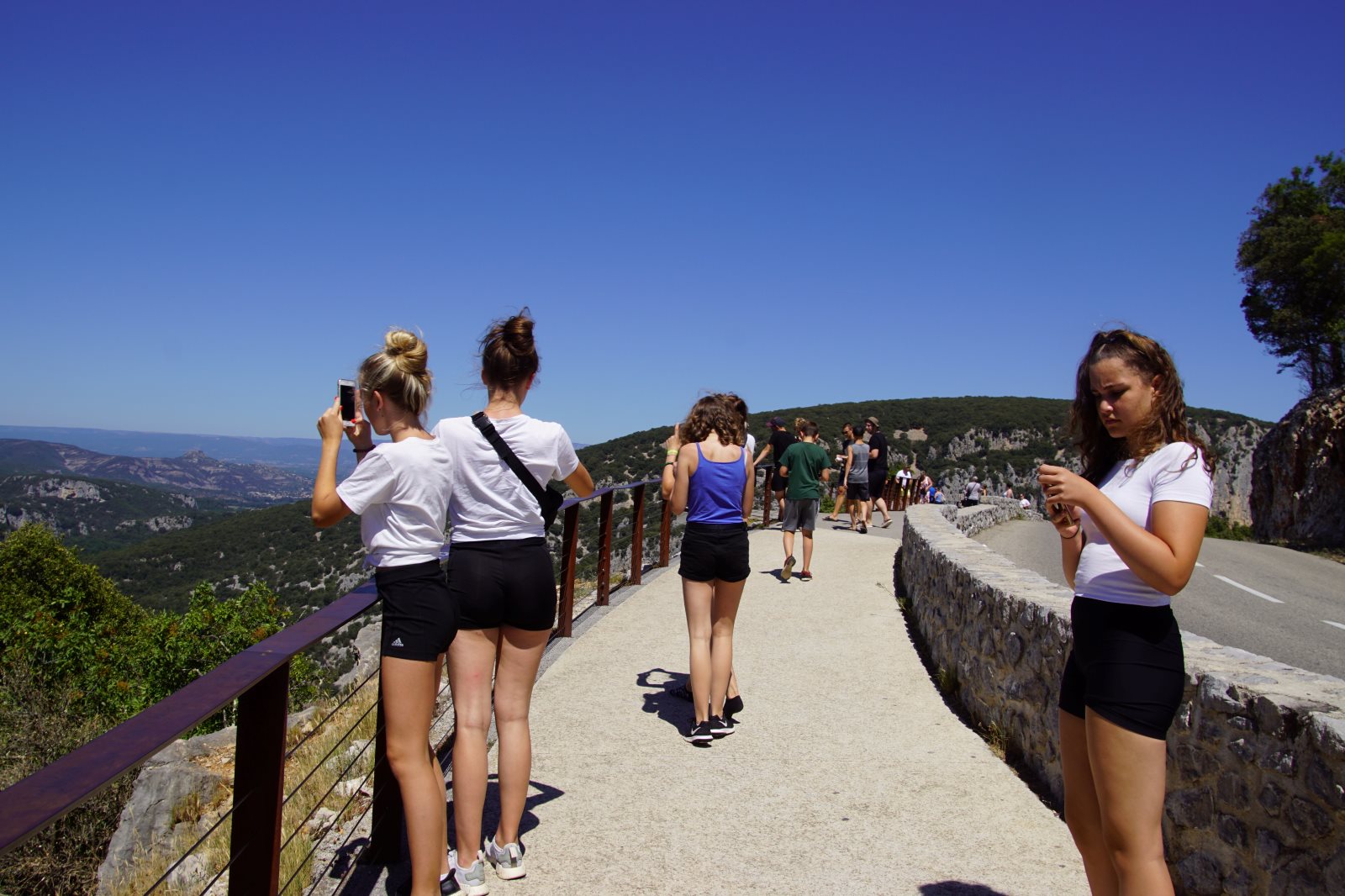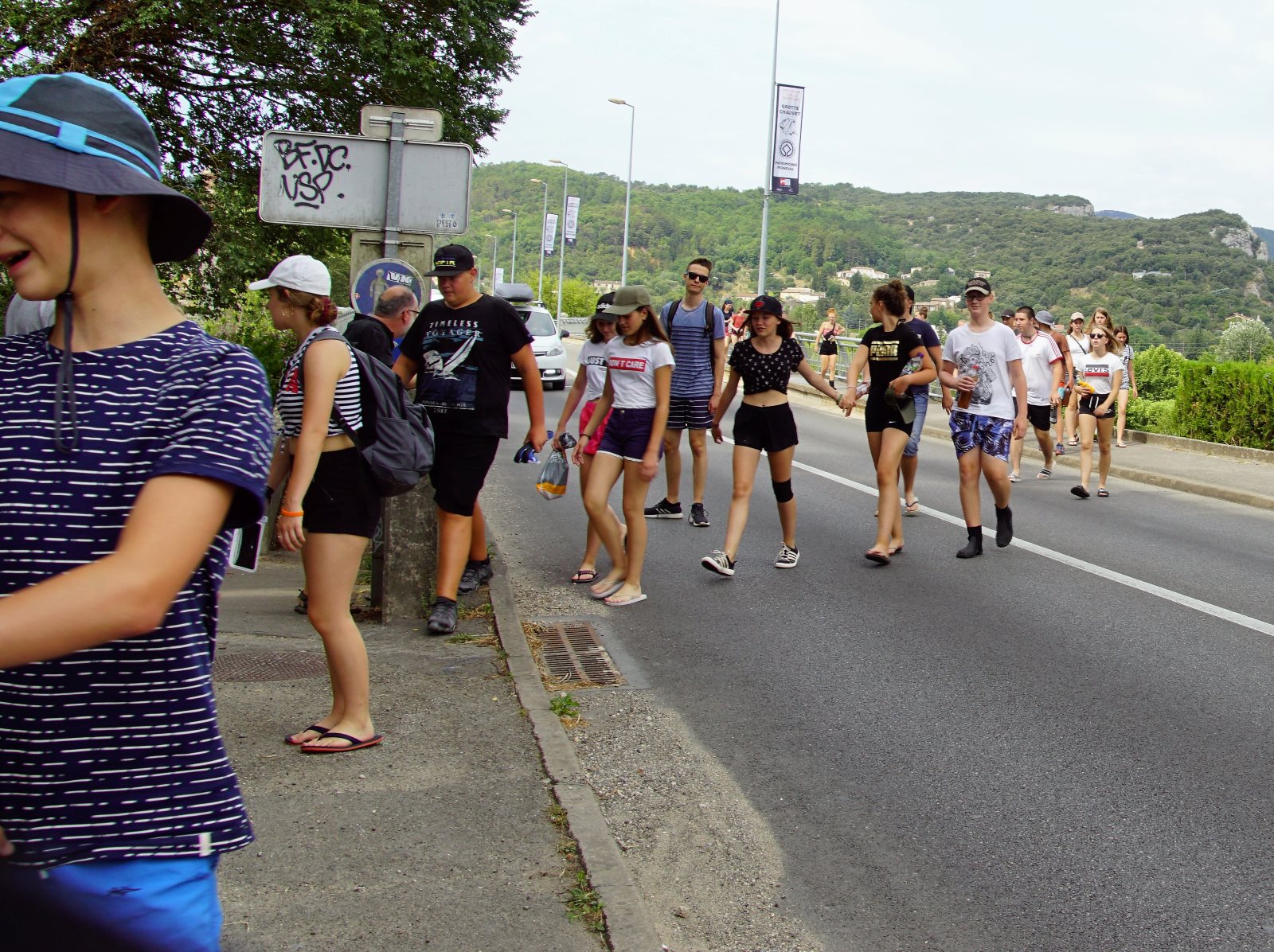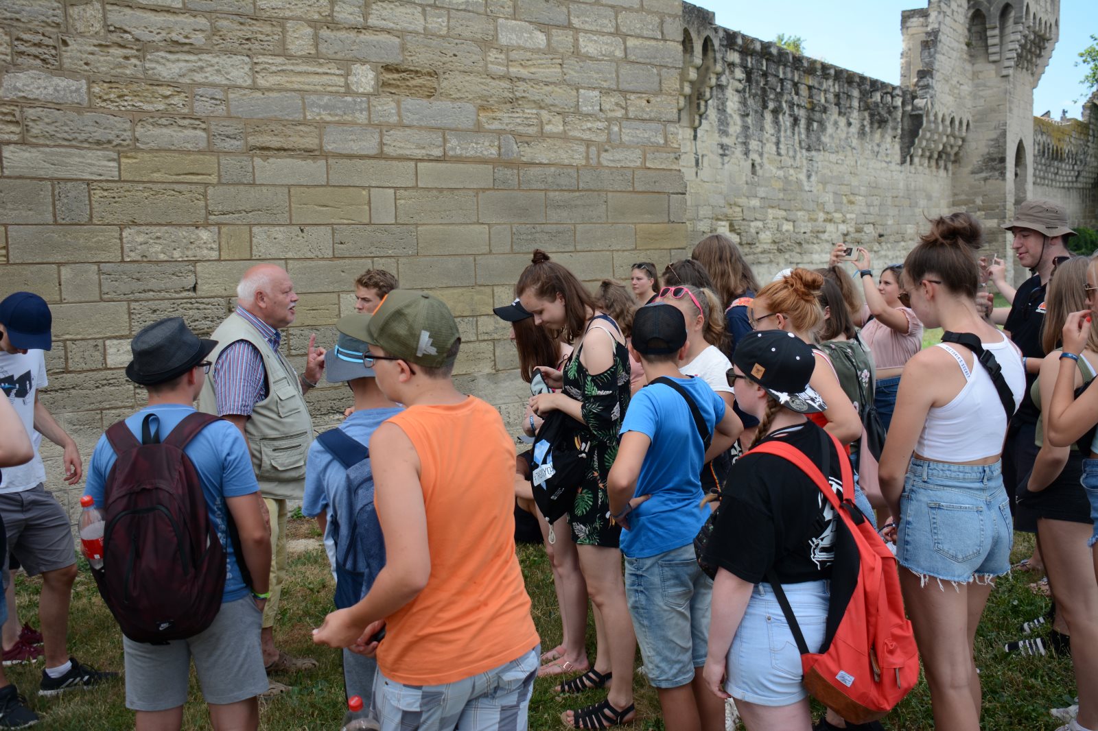 Mit Joni und Anton sind sie im Dunkeln auf die Burg gestiegen. Zur guten Laune trug schon einmal bei, das ein Mädchen vor einen Mast gelaufen war. Oben auf der Burg hatte man einen sehr schönen Blick auf Avignon. Nur das Feuerwerk fehlte. Wie wir jetzt wissen, musste es wegen Trockenheit und starkem Wind abgesagt werden.