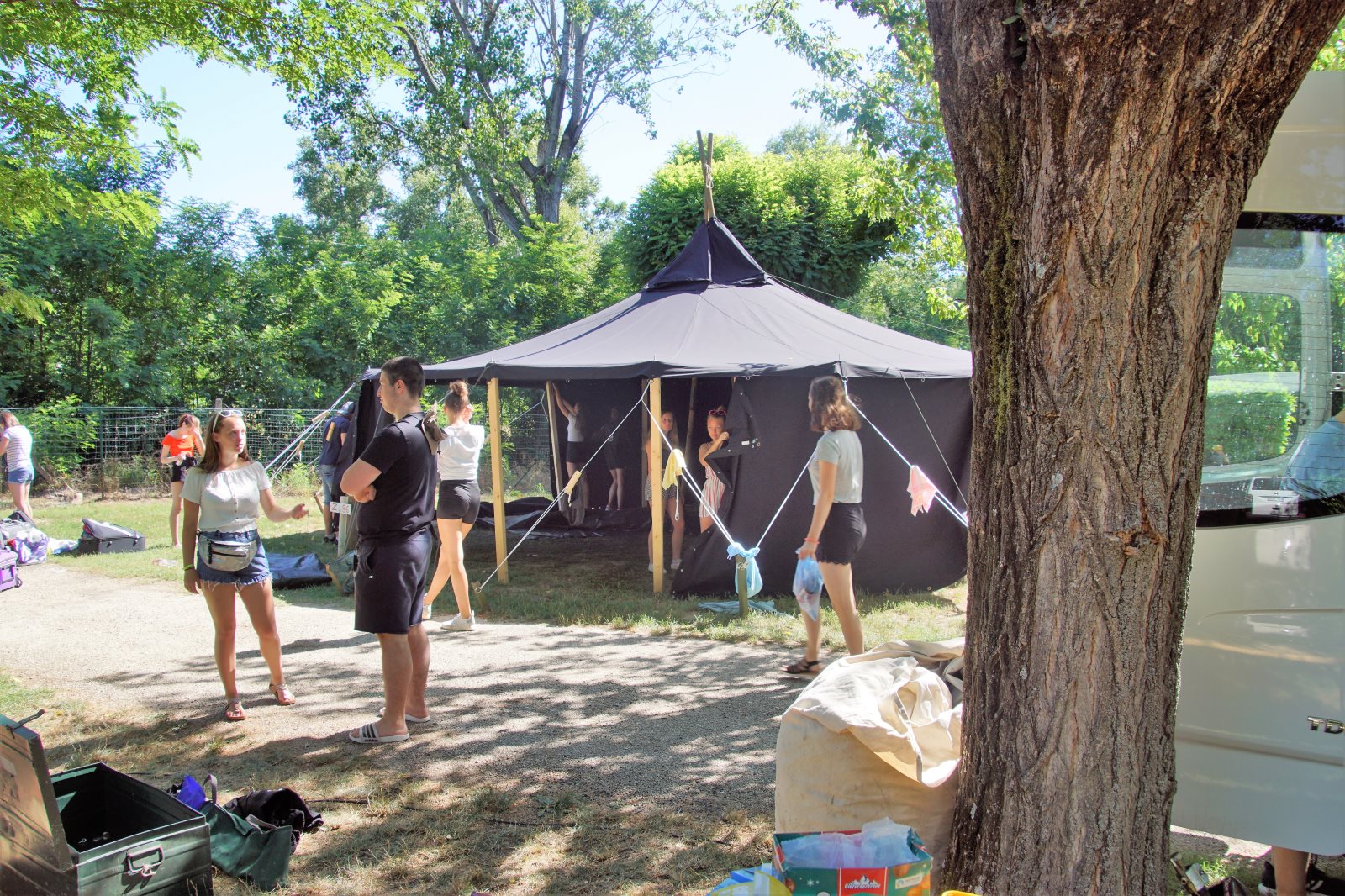 Jetzt ist sind die Zikaden ganz leise und man hört wieder, was in den Zelten erzählt wird.