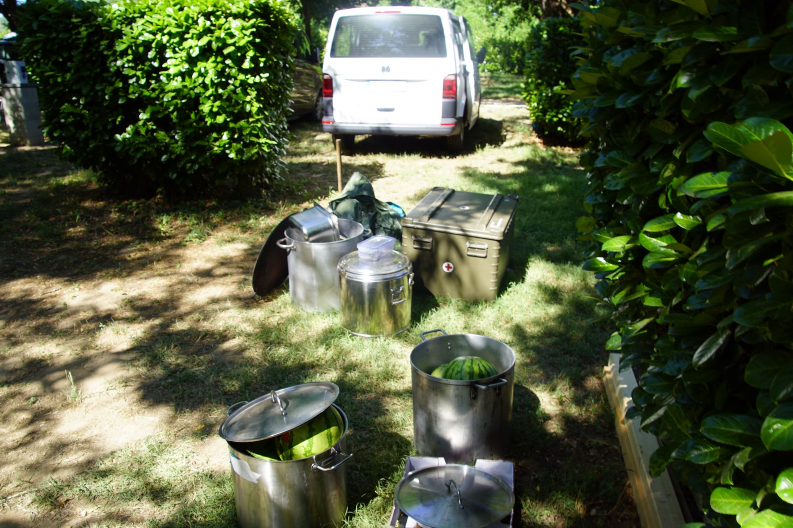 Am letzten Abend in Avignon gab es nun den unschlagbaren Klassiker: Nudeln und Tomatensauce. Sogar unsere Nachbarzeltler haben wir mitversorgt. (Damit haben sie keine Möglichkeit, sie über unsere Laustärke zu beklagen 🙂 ).