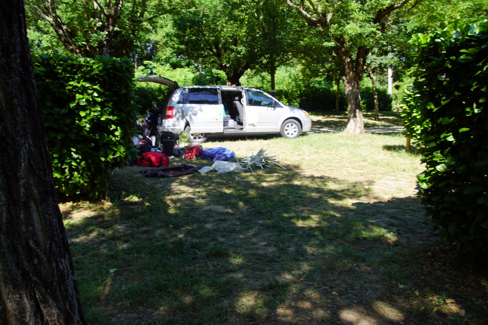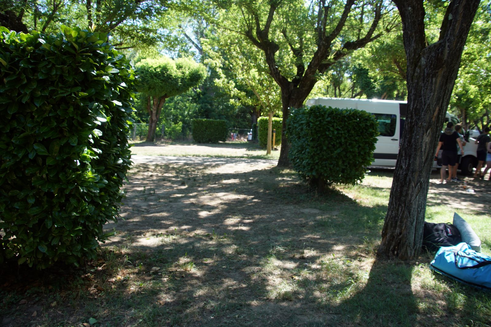 Unsere Jungs haben heute draußen geschlafen. Die Mädchen zum Teil auch. Wir haben uns an die französischen Gesetze gehalten. Das heißt die Mädchen haben hinter ihrem Zeot geschlafen und die Jungs bei uns. Ehrlich gesagt schlafen Frank und ich schon die ganzen Tage draußen. Wenn es nachts nicht abkühlt, möchte man nicht im Auto oder im Zelt schlafen. Zum Glück sind hier ständig Geräusche von Zügen, Autos und ein paar verrückten Autofahrern, die nebenan das „Driften“ üben, so dass die lauten Schnarcher gar nicht so auffallen. Die Zikaden könnten ja sonst noch in uns eine unliebsame Konkurrenz entdecken, die fast an die selbe Lautstärke wie sie kommt.