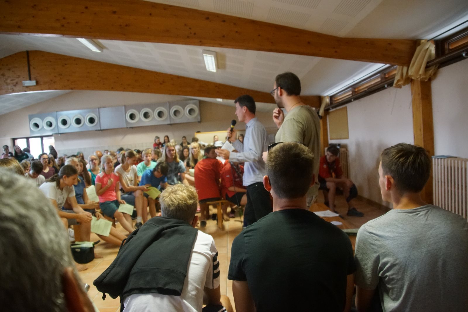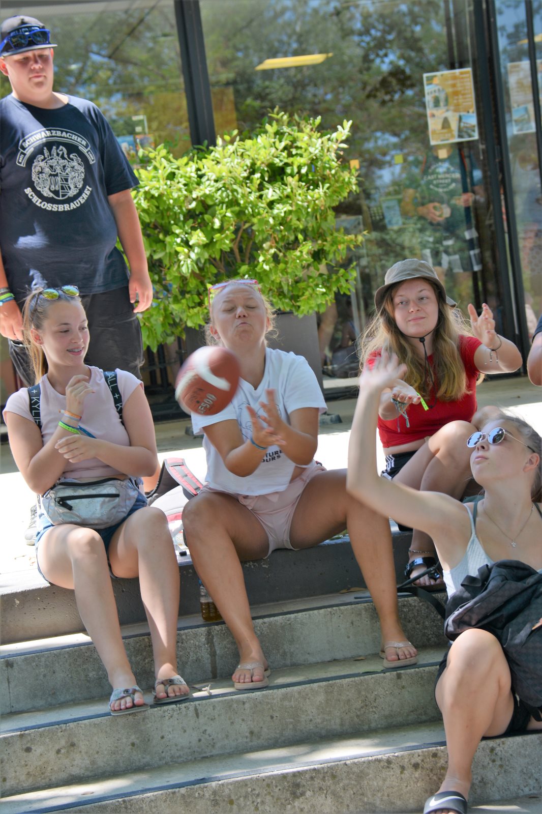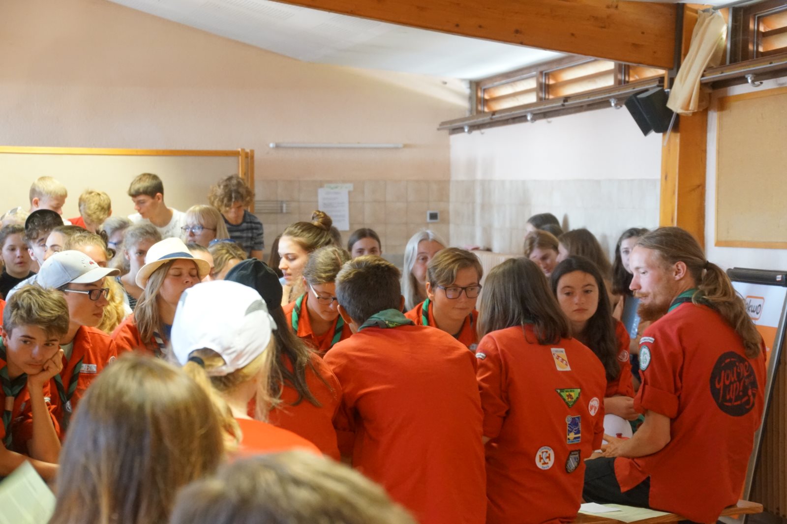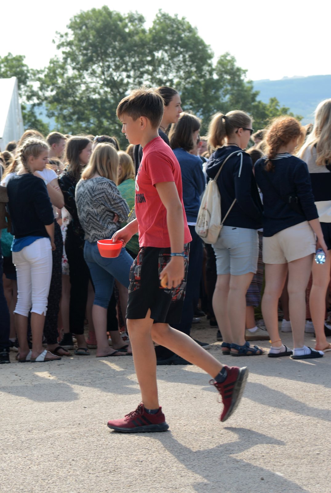 Einige unserer Leute sind gleich auf andere zugegangen und hatten gar keine Probleme, sich daran zu gewöhnen, dass wir auf einmal unter 3000 jungen Leute sind. In jeder Ecke wird eine andere Sprache gesprochen und beim Anstehen beim Essen wurde es schon eng. Einige mussten sich daran gewöhnen, dass dann auch noch laut gesungen wurde und der eine oder andere Spaß gemacht wurde.