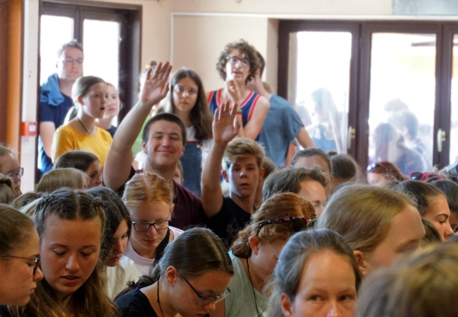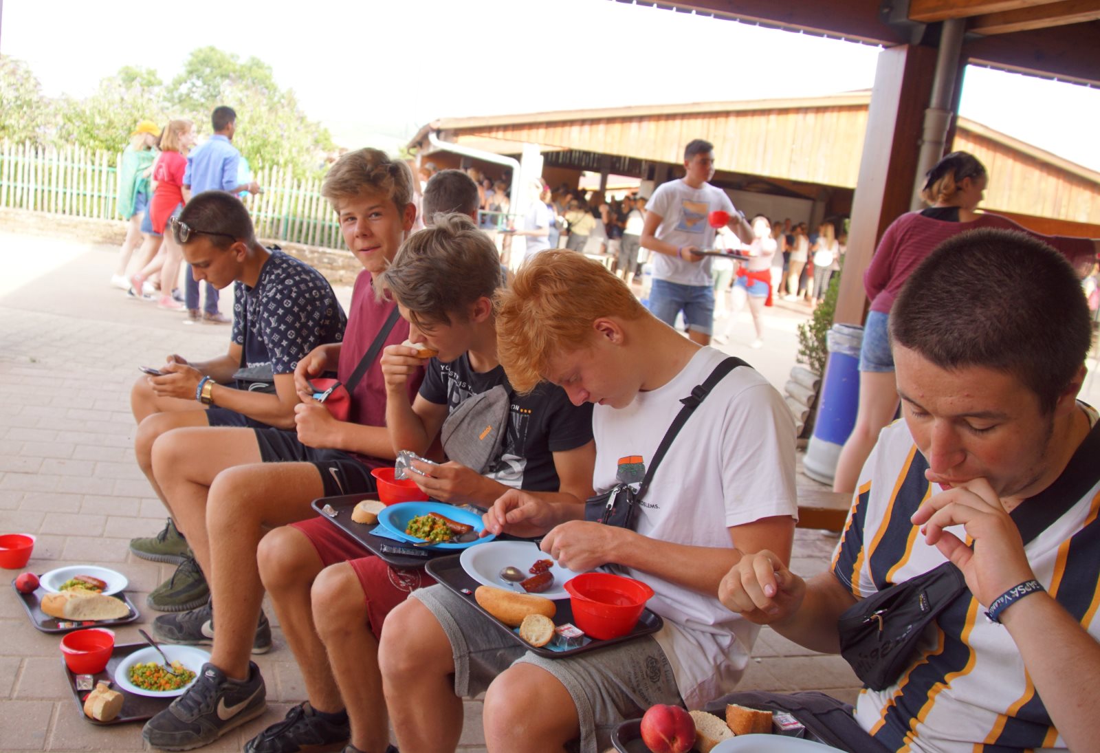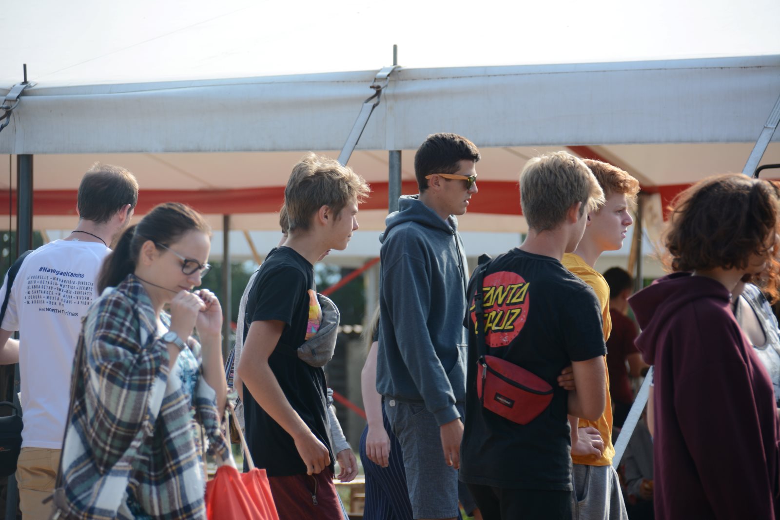 Einige unserer Leute sind gleich auf andere zugegangen und hatten gar keine Probleme, sich daran zu gewöhnen, dass wir auf einmal unter 3000 jungen Leute sind. In jeder Ecke wird eine andere Sprache gesprochen und beim Anstehen beim Essen wurde es schon eng. Einige mussten sich daran gewöhnen, dass dann auch noch laut gesungen wurde und der eine oder andere Spaß gemacht wurde.