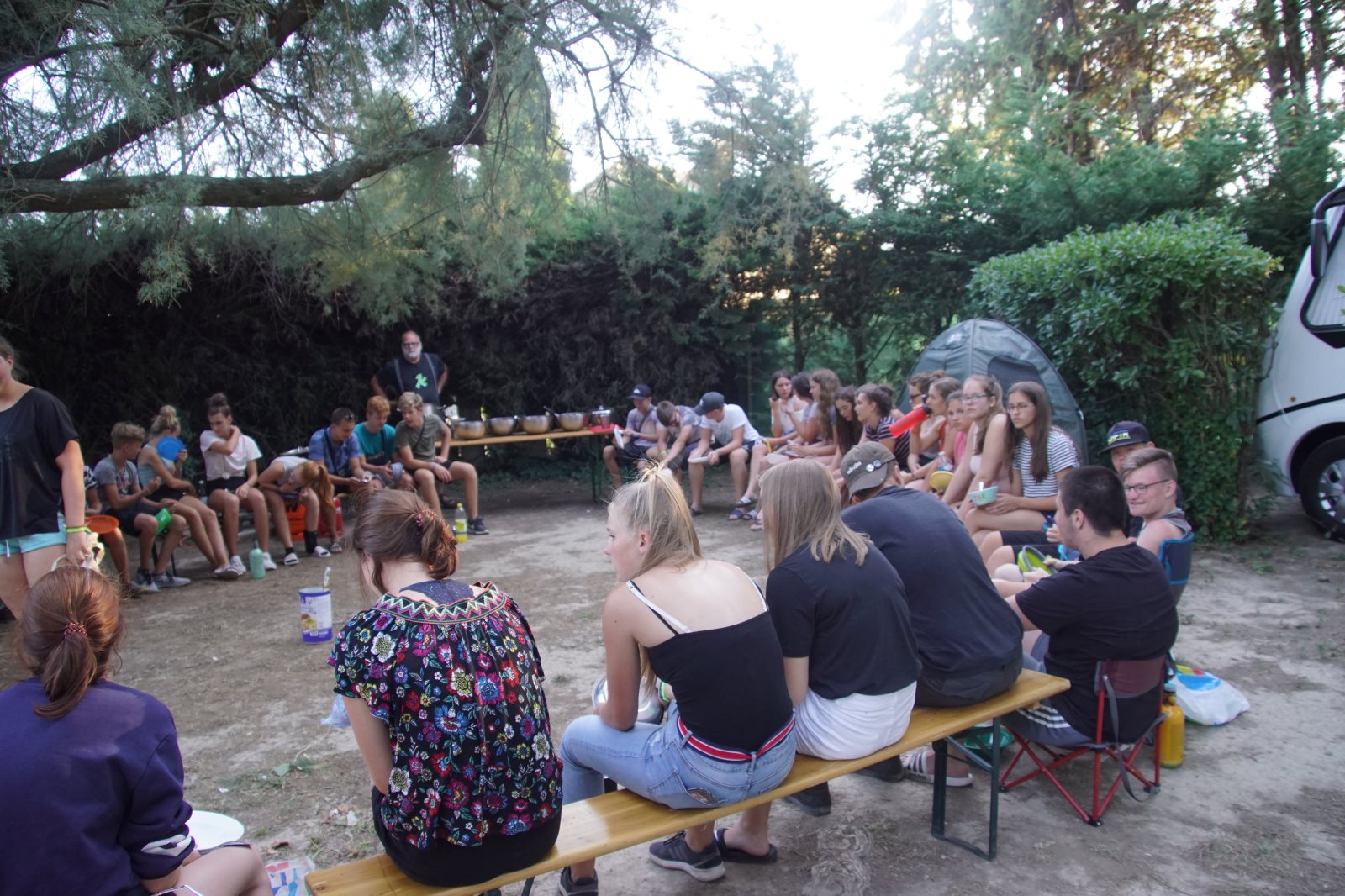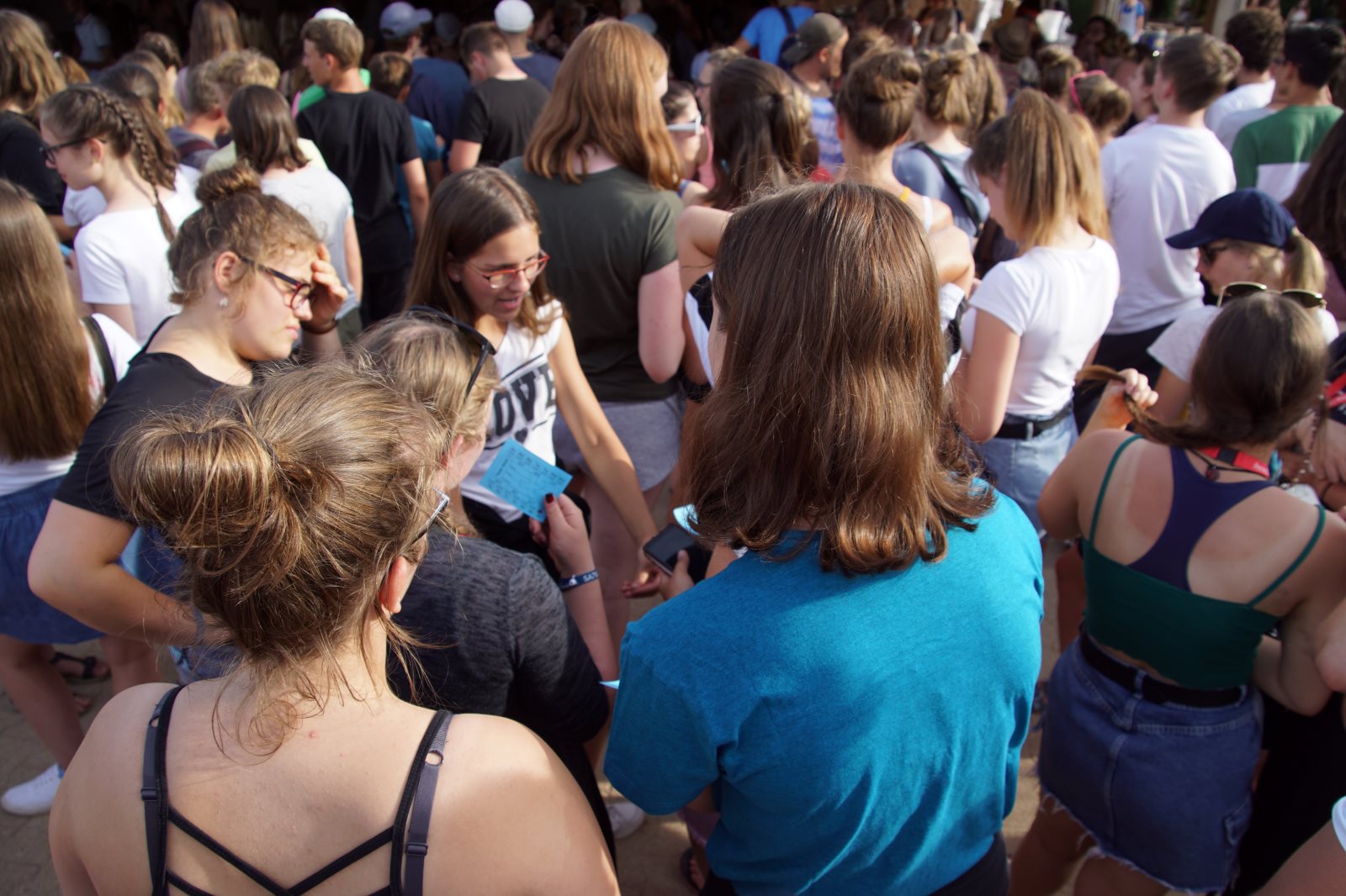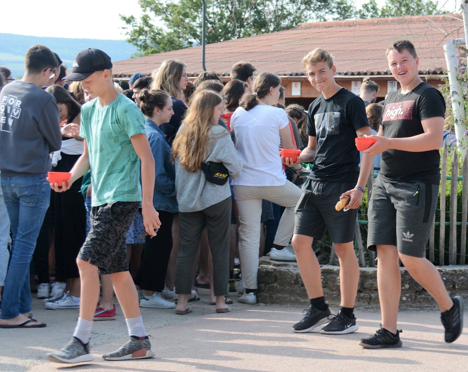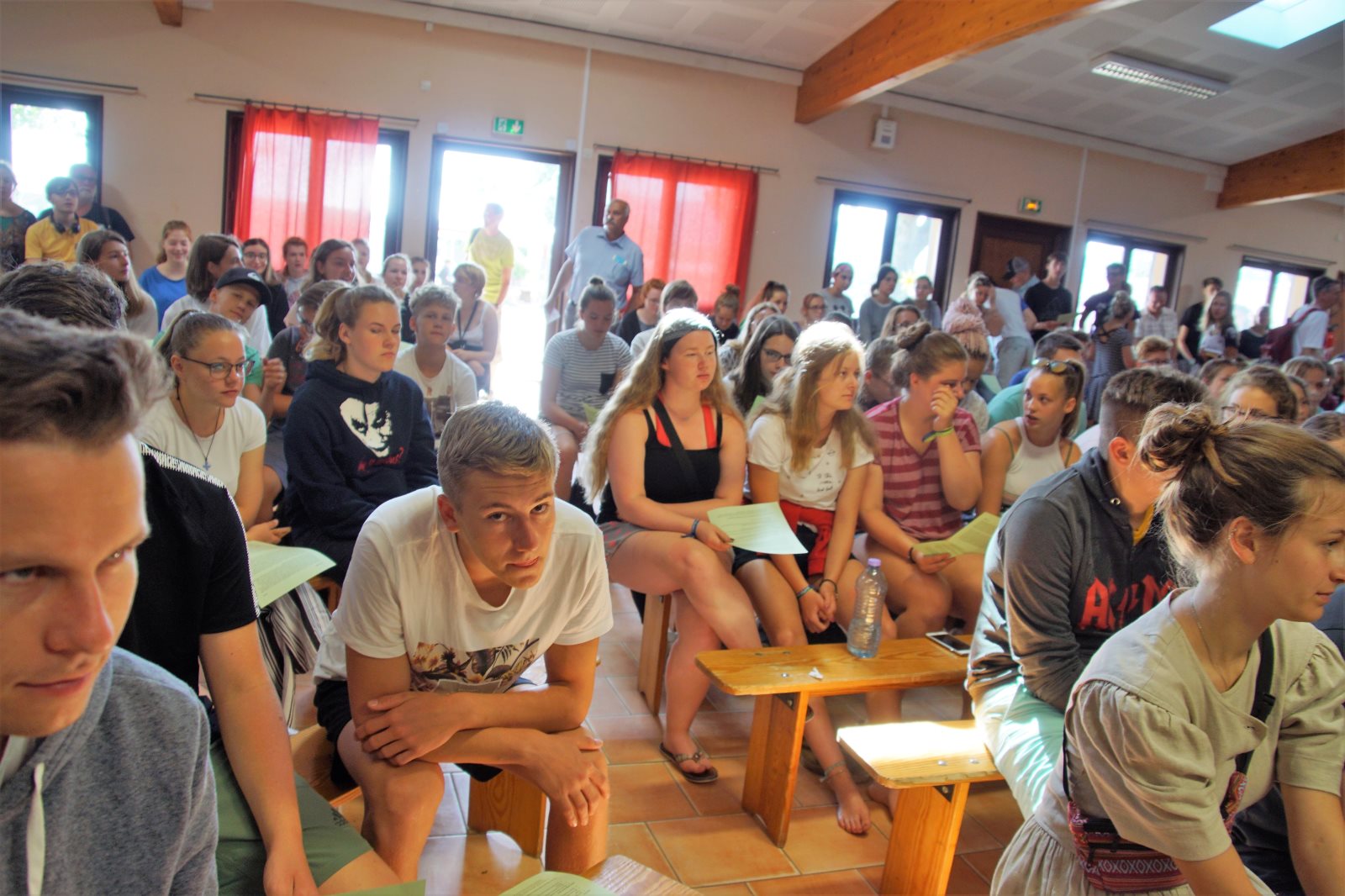 Einige unserer Leute sind gleich auf andere zugegangen und hatten gar keine Probleme, sich daran zu gewöhnen, dass wir auf einmal unter 3000 jungen Leute sind. In jeder Ecke wird eine andere Sprache gesprochen und beim Anstehen beim Essen wurde es schon eng. Einige mussten sich daran gewöhnen, dass dann auch noch laut gesungen wurde und der eine oder andere Spaß gemacht wurde.