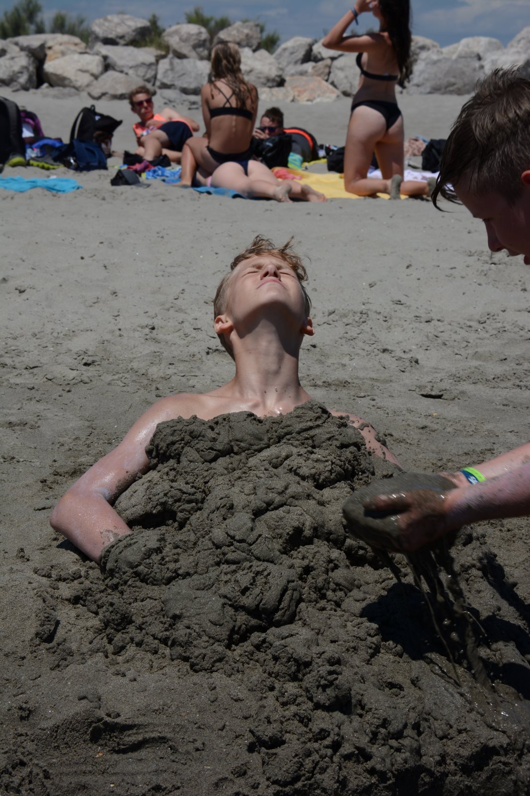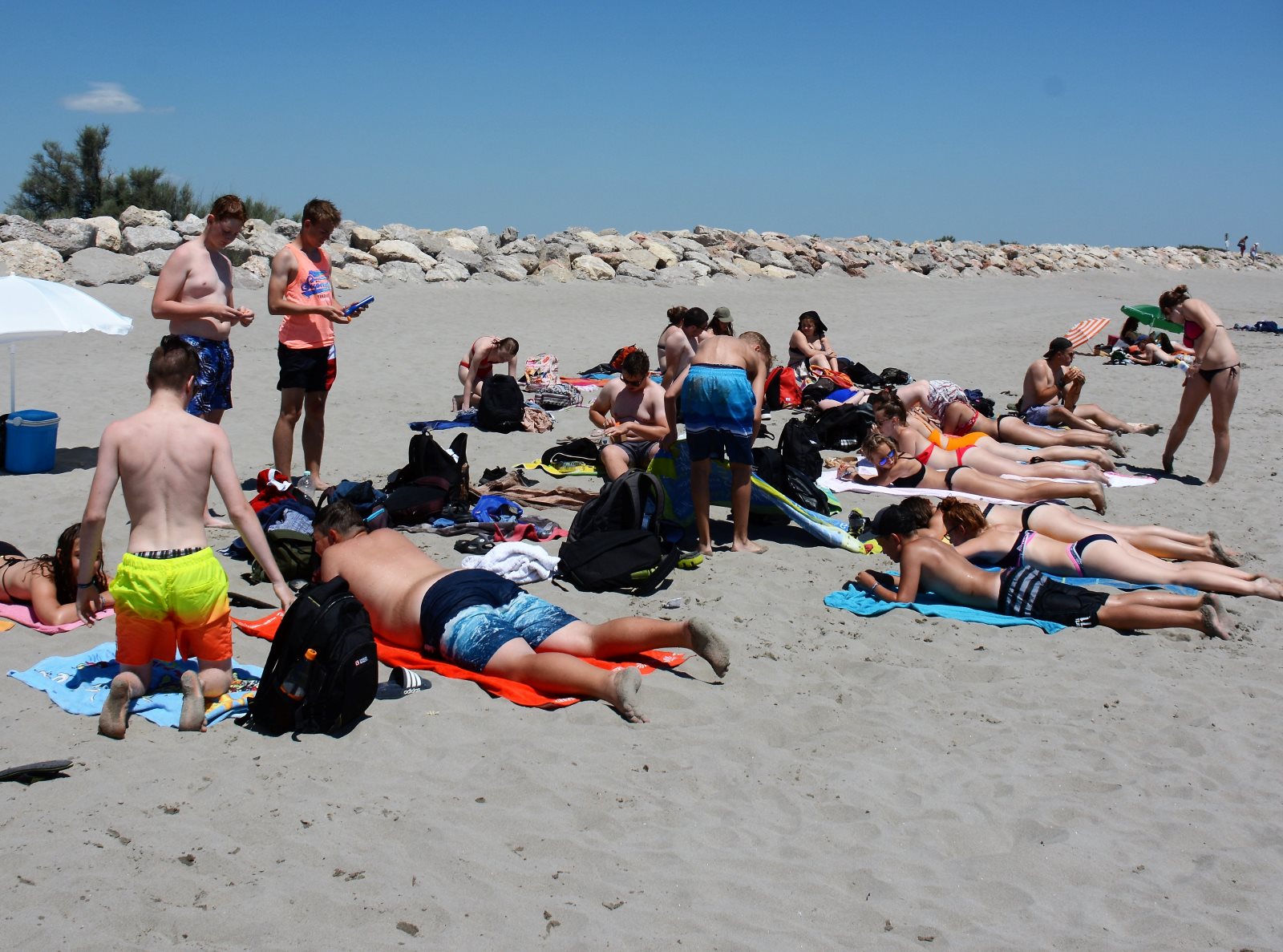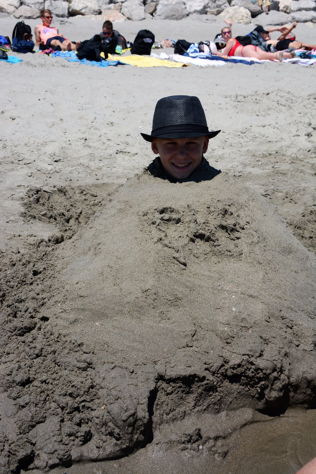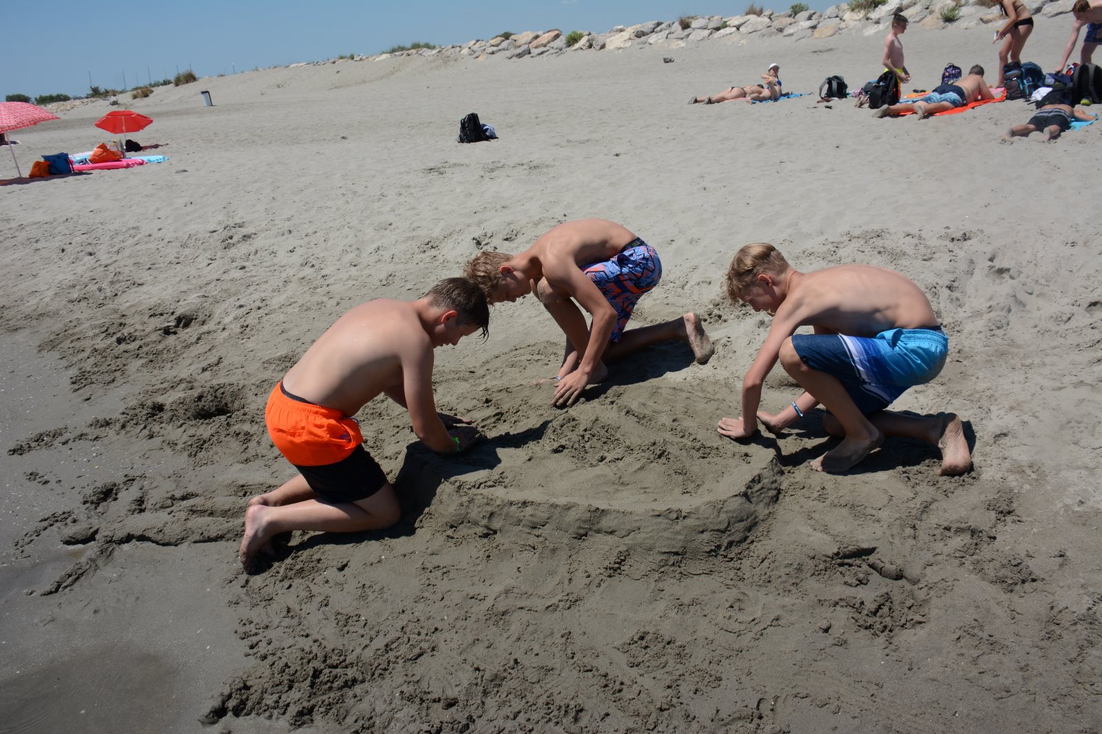 Unsere Jungs haben heute draußen geschlafen. Die Mädchen zum Teil auch. Wir haben uns an die französischen Gesetze gehalten. Das heißt die Mädchen haben hinter ihrem Zeot geschlafen und die Jungs bei uns. Ehrlich gesagt schlafen Frank und ich schon die ganzen Tage draußen. Wenn es nachts nicht abkühlt, möchte man nicht im Auto oder im Zelt schlafen. Zum Glück sind hier ständig Geräusche von Zügen, Autos und ein paar verrückten Autofahrern, die nebenan das „Driften“ üben, so dass die lauten Schnarcher gar nicht so auffallen. Die Zikaden könnten ja sonst noch in uns eine unliebsame Konkurrenz entdecken, die fast an die selbe Lautstärke wie sie kommt.