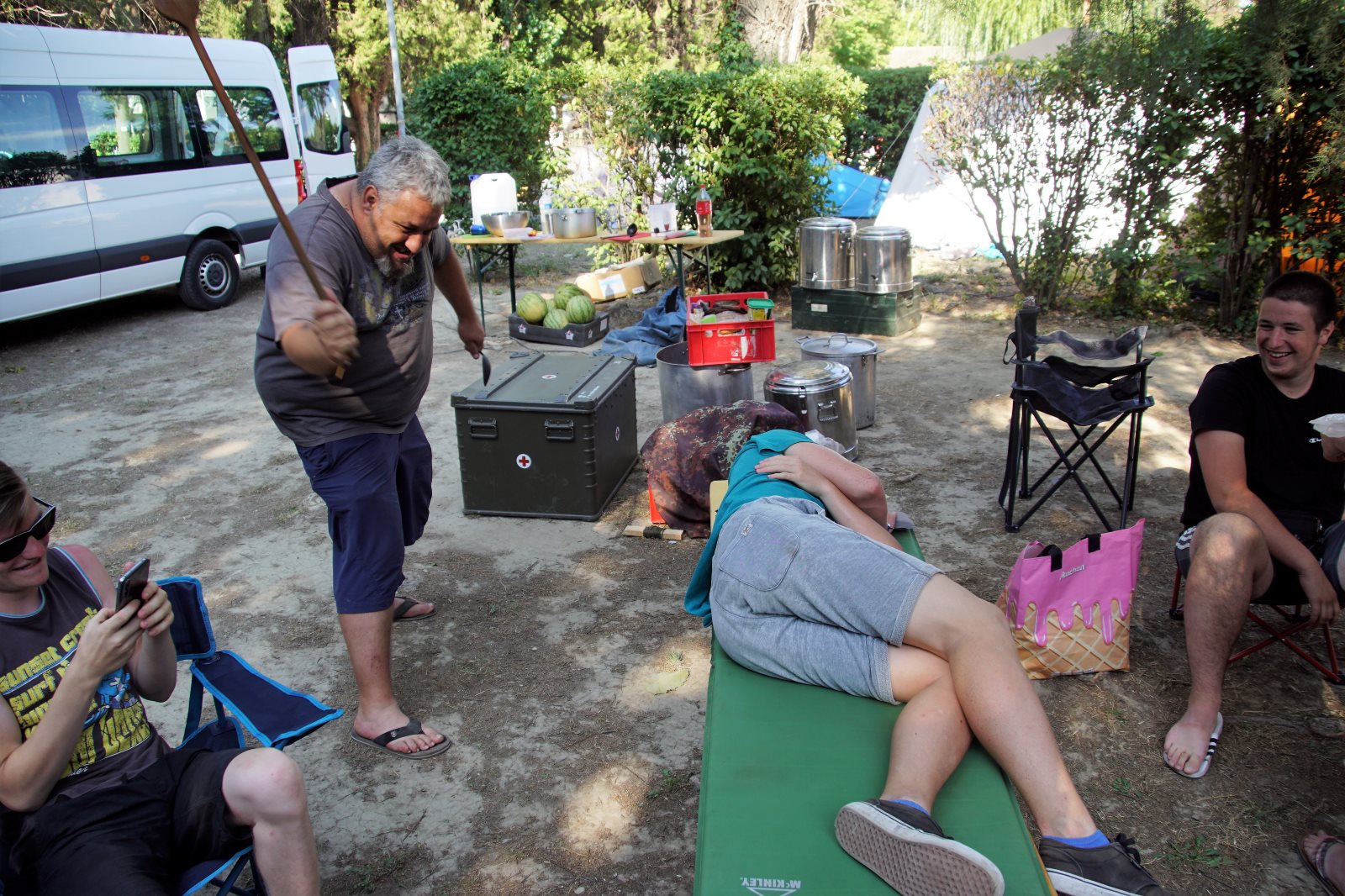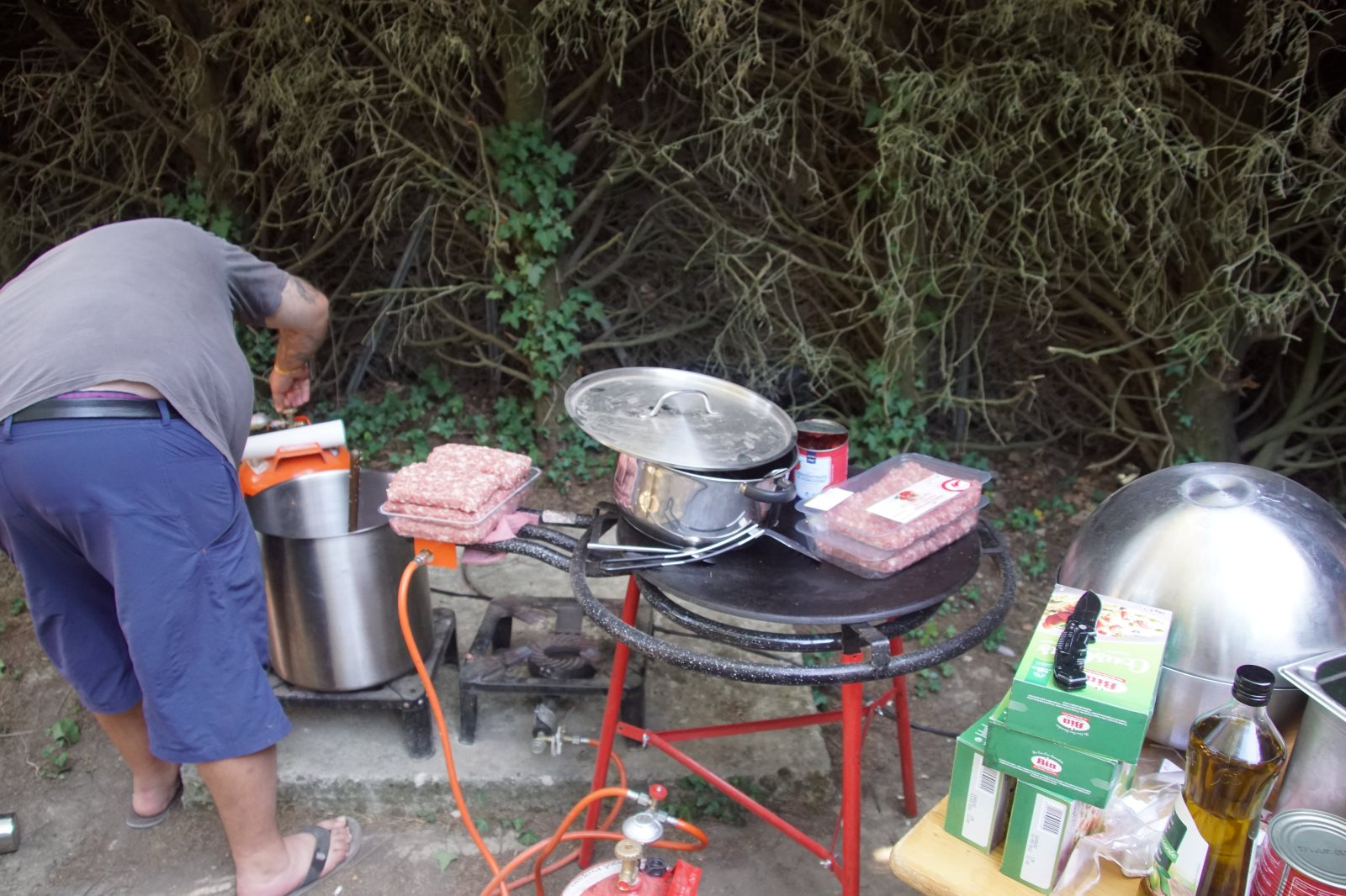 Am letzten Abend in Avignon gab es nun den unschlagbaren Klassiker: Nudeln und Tomatensauce. Sogar unsere Nachbarzeltler haben wir mitversorgt. (Damit haben sie keine Möglichkeit, sie über unsere Laustärke zu beklagen 🙂 ).