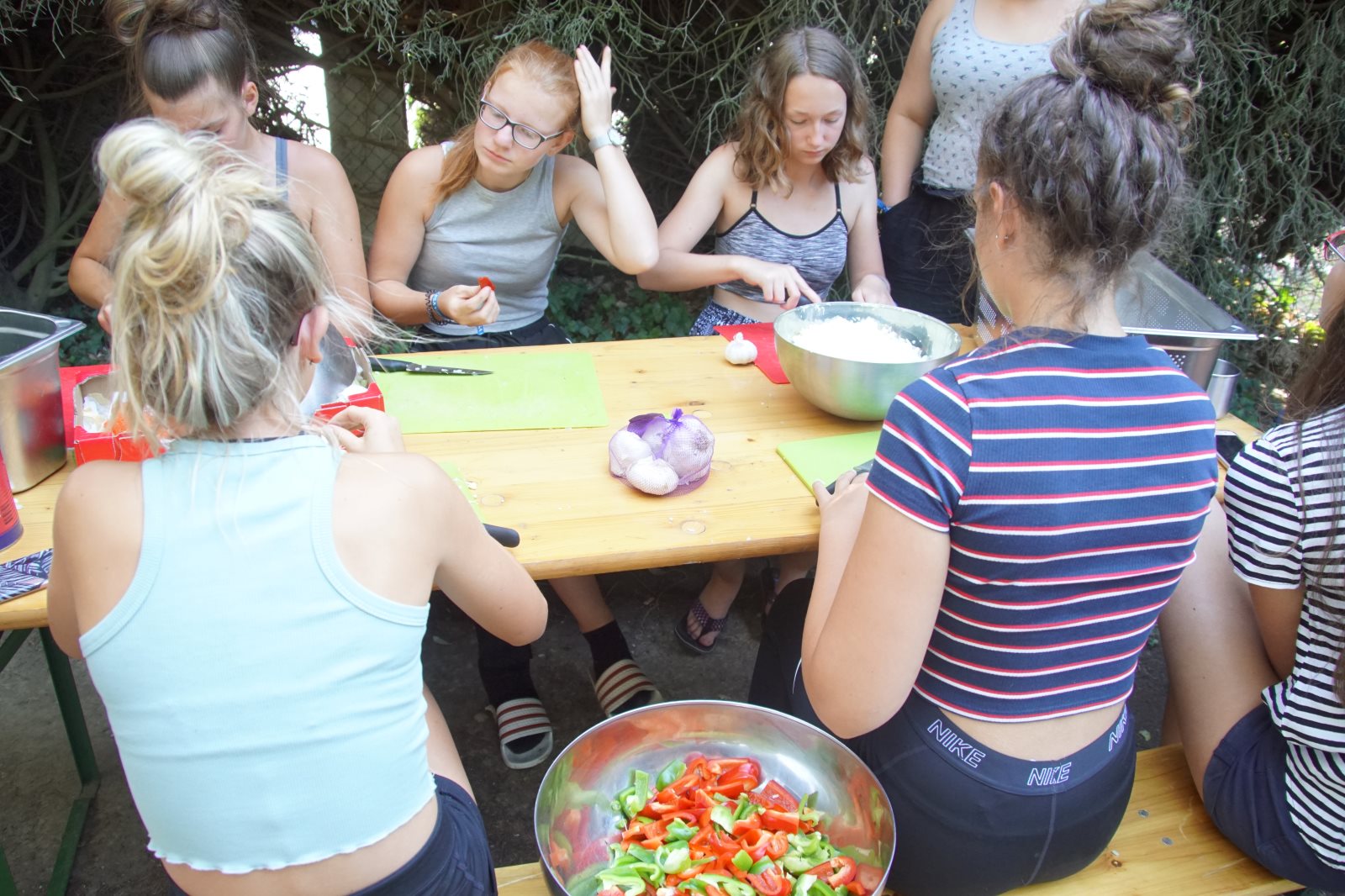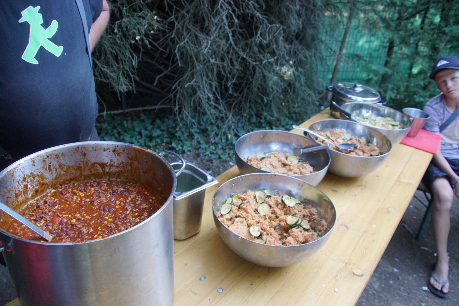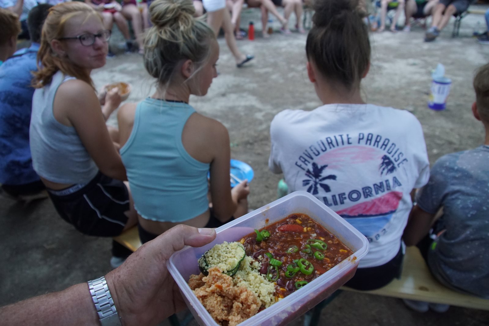Am Abend gab es Chili con carne mit Couscous. Es kam extrem gut an, nachdem eine Busbesatzung Unmengen an Knoblauch, Zwiebeln und Tomaten schnitten und verkocht hatte.