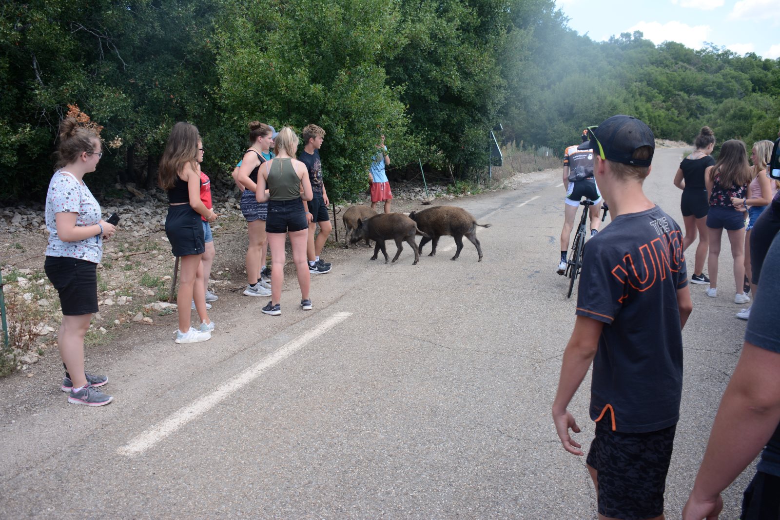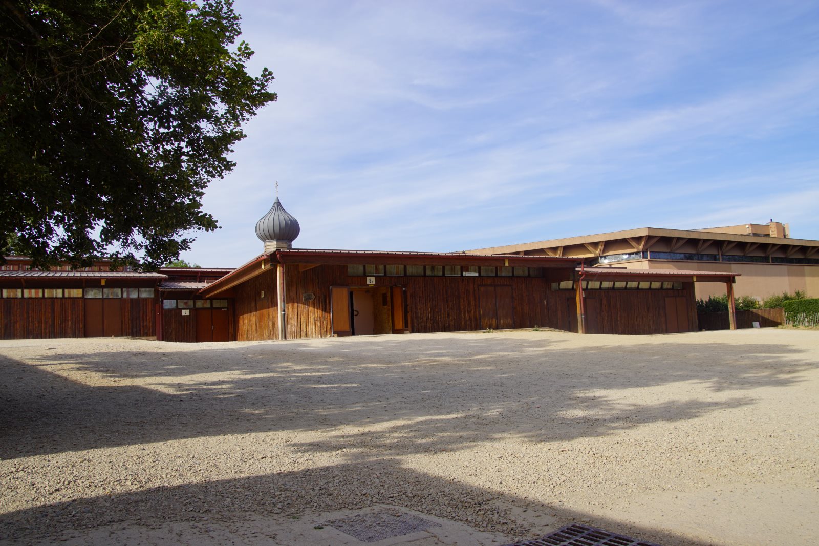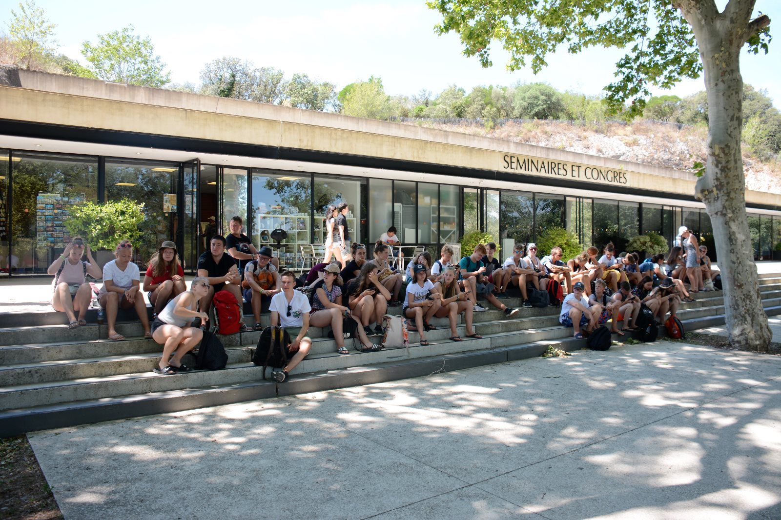 Die Fahrt war problemlos. Allerdings ist es hier nicht viel kühler als in Avignon und die Sonne bretzelt auf uns herunter.  Zum ersten Mal sind wir nicht in Zelten untergebracht, sondern in Zimmern. Sie sind sehr schlicht, aber erstaunlich kühl.