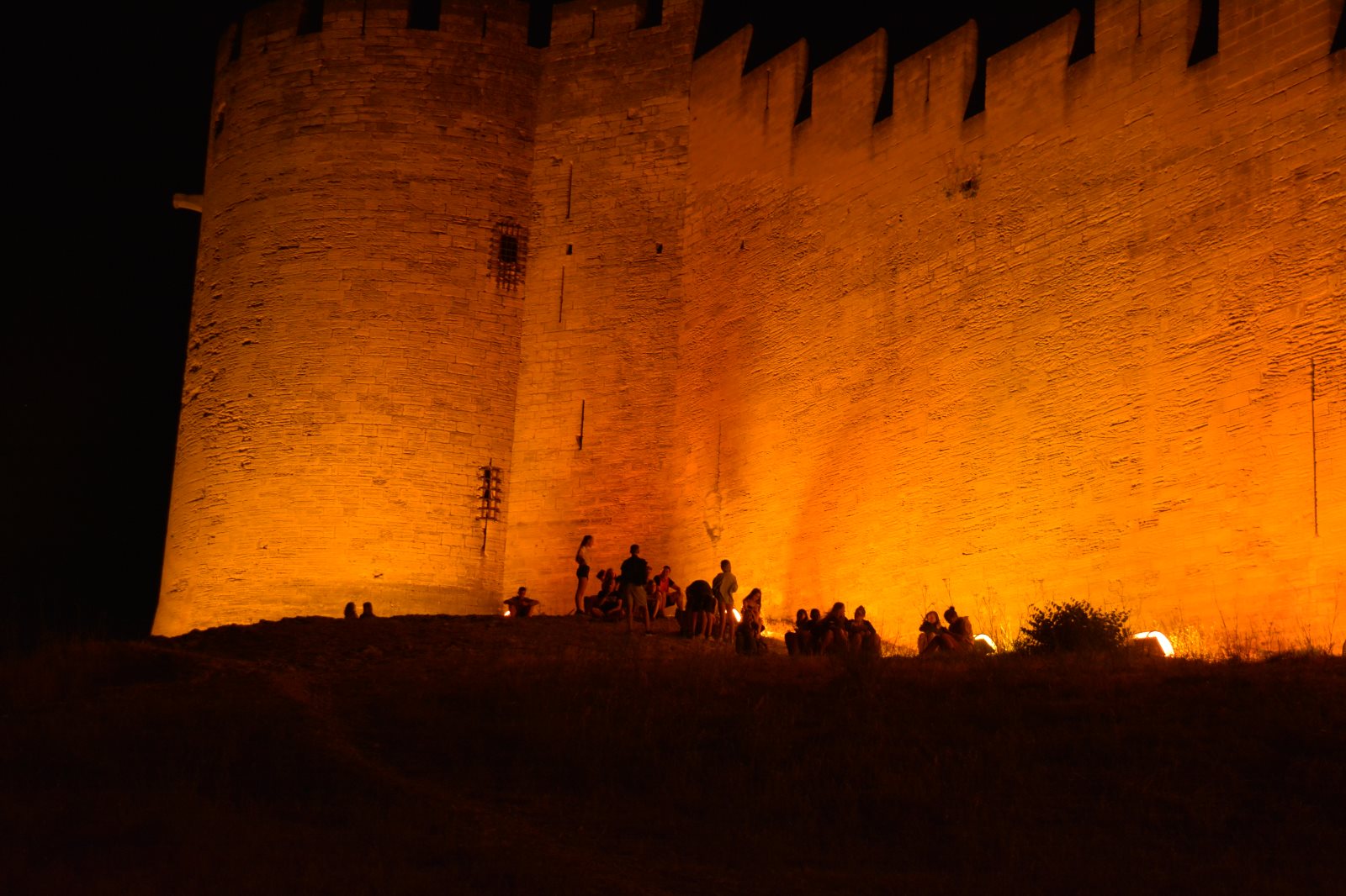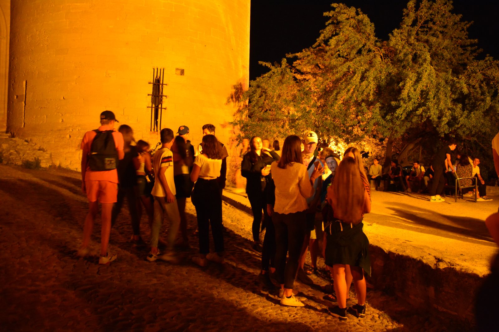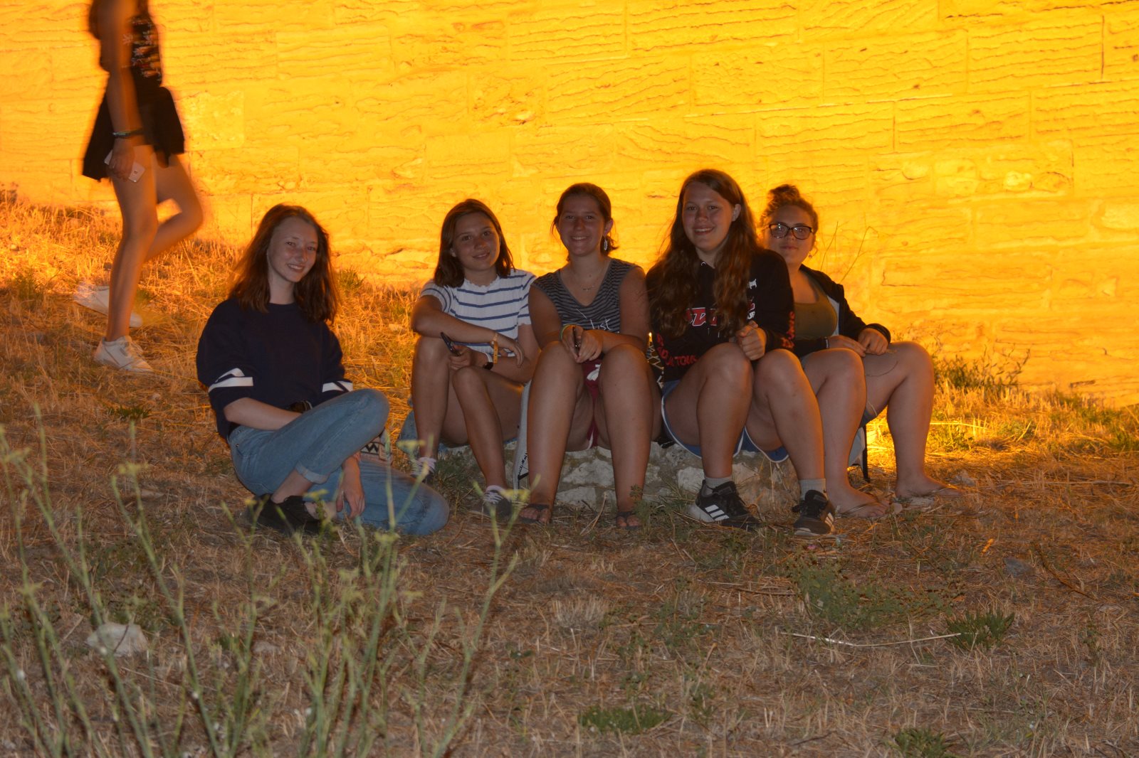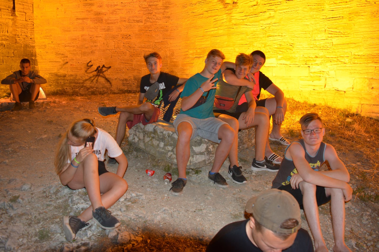 Mit Joni und Anton sind sie im Dunkeln auf die Burg gestiegen. Zur guten Laune trug schon einmal bei, das ein Mädchen vor einen Mast gelaufen war. Oben auf der Burg hatte man einen sehr schönen Blick auf Avignon. Nur das Feuerwerk fehlte. Wie wir jetzt wissen, musste es wegen Trockenheit und starkem Wind abgesagt werden.