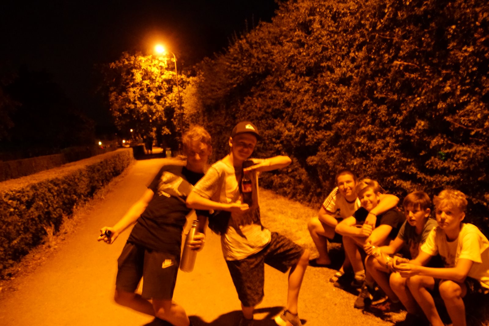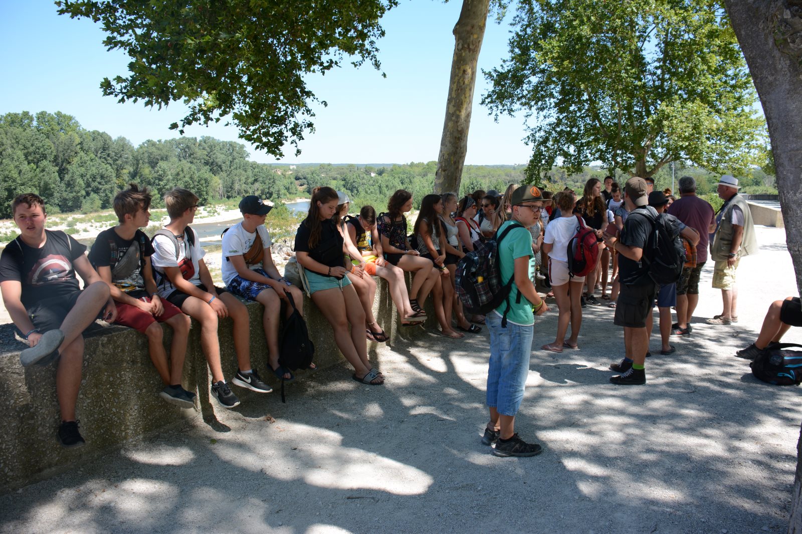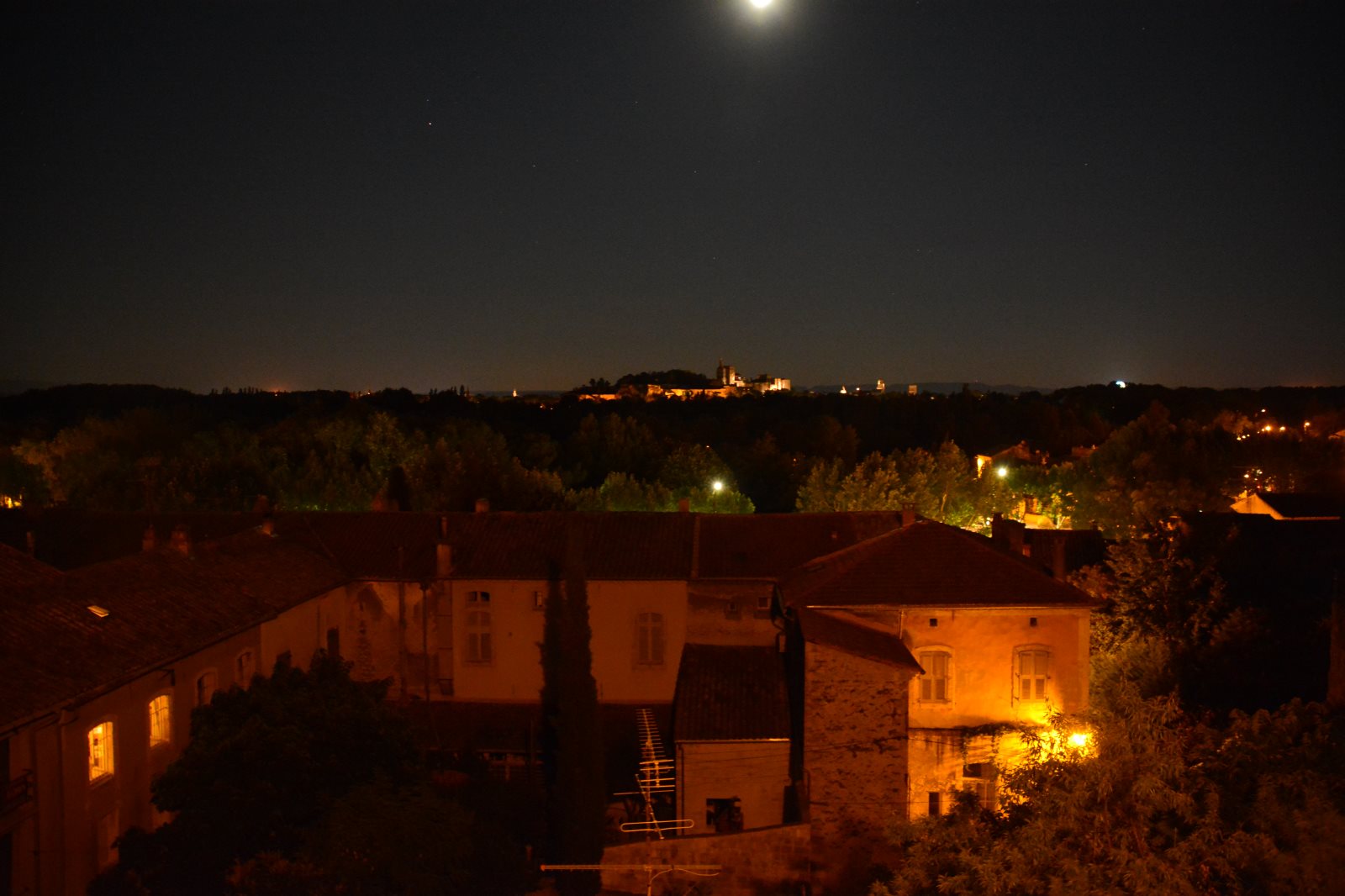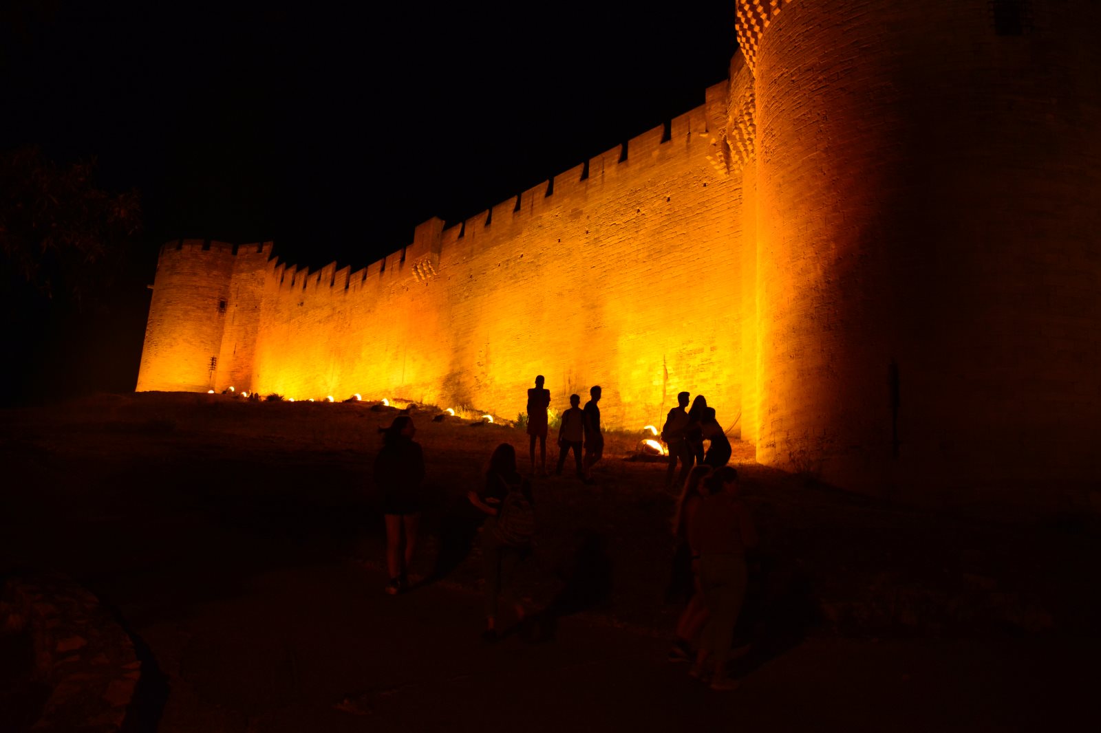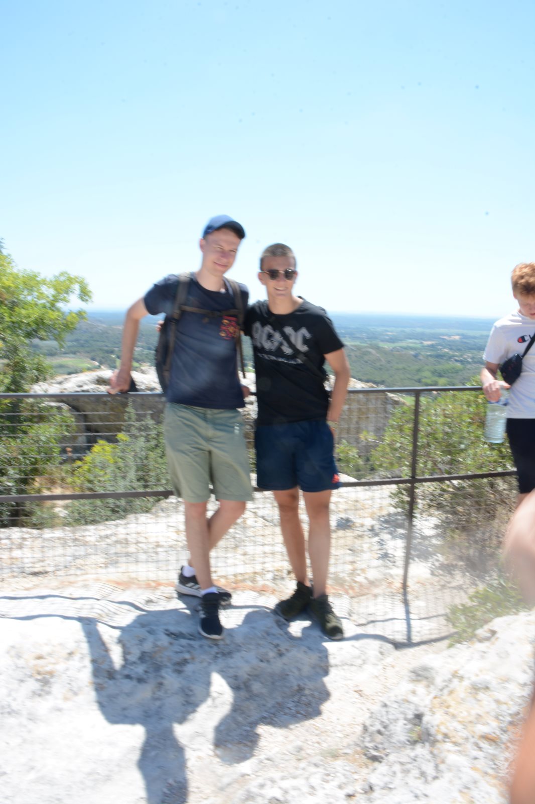 Mit Joni und Anton sind sie im Dunkeln auf die Burg gestiegen. Zur guten Laune trug schon einmal bei, das ein Mädchen vor einen Mast gelaufen war. Oben auf der Burg hatte man einen sehr schönen Blick auf Avignon. Nur das Feuerwerk fehlte. Wie wir jetzt wissen, musste es wegen Trockenheit und starkem Wind abgesagt werden.
