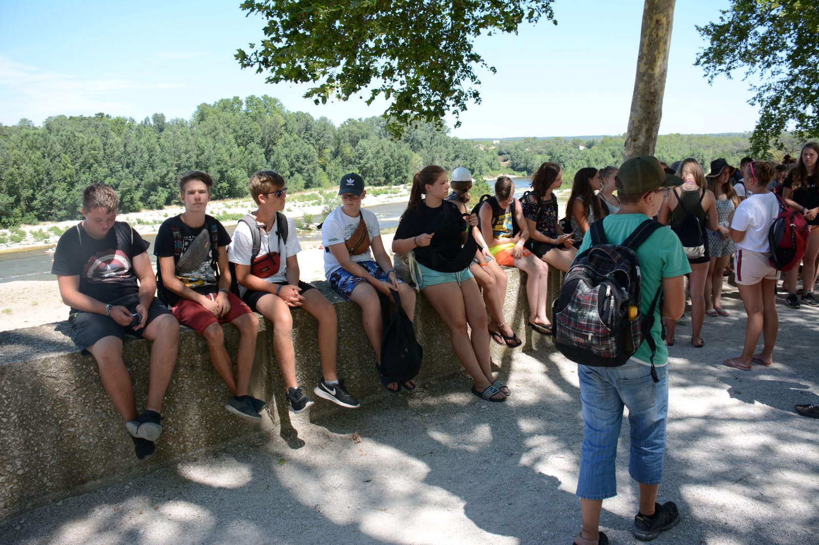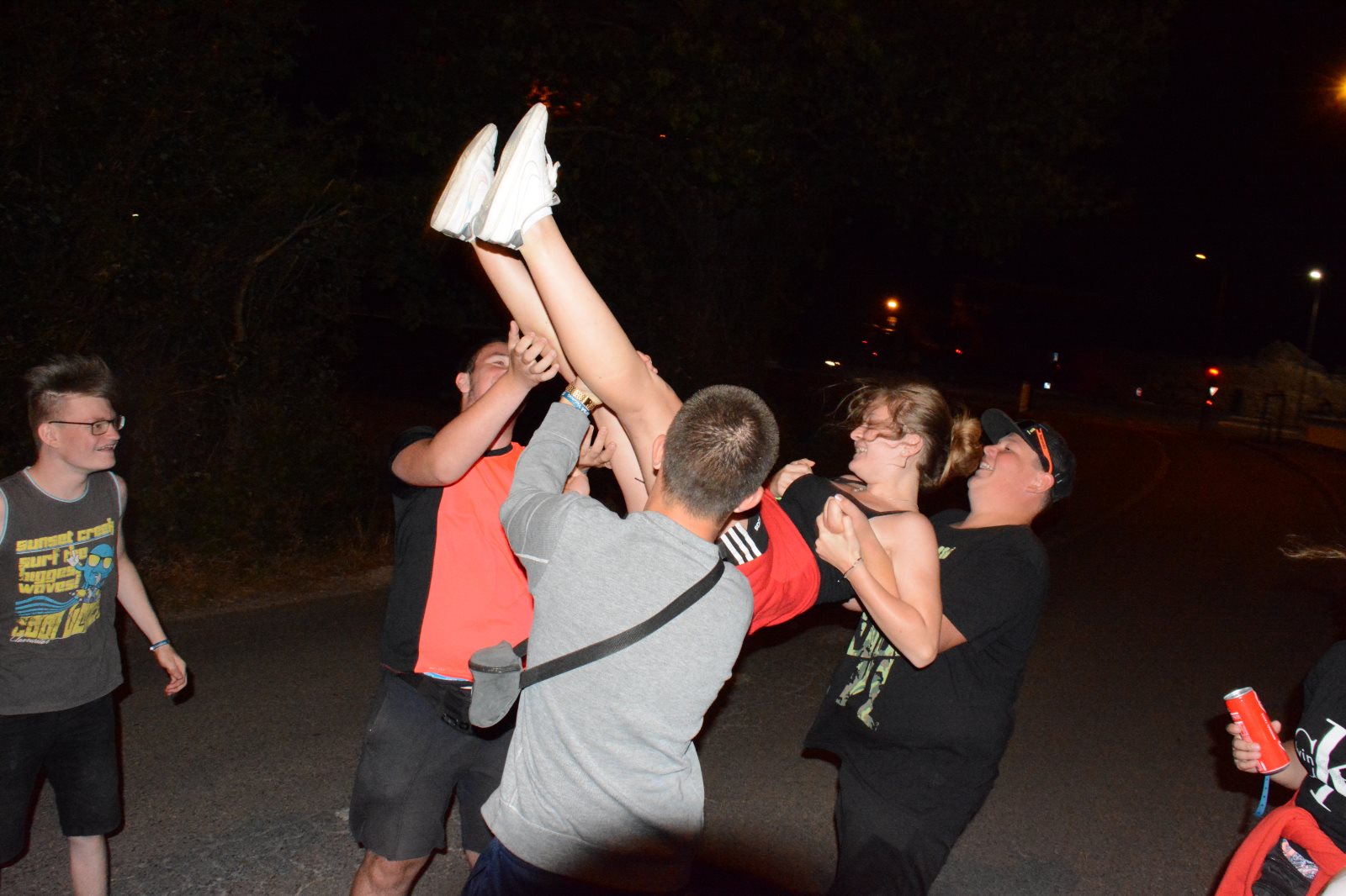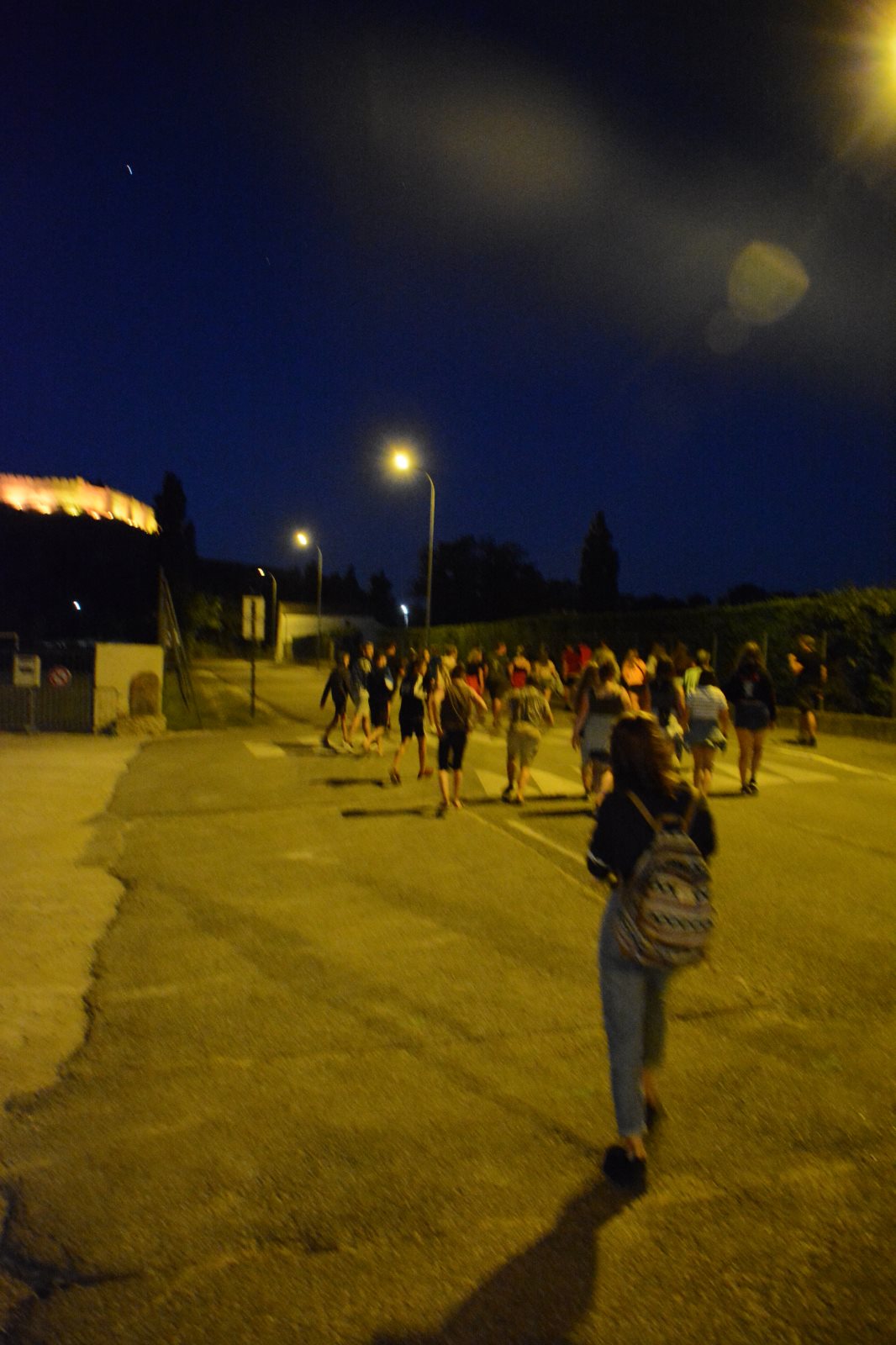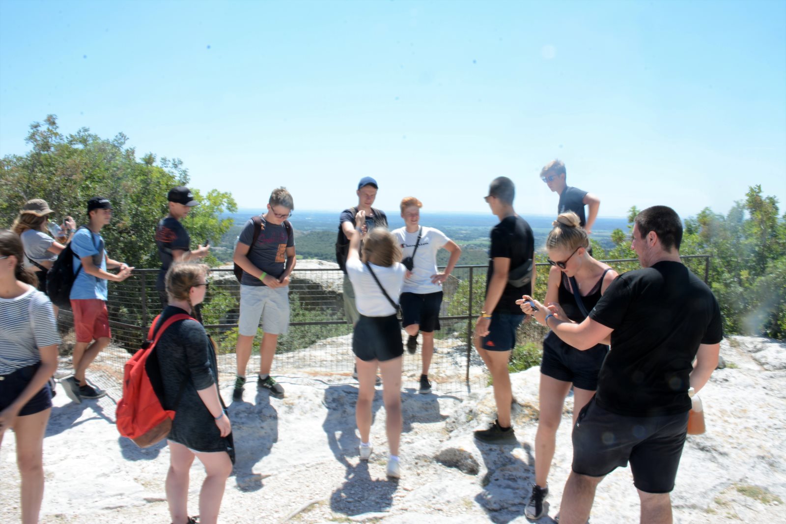 Mit Joni und Anton sind sie im Dunkeln auf die Burg gestiegen. Zur guten Laune trug schon einmal bei, das ein Mädchen vor einen Mast gelaufen war. Oben auf der Burg hatte man einen sehr schönen Blick auf Avignon. Nur das Feuerwerk fehlte. Wie wir jetzt wissen, musste es wegen Trockenheit und starkem Wind abgesagt werden.