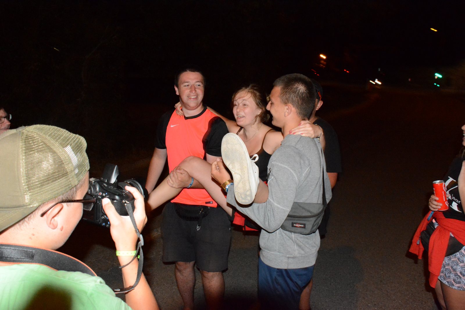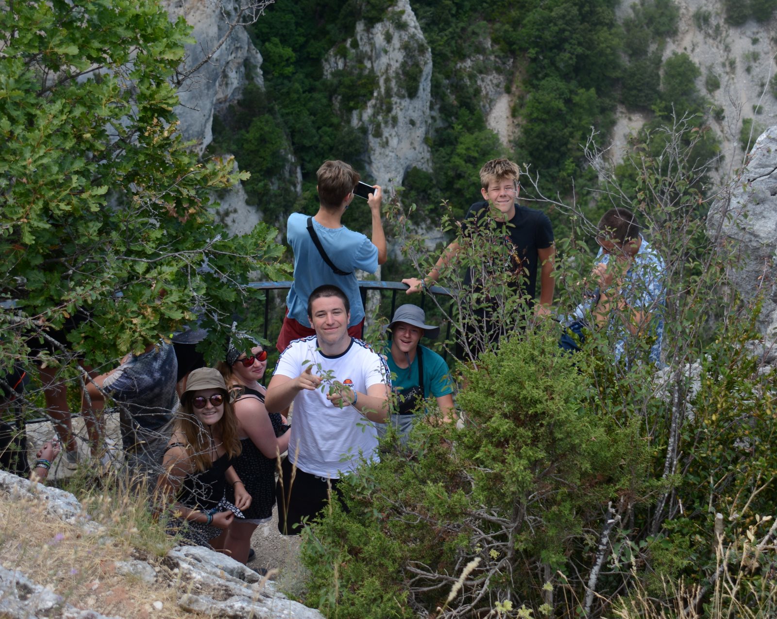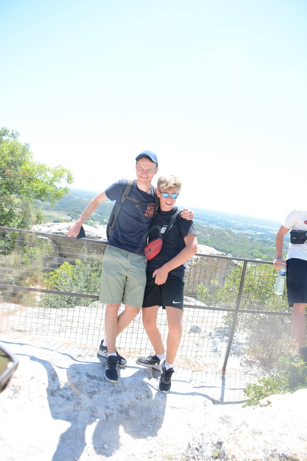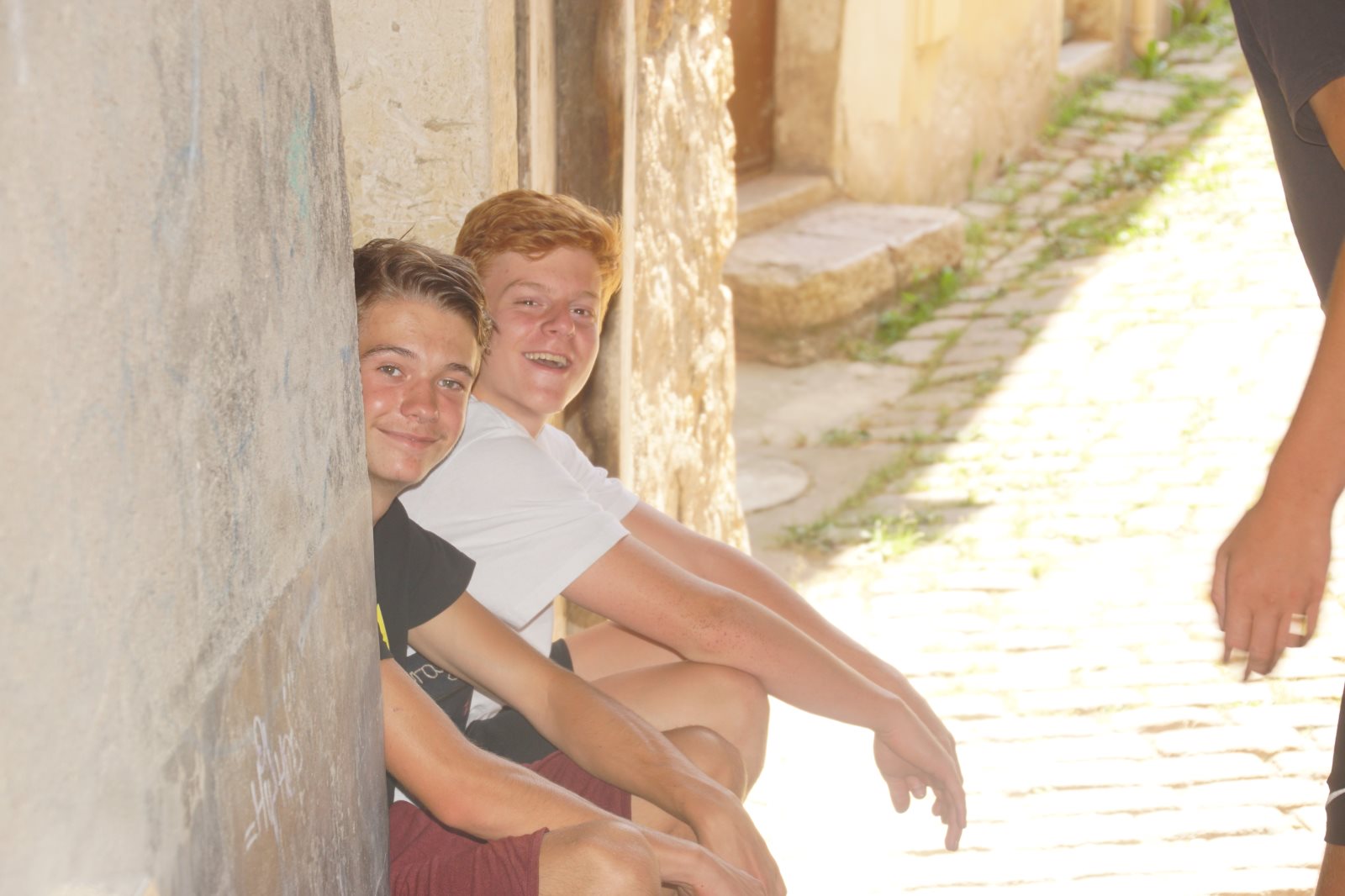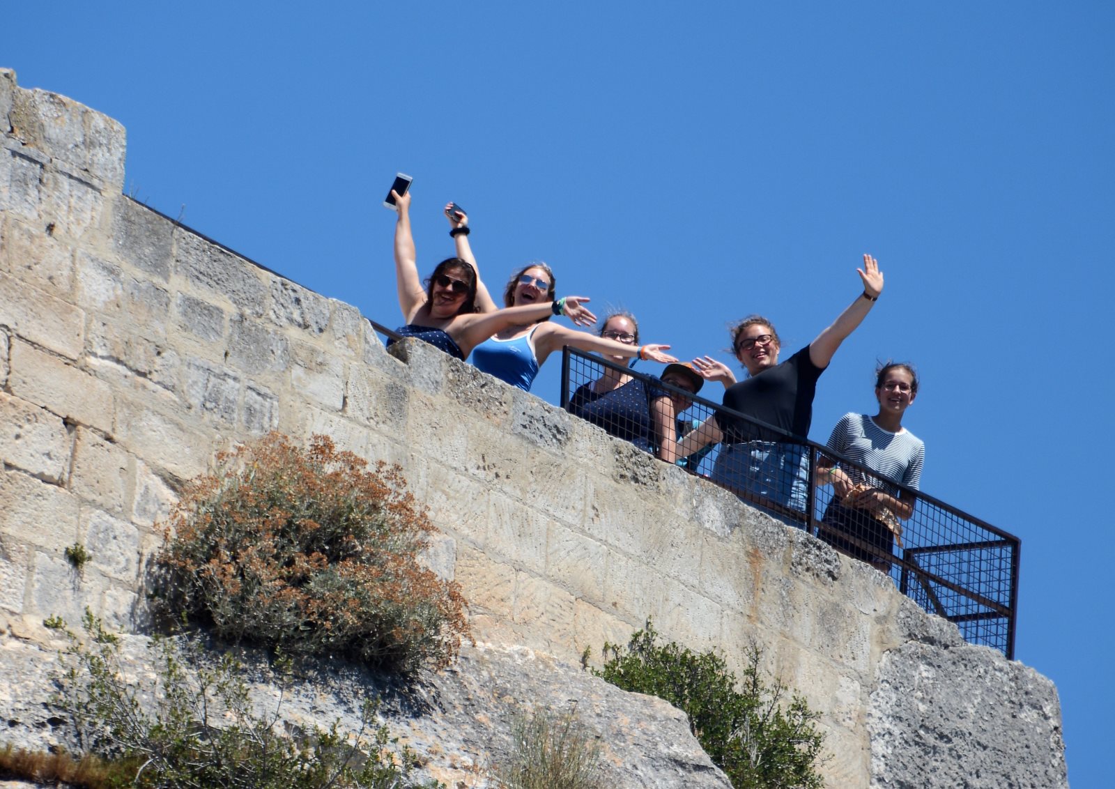 Mit Joni und Anton sind sie im Dunkeln auf die Burg gestiegen. Zur guten Laune trug schon einmal bei, das ein Mädchen vor einen Mast gelaufen war. Oben auf der Burg hatte man einen sehr schönen Blick auf Avignon. Nur das Feuerwerk fehlte. Wie wir jetzt wissen, musste es wegen Trockenheit und starkem Wind abgesagt werden.
