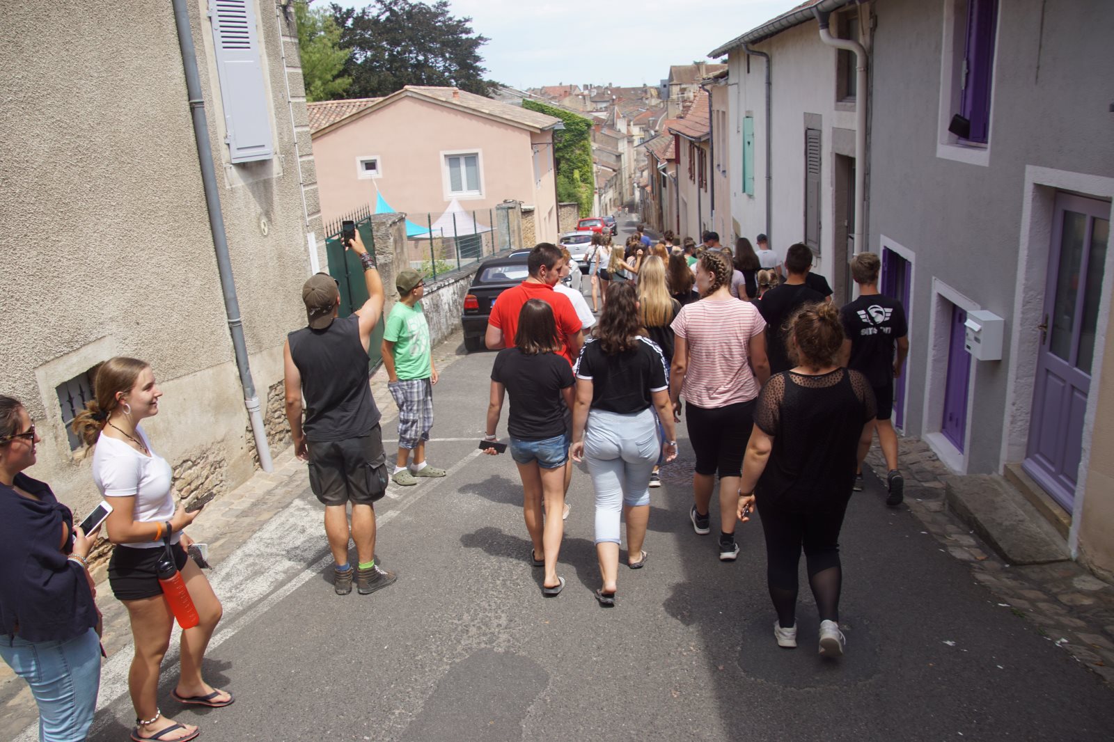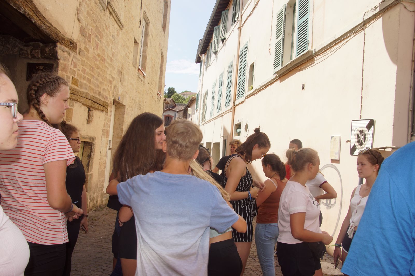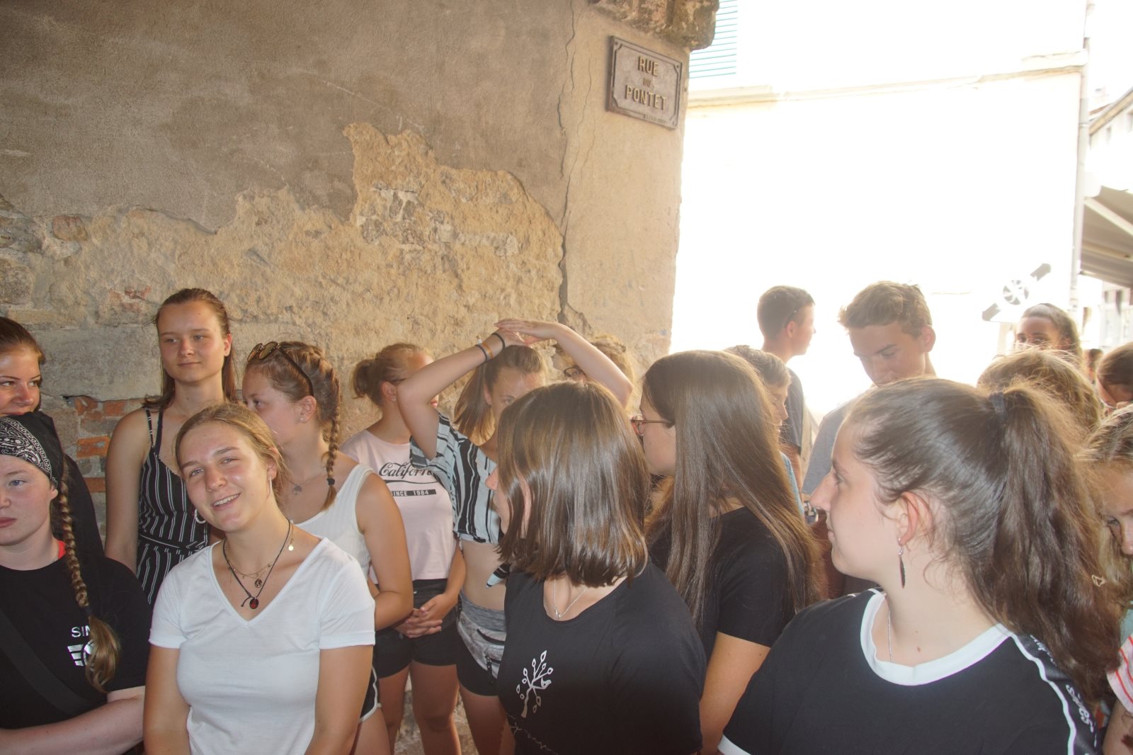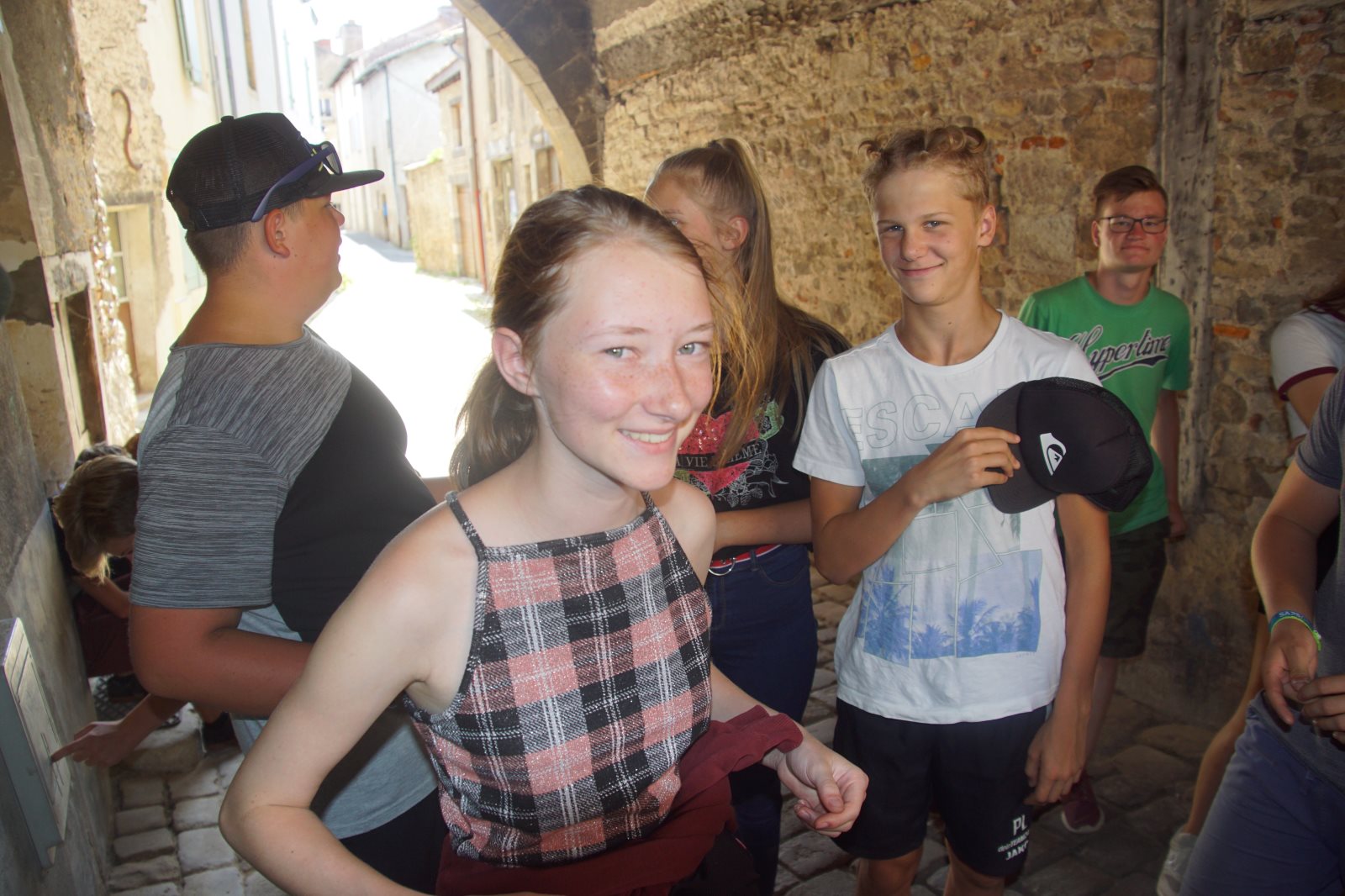 Von oben war nicht zu übersehen, dass im Ort unter der Burg (Villeneuf) eine Band spielte und kräftig getanzt wurde. Nachdem eine angeheiterte Frau dort alle einzeln begrüßt hatte mit „Isch liebe Disch“, ist das Eis schnell gebrochen. Die meisten von uns haben mitgetanzt. Die Titel waren zunächst französisch, dann gab es aber auch bekannte englische Rockmusik zu hören.