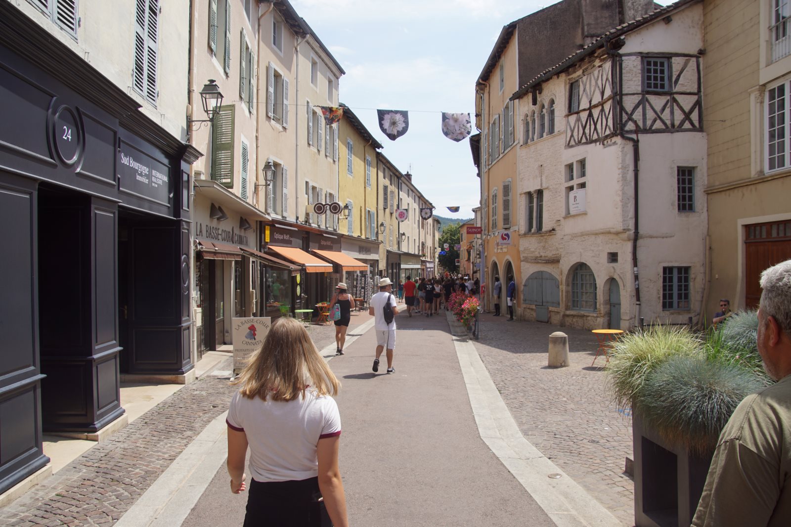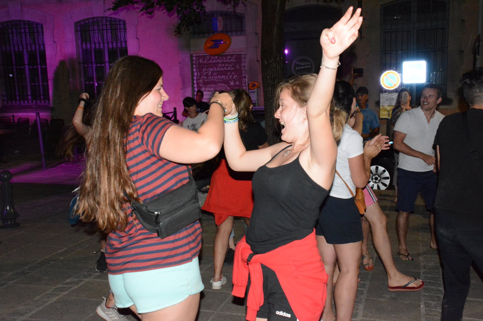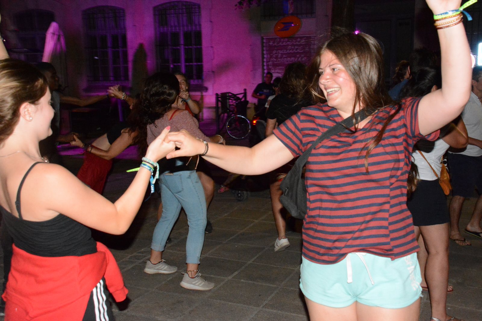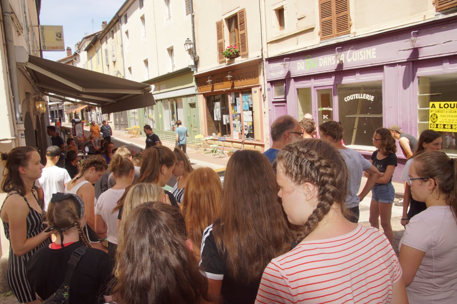 Von oben war nicht zu übersehen, dass im Ort unter der Burg (Villeneuf) eine Band spielte und kräftig getanzt wurde. Nachdem eine angeheiterte Frau dort alle einzeln begrüßt hatte mit „Isch liebe Disch“, ist das Eis schnell gebrochen. Die meisten von uns haben mitgetanzt. Die Titel waren zunächst französisch, dann gab es aber auch bekannte englische Rockmusik zu hören.