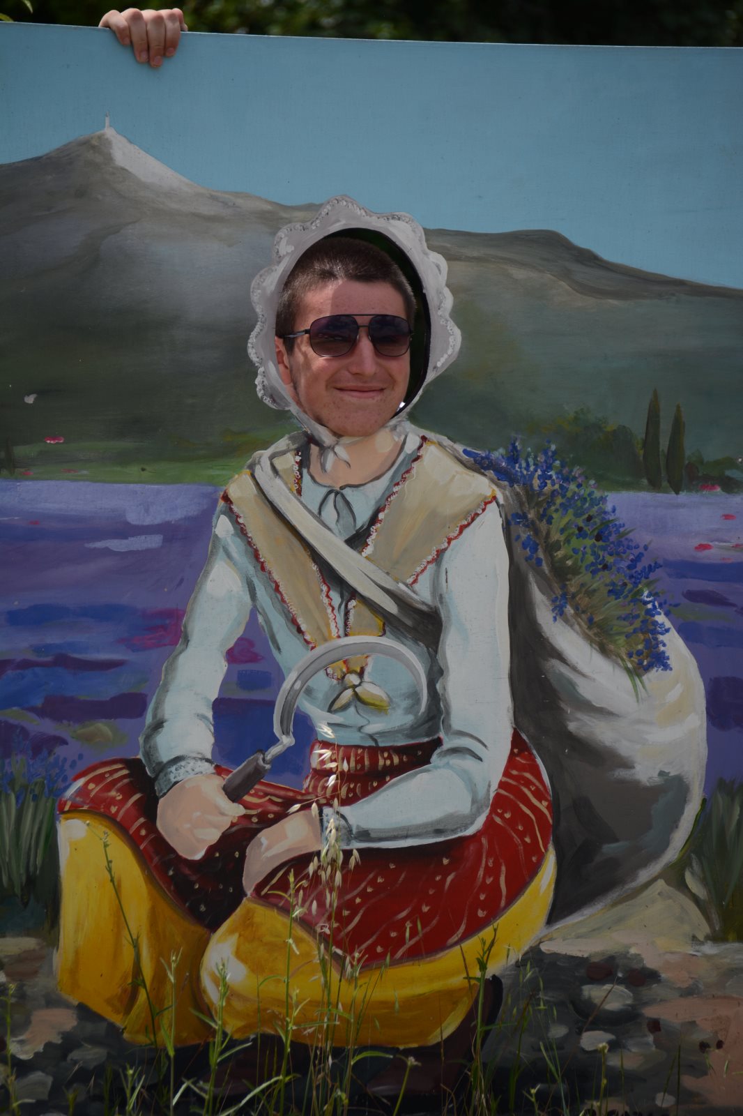 Lavendel macht aus unseren Mädchen offensichtlich Mannequins. Ich weiß nicht, wie viele Bilder mit dem violetten Hintergrund gemacht wurden. Der Geruch war schon draußen sehr stark, ganz zu schweigen von den Läden in und um Sault, in denen Lavendelhonig, -seife, -Eis, Tinkturen, -Kissen und wer weiß was noch angeboten wird. Mich erinnert der Geruch immer an meine Großtante in Frankfurt am Main, die ich bei meiner ersten Westreise besuchen konnte. Diesem Geruch der Seife konnte man nicht entrinnen 😊): Aber der Geruch soll ja den Blutdruck senken und das ist schon mal sehr gut.