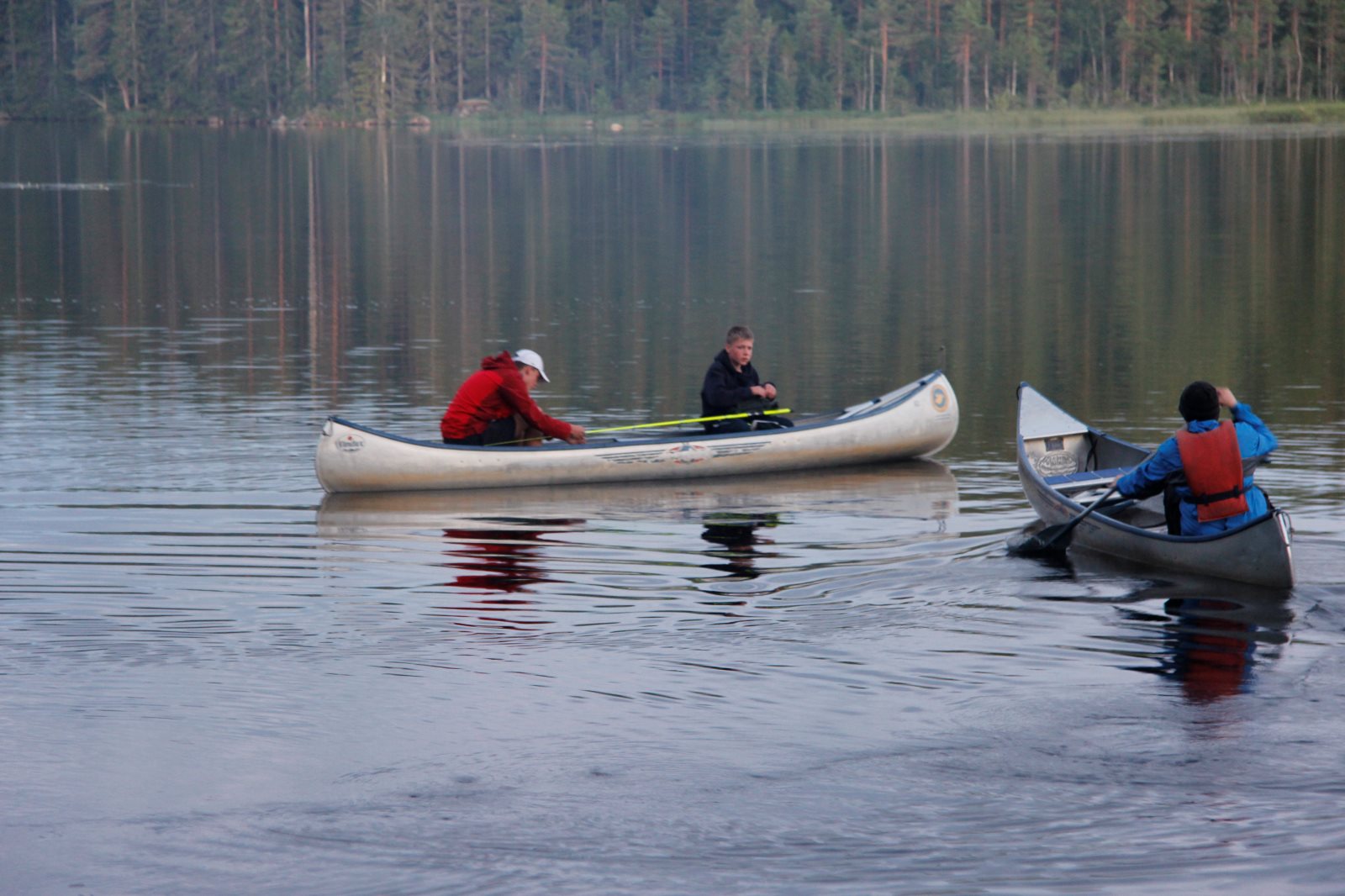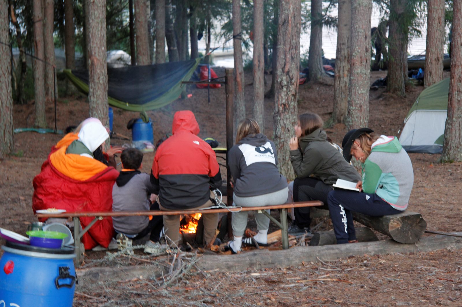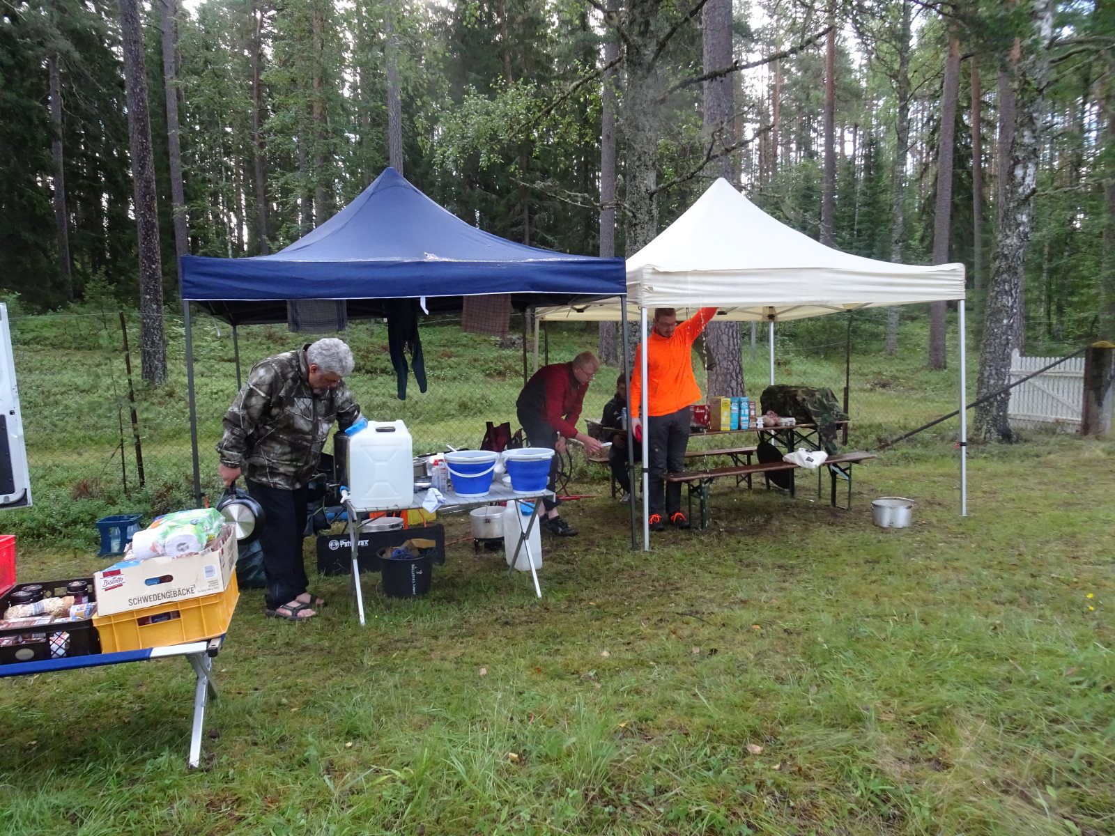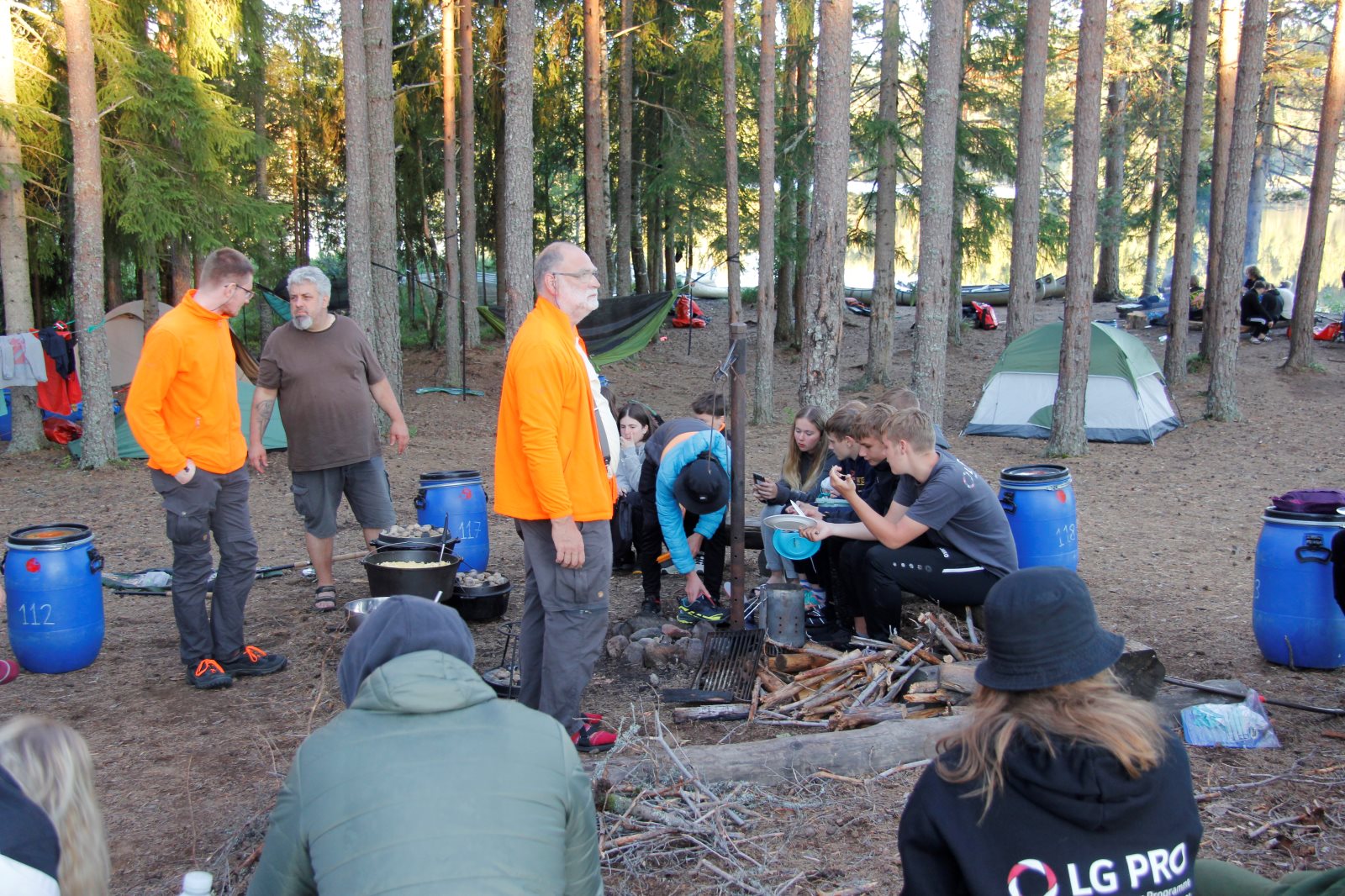 Früh morgens war sie zu sehen, die Sonne. Und sie blieb uns bis Abends erhalten. Aber kein Tag ohne einen neuen Rekord! Der erste war das Problem mit dem Auto am ersten Abend. Dann das Kentern am zweiten Tag und die Feststellung, dass am zweiten Frühstück noch keine Nutella offen war, dafür aber sechs Kilo Tortelini vertilgt wurde (reicht üblicher weise für 50 Personen). Heute kam das zweite Kentern hinzu. Und es ist der zweite Tag auf dem Wasser ohne einen Fischfang. (Obwohl die Angel häufig im Wasser waren.) Das Paddeln verlief gut ansonsten gut. Tim ist allerdings erkrankt, hoffen wir das Beste. Gut, dass wir morgen sowieso erst einmal hier bleiben wollten. Auf unserem Biwak ist auch eine Gruppe aus Berlin.