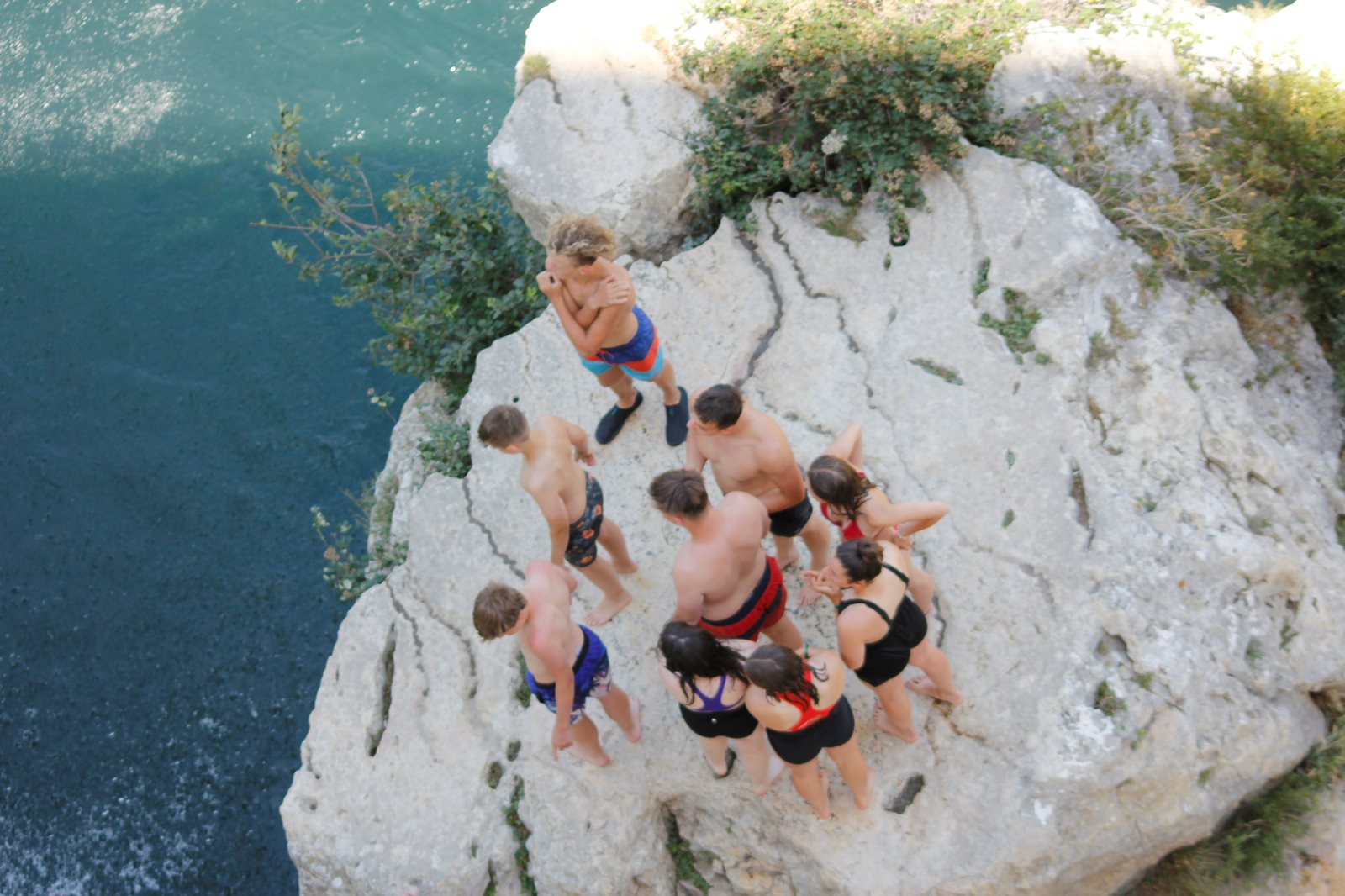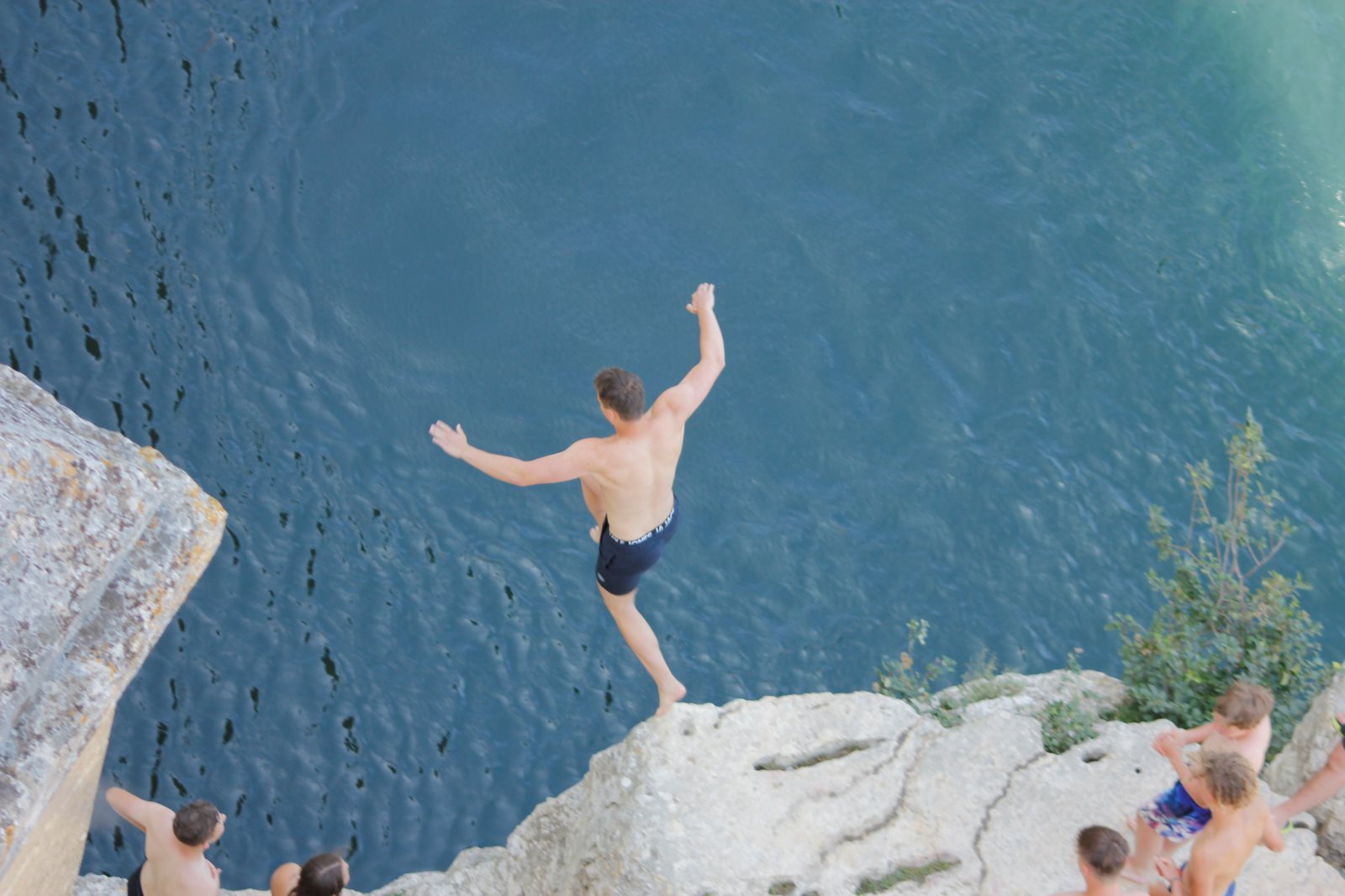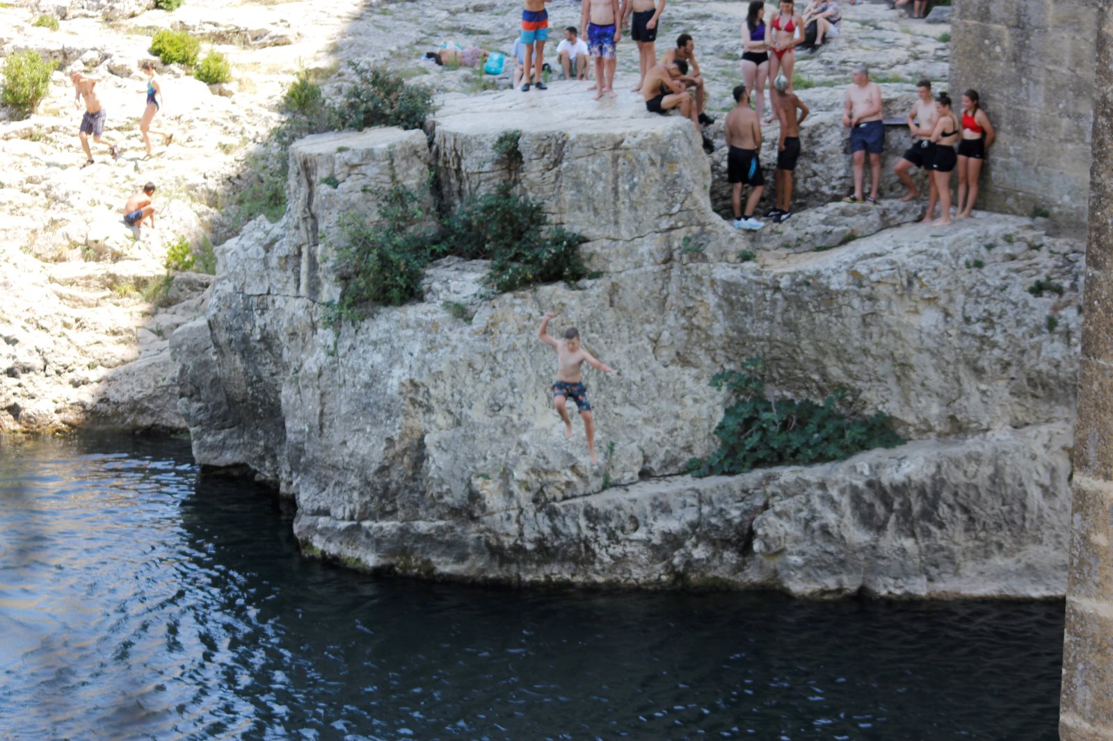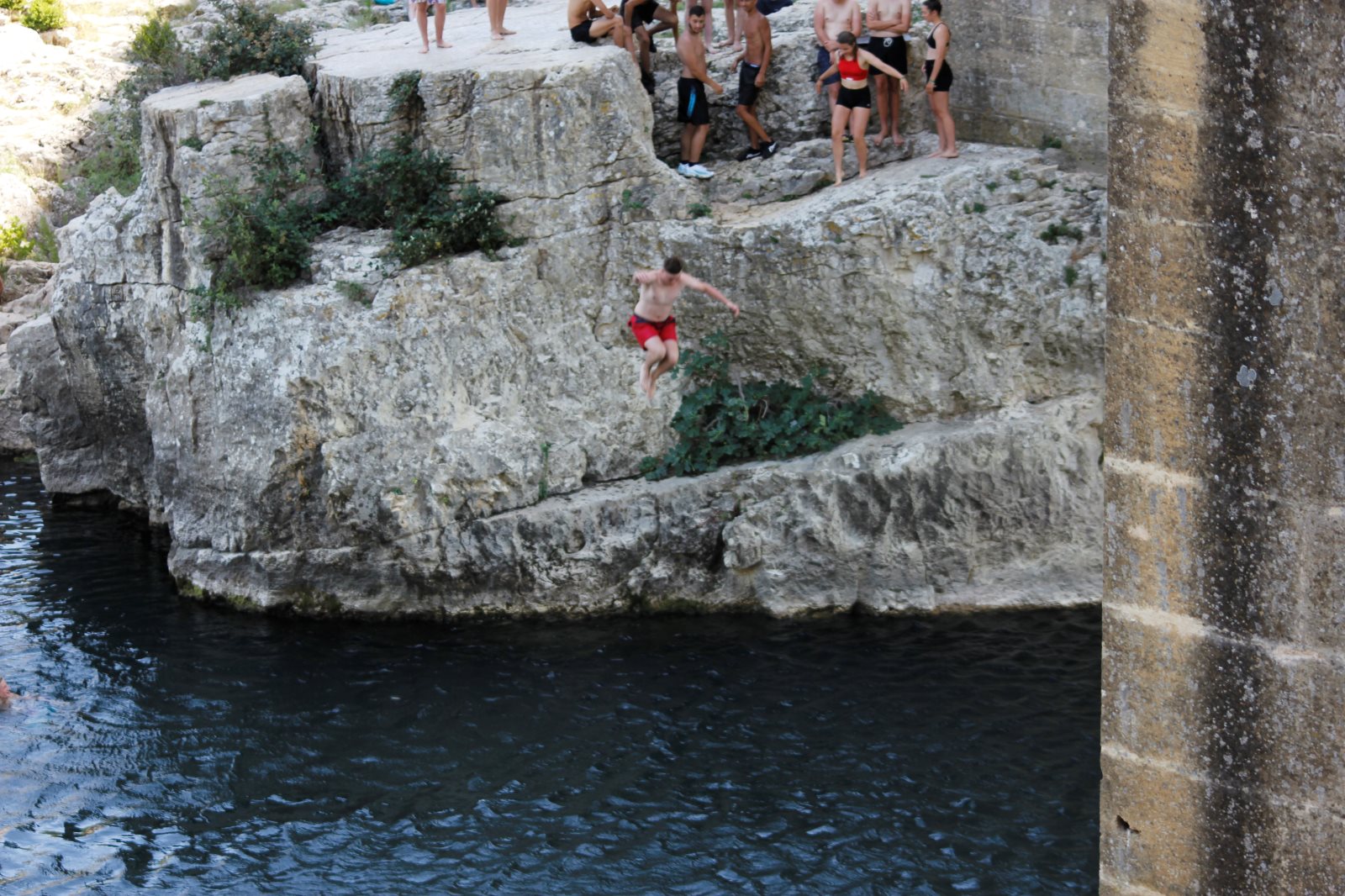 Das Aquädukt zeigte sich im strahlenden Sonnenschein. Nach einer kurzen Einleitung von Frank ging es auf Entdeckungstour. Ein paar erklommen das Aquädukt, ein paar suchten Schatten und genossen den Blick und anderer erkundeten des Gardon und sein kaltes Wasser.
