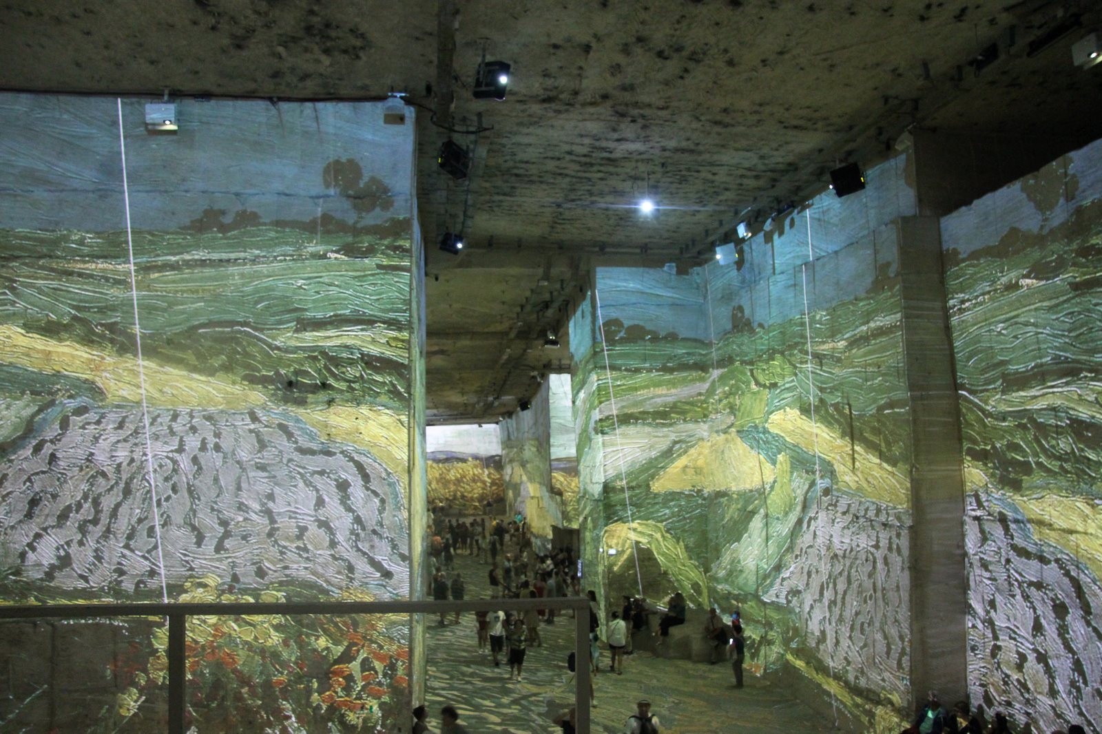 Als wir dort ankamen, bekamen wir einen prächtigen Parkplatz zugewiesen. Um 11.00 Uhr begann die Vorstellung der holländischen Meister. Zwei weitere Vorführungen gab es im Anschluss von Piet Mondrin. Die dritte Vorstellung ging an mir leider vorbei, weil ich etwas zu organisieren hatte. Es war sehr beeindruckend ein bewegtes Rubensbild zu sehen oder durch den Nachthimmel von Van Goch zu laufen. Vorteil war auch die Temperatur in den Grotten.