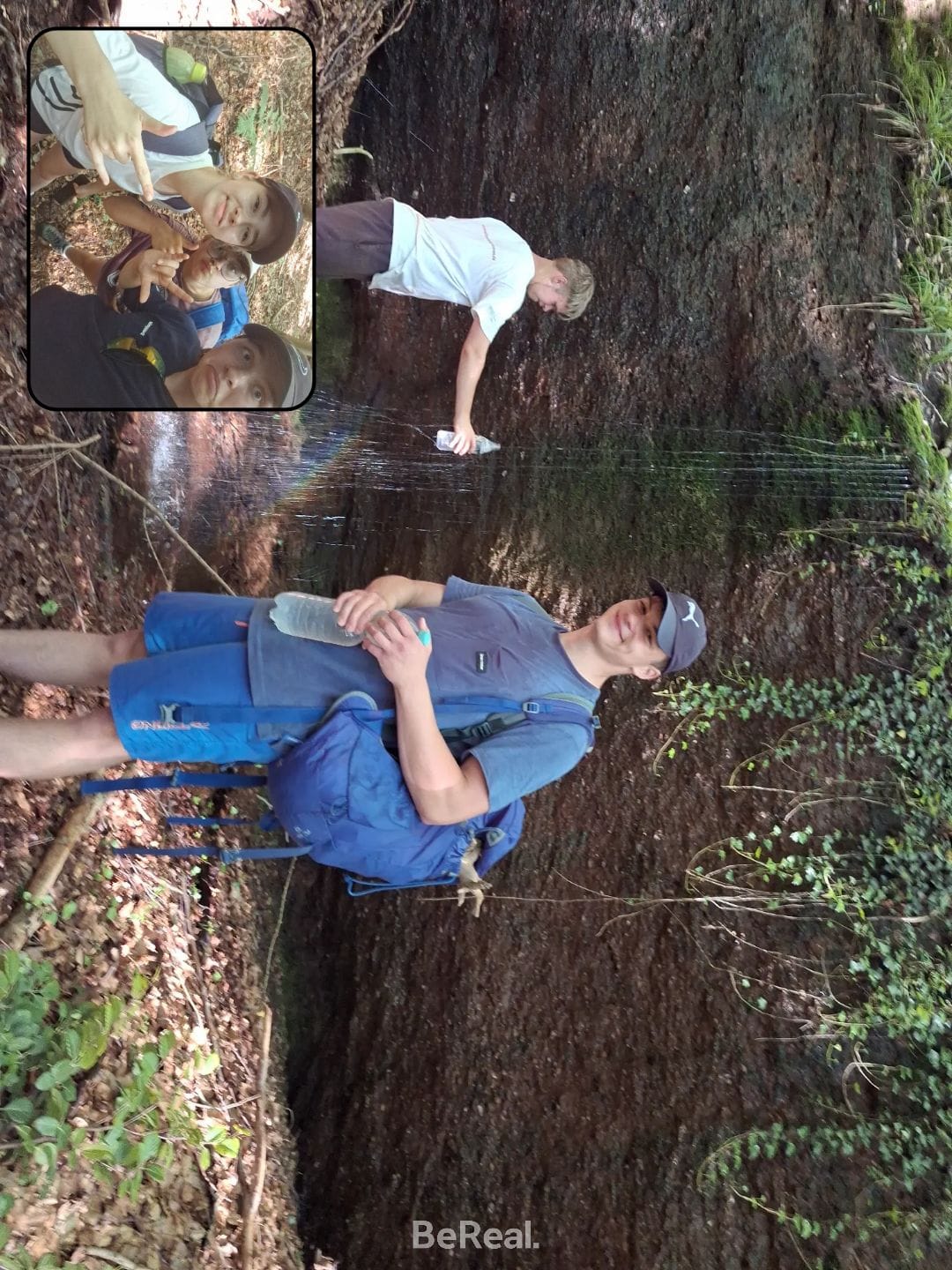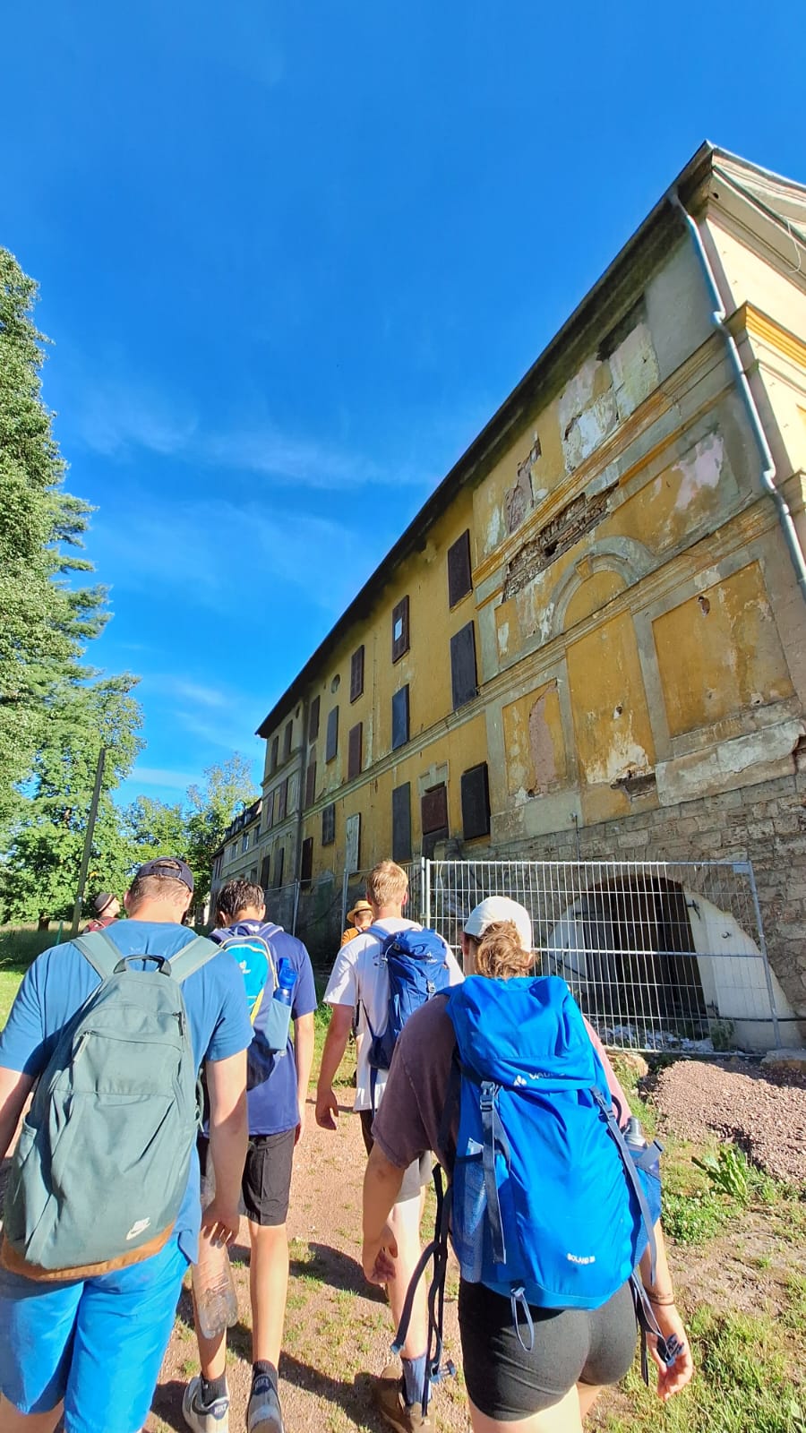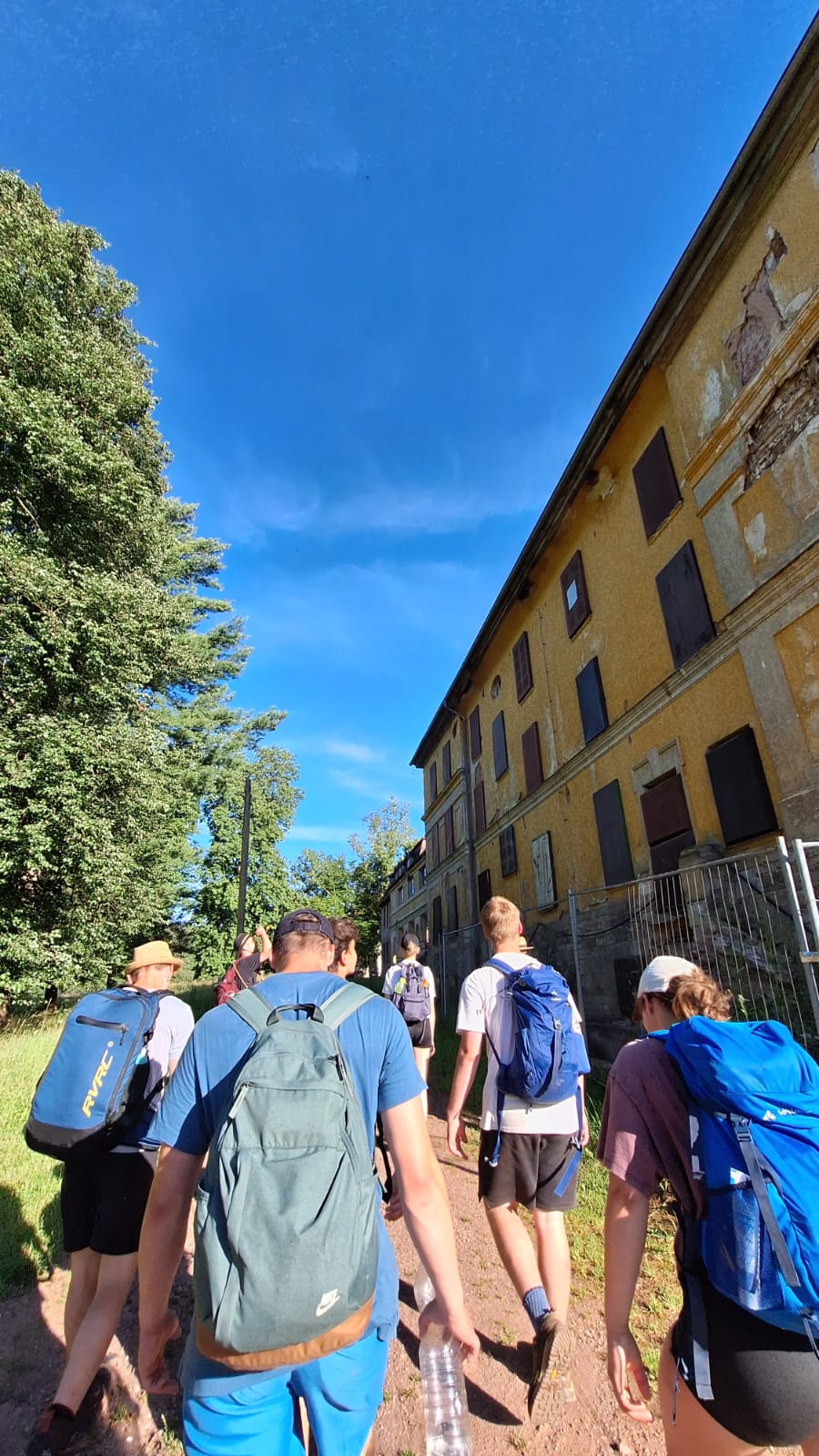 Heute war der Aufbruch von dem Tor zum Rennsteig hinauf zur Hohen Sonne. Der Weg dorthin ist wohl bekannt. Auf dem Weg wurde dann beschlossen nicht nur bis zur Hohen Sonne, sondern bis zum Campinglatz zu laufen, der am Altenberger See liegt. Das wäre noch ein Leichtes gewesen. Doch Komoot, das Kartenprogramm, hatte wohl in eine etwas ältere Datei gegriffen. Vieles Schöne wurde dadurch gesehen, wie die Grotte, an der man die leeren Trinkflaschen füllen konnte, aber eben nicht auf dem direkten Weg zum Ziel. Zur Begrüßung am Zeltplatz gab es erst einmal eine Caprese. Schnell wurde noch Nudeln in das vorbereitete heiße Wasser versenkt. Eine Hackfleischsoße produziert, die dann während des Essens mit Gewürzketchup aufgewertet wurde. Danach wurden die Zelte aufgebaut, was durch die lange Wanderung etwas langsam ging. Doch ein Volleyball kann die Lebensgeister wieder wecken. Als es nun aber zu Dunkel wurde, um weiter zu spielen, gab es noch den ein anderen Ringkampf in der Arena.