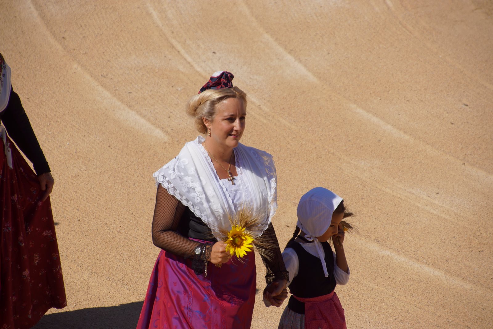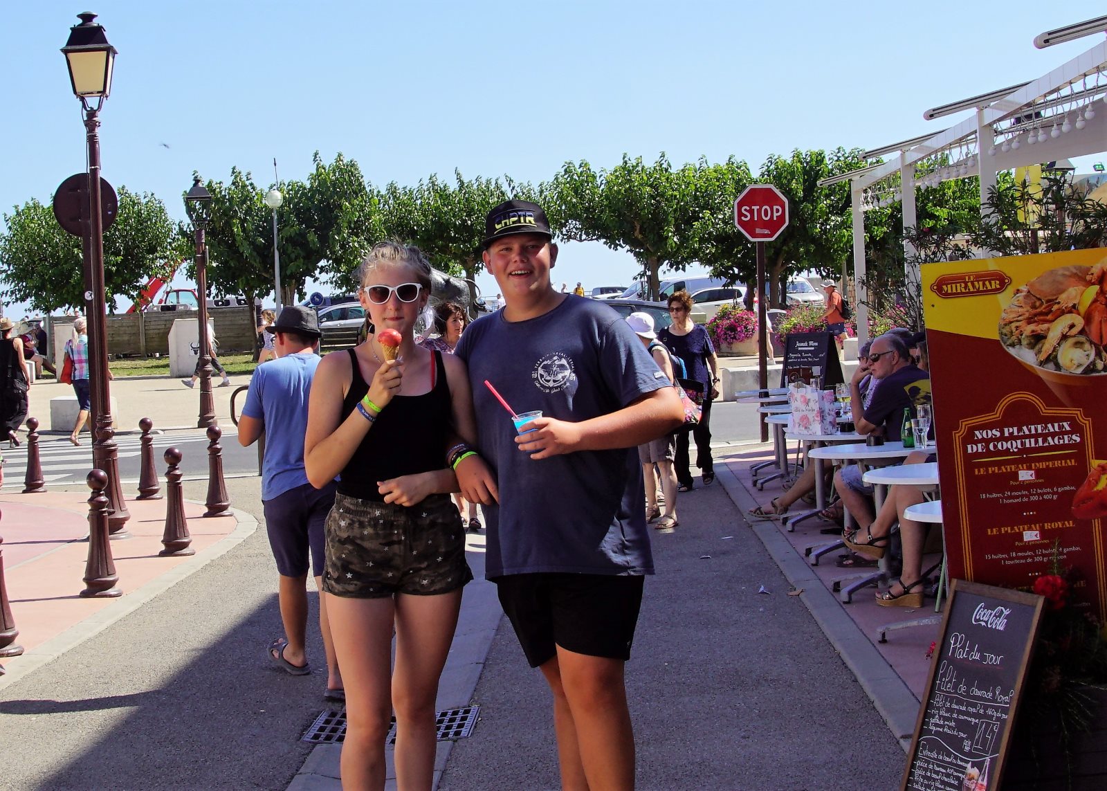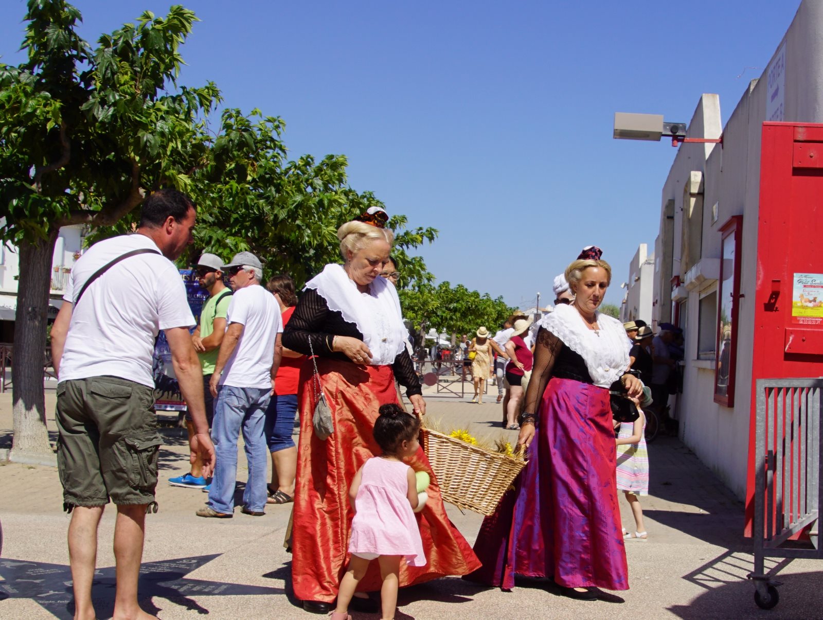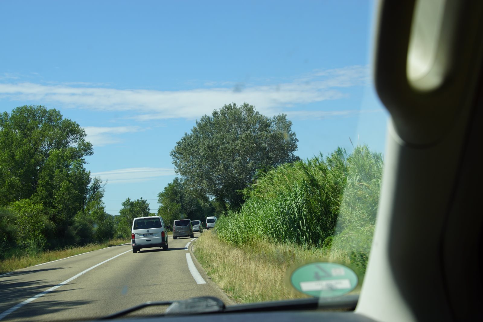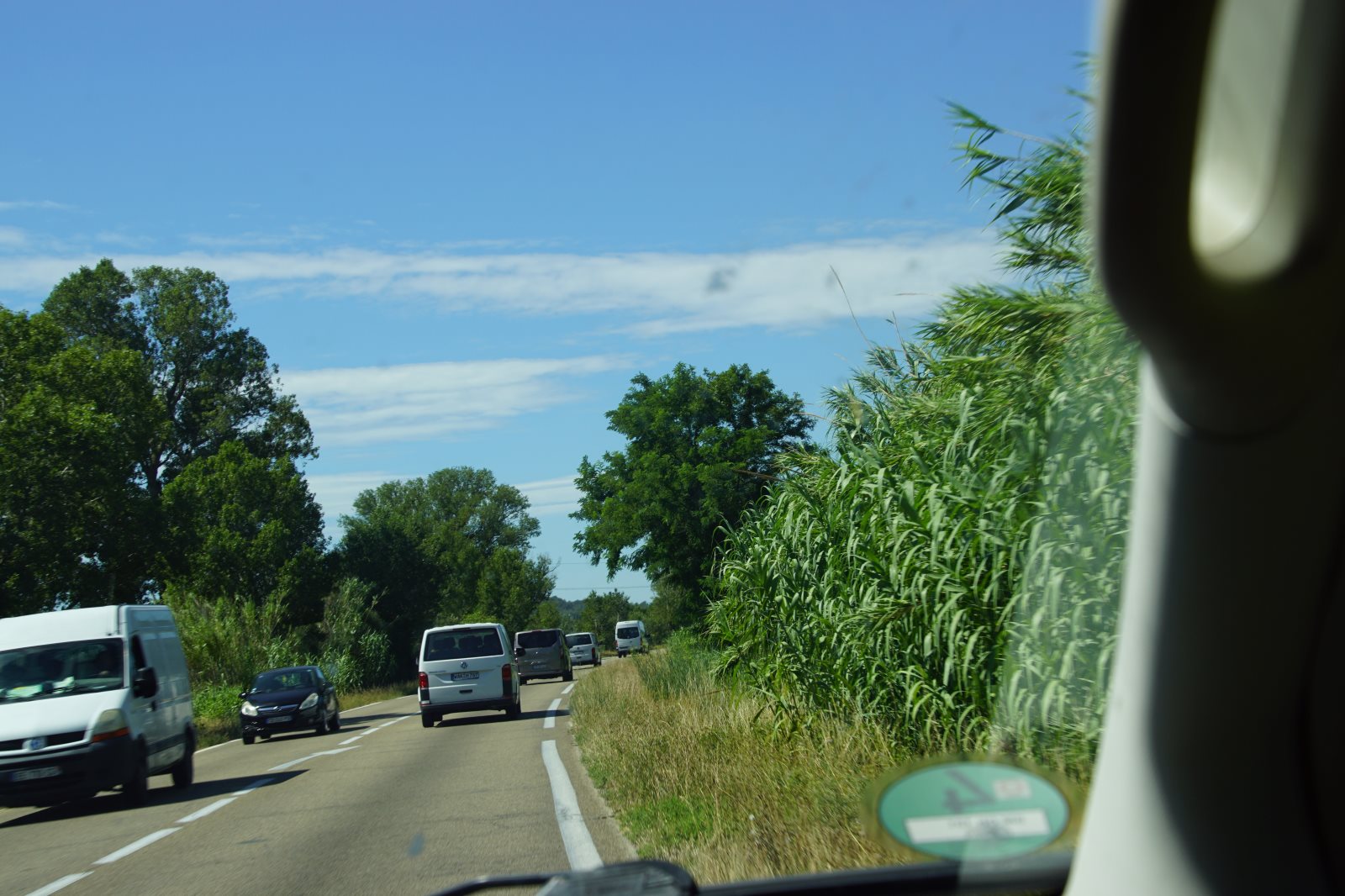 Nach diesem zweistündigen Spektakel wollten wir dann zur Käsesauce nach Hause aufbrechen. Clever wie wir nun mal sind, haben wir die Autos vom Parkplatz am Strand hergeholt und wollten an der Arena vorfahren. Gerade zu dieser Zeit wurde die Straße aber wegen eines Umzuges der weißen Pferde der Camargue gesperrt und wir kamen nicht in die Innenstadt. Frank hat sich freundlich an einen Polizisten gewandt, um ihm klarzumachen, dass wir unsere Kids abholen müssten. Der Versuch einer Frage wurde aber mit Klopfen auf den Kühler beantwortet und er zückte den Block… Da haben wir es lieber gelassen und einer ist durch die Stadt gelaufen und hat die Kids dorthin geholt. Zum Glück dauerte der Umzug gerade so lange, wie sie für den Weg brauchen. Dann wurden wir mit kräftigem Winken des Polizisten aufgefordert endlich weiterzufahren. Es sind eben Respektspersonen (s.o.). Aber das kann auch nicht alle Probleme lösen, wie man daraus ersieht.