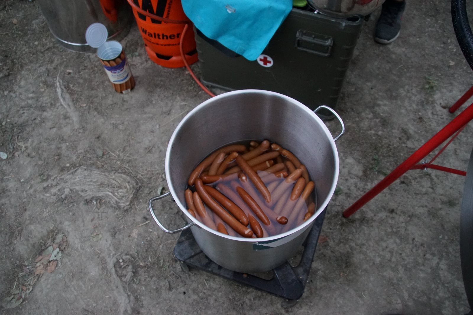 Zum Glück hat Frank so variabel eingekauft, dass wir nur Würstchen warm machen mussten. Die französische Käsesauce kann warten, auch wenn mir das Wasser im Mund zusammenläuft, wenn ich nur daran denke… -😊