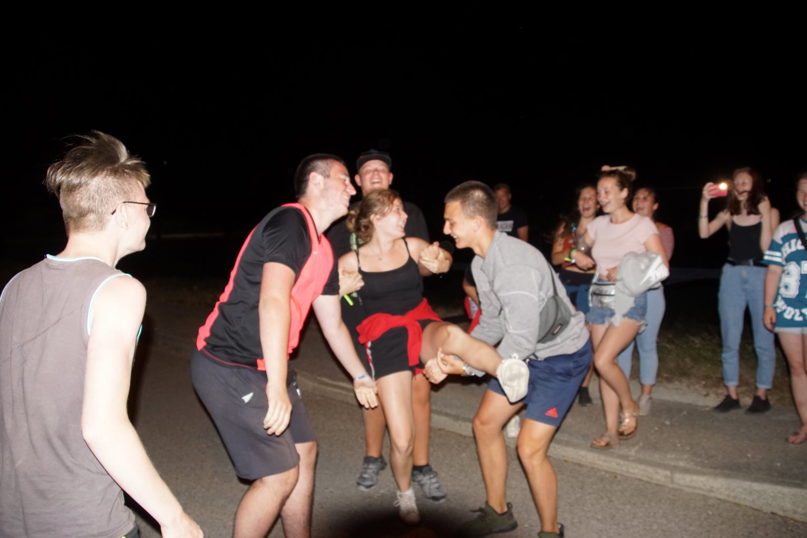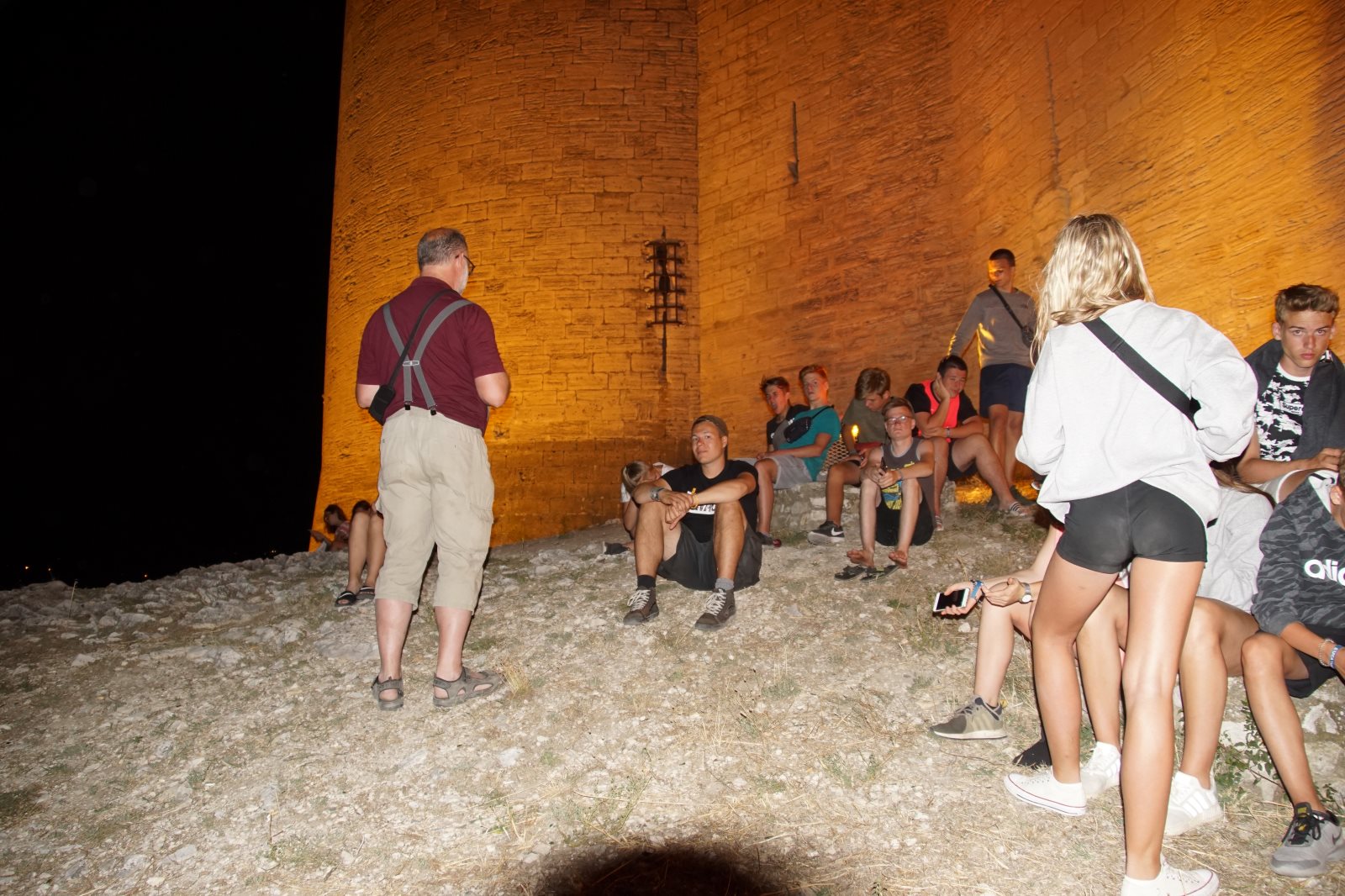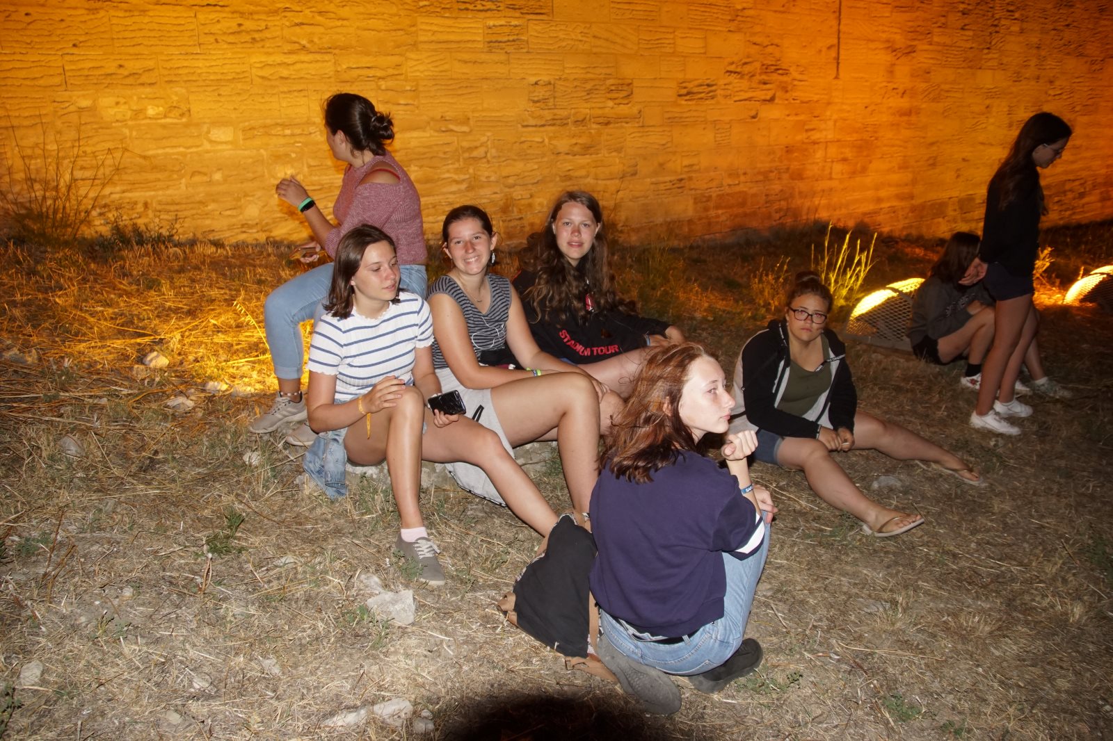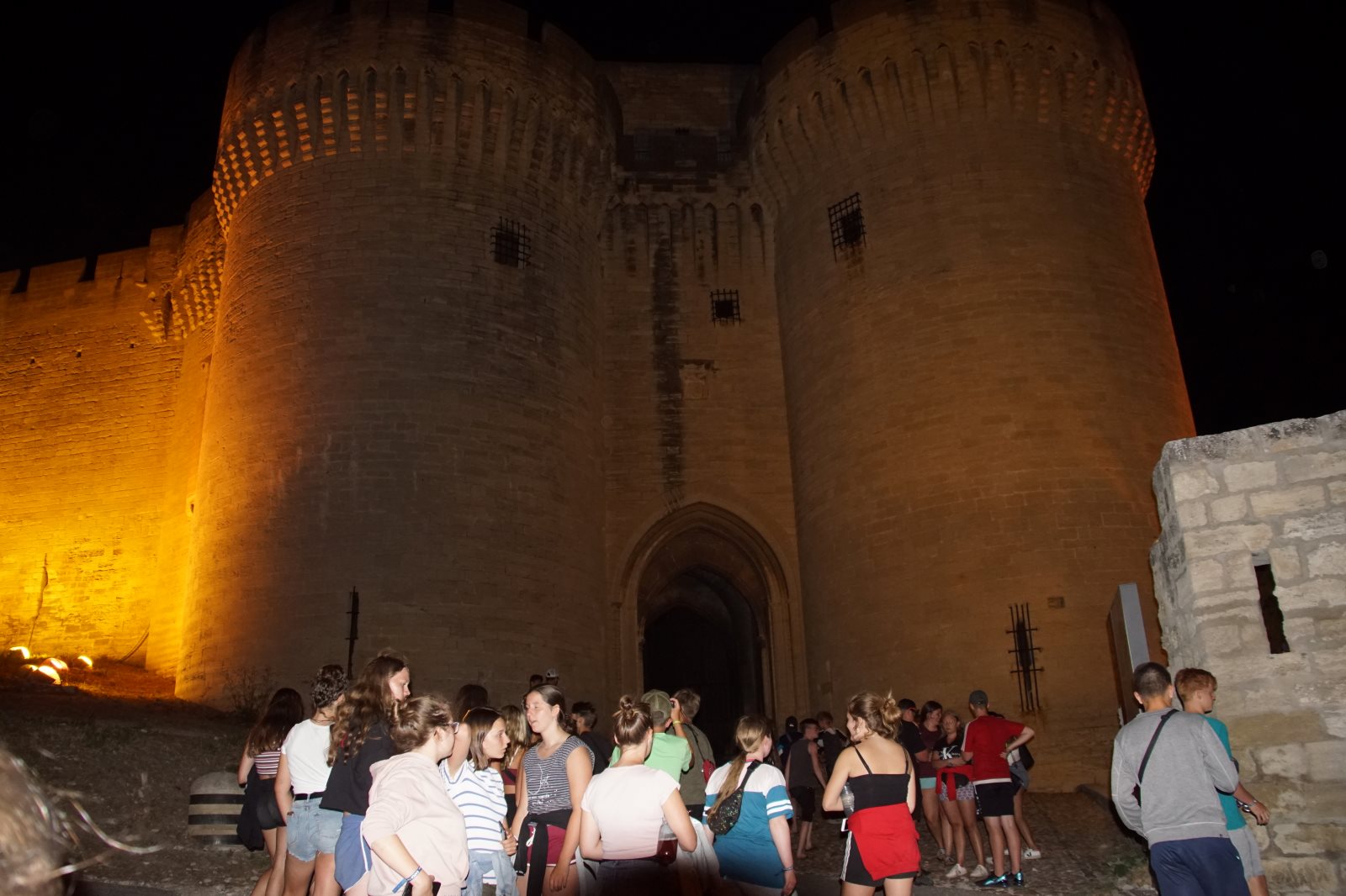 Mit Joni und Anton sind sie im Dunkeln auf die Burg gestiegen. Zur guten Laune trug schon einmal bei, das ein Mädchen vor einen Mast gelaufen war. Oben auf der Burg hatte man einen sehr schönen Blick auf Avignon. Nur das Feuerwerk fehlte. Wie wir jetzt wissen, musste es wegen Trockenheit und starkem Wind abgesagt werden.