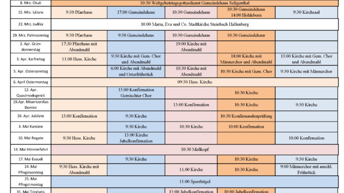 Gottesdienstplan Dezember bis Februar