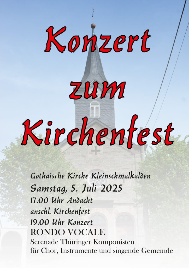 Der Kirchenvorstand Kleinschmalkalden freut sich, Sie, die Gemeindeglieder aus dem Gesamtverband, an diesem Tag bewirten zu können und das Konzert gemeinsam zu erleben.